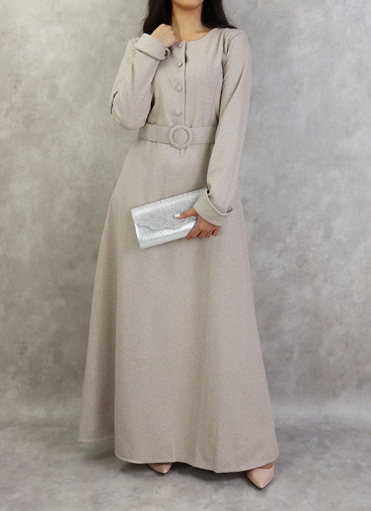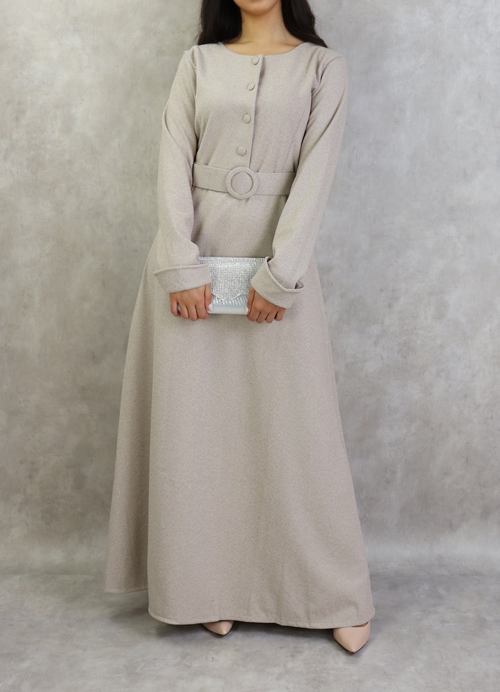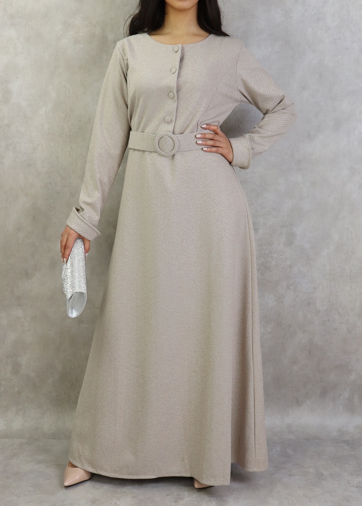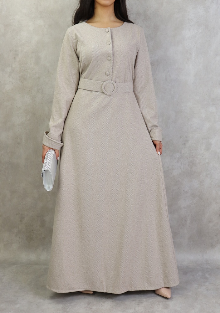 Robe longue boutonnée avec ceinture pour femme (Vêtement style habillé pour hijab) - Couleur kaki - REF. 36621 (32.00 €)