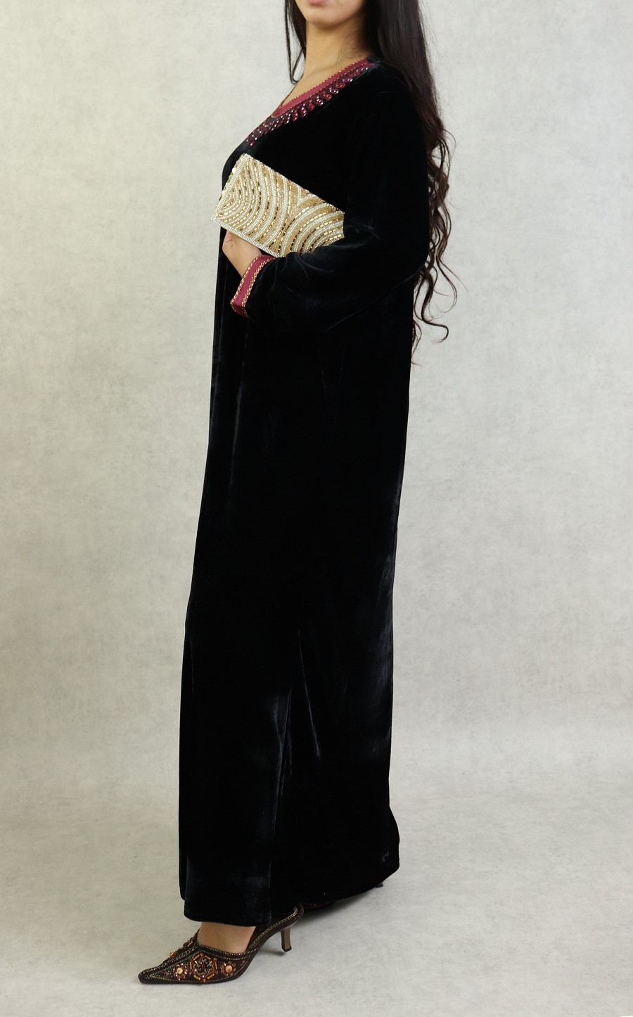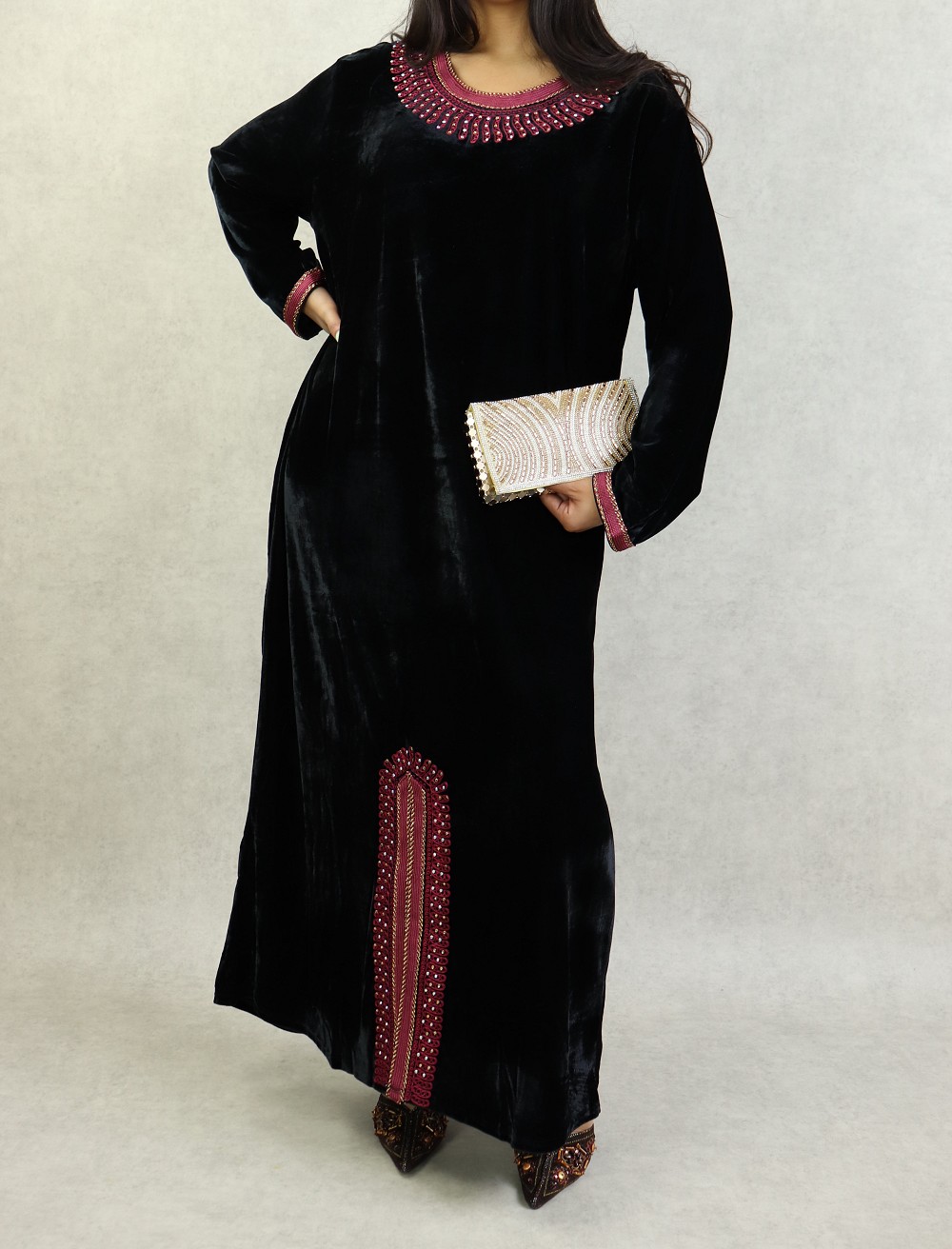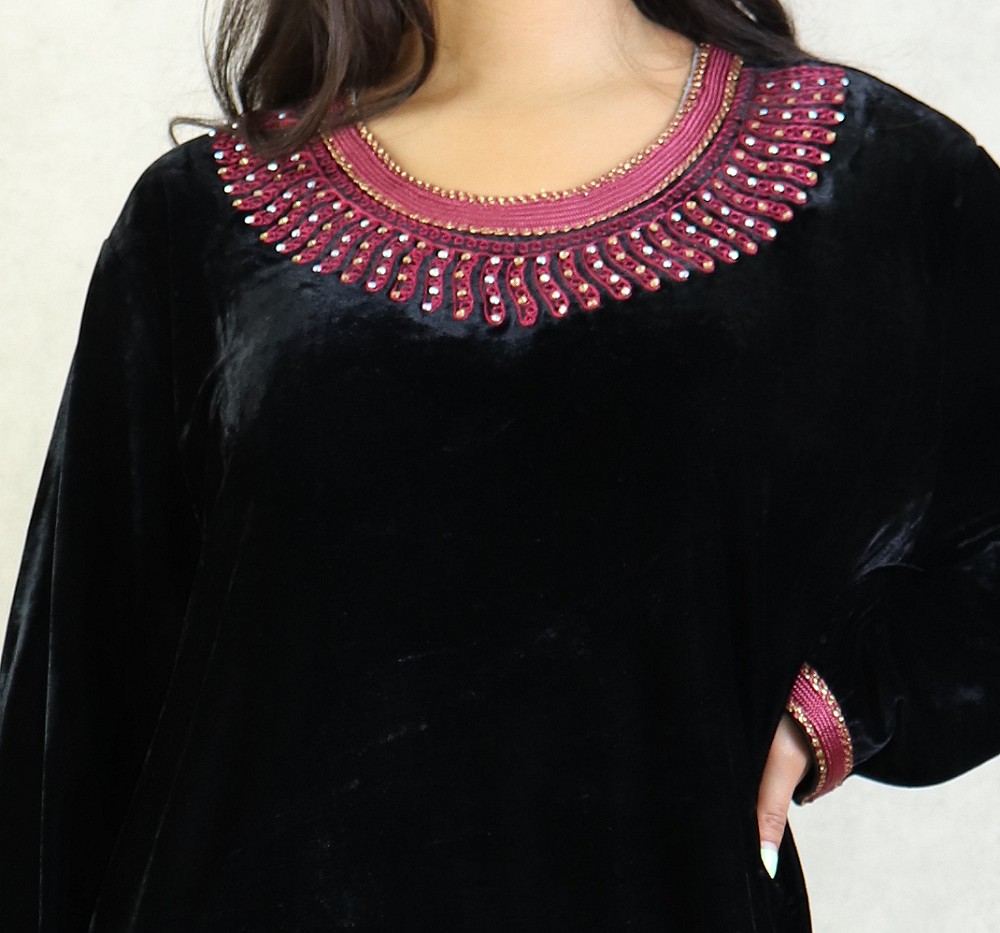 Robe arabe traditionnelle en velours brodee pour femme (Saison Automne-Hiver) - Couleur Noir