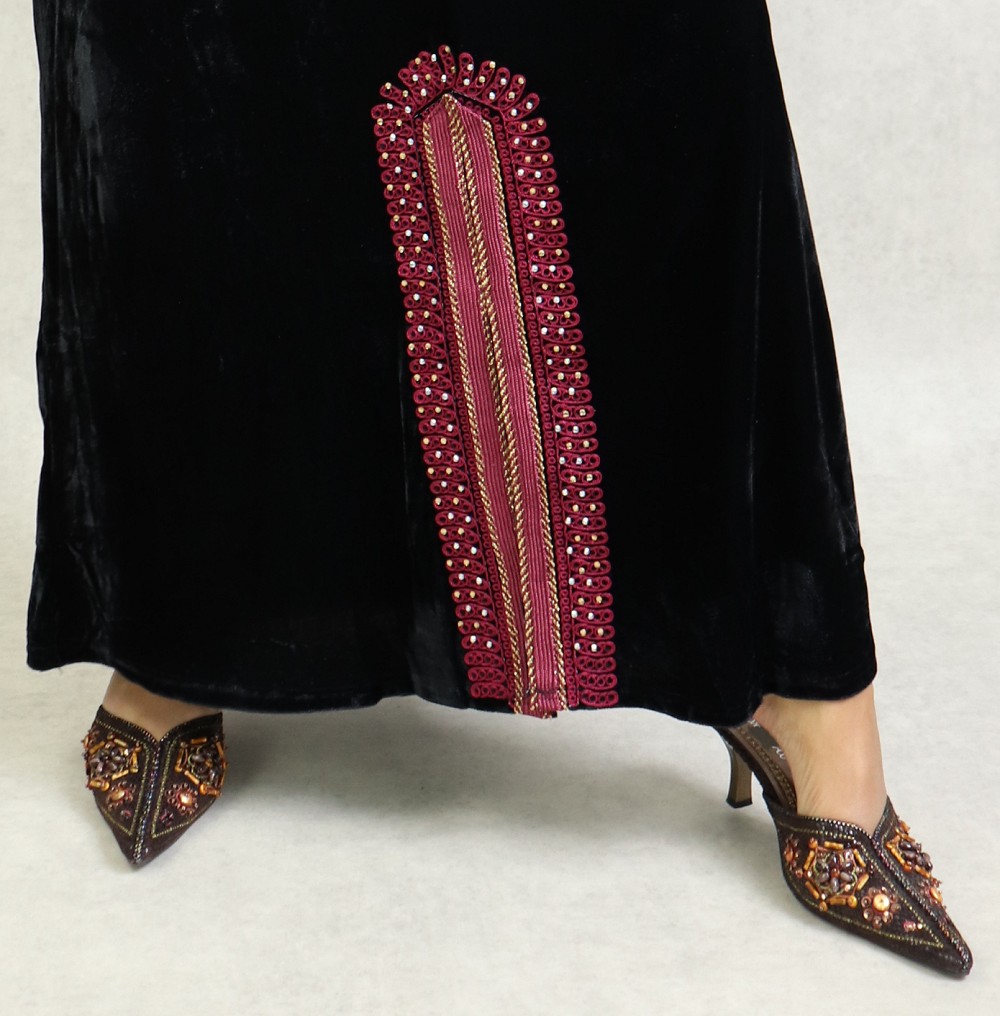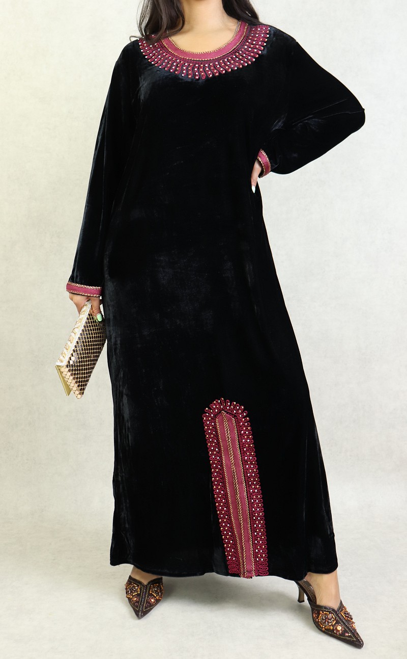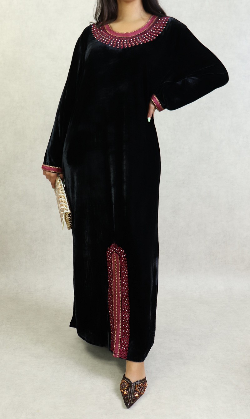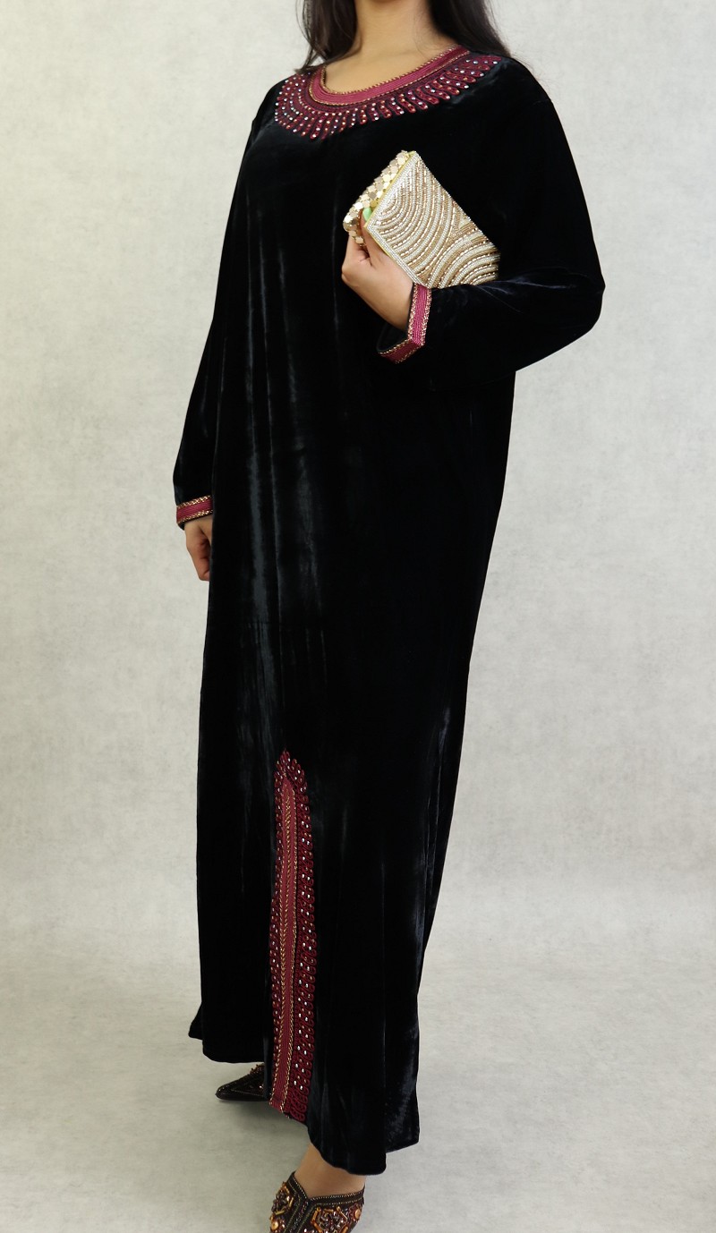 Robe arabe traditionnelle en velours brodee pour femme (Saison Automne-Hiver) - Couleur Noir