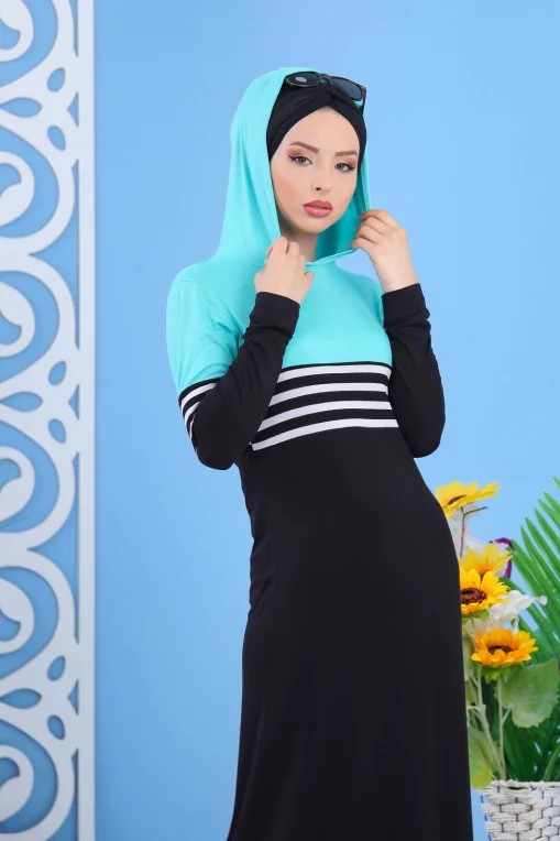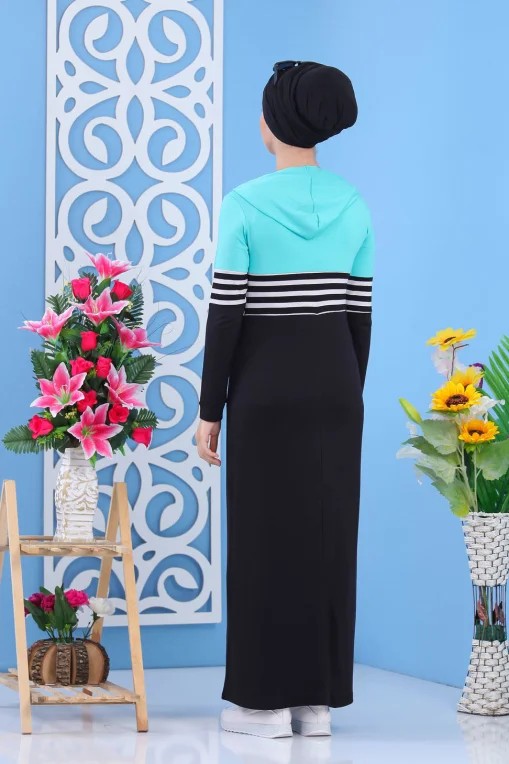 Robe bicolore à capuche - Tenue décontractée pour femme - Couleur Noir et Vert menthe Vetement & Accessoire