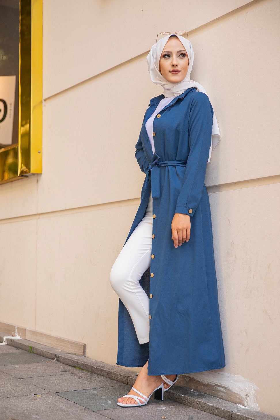 Veste longue pour femme - style chemise (Mode Musulmane) - Couleur bleu indigo - REF. 32898 (29.90 €)