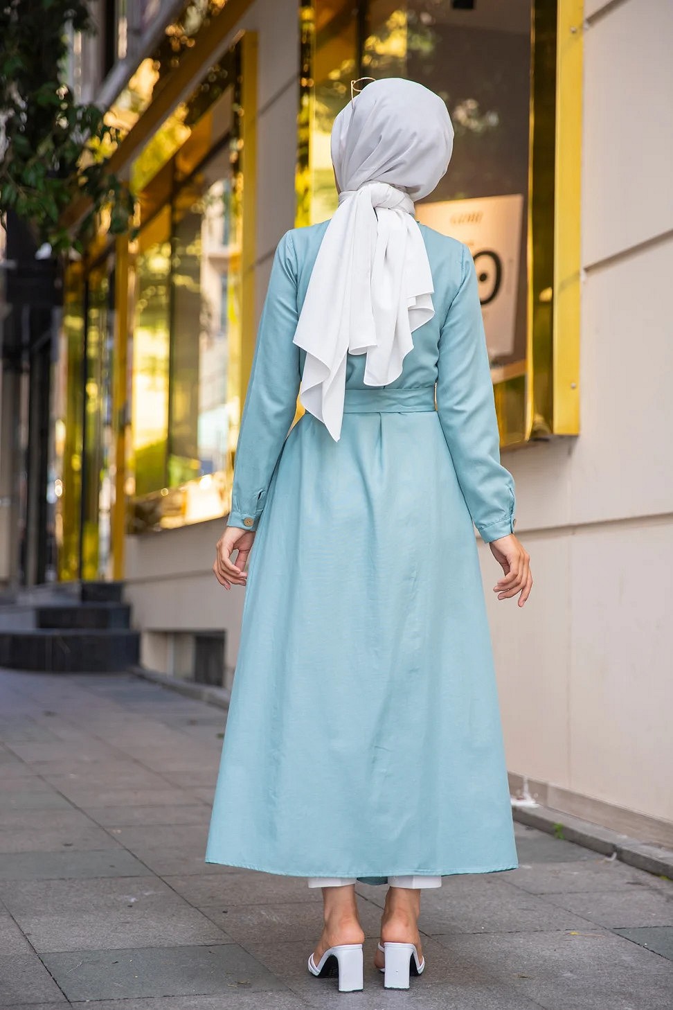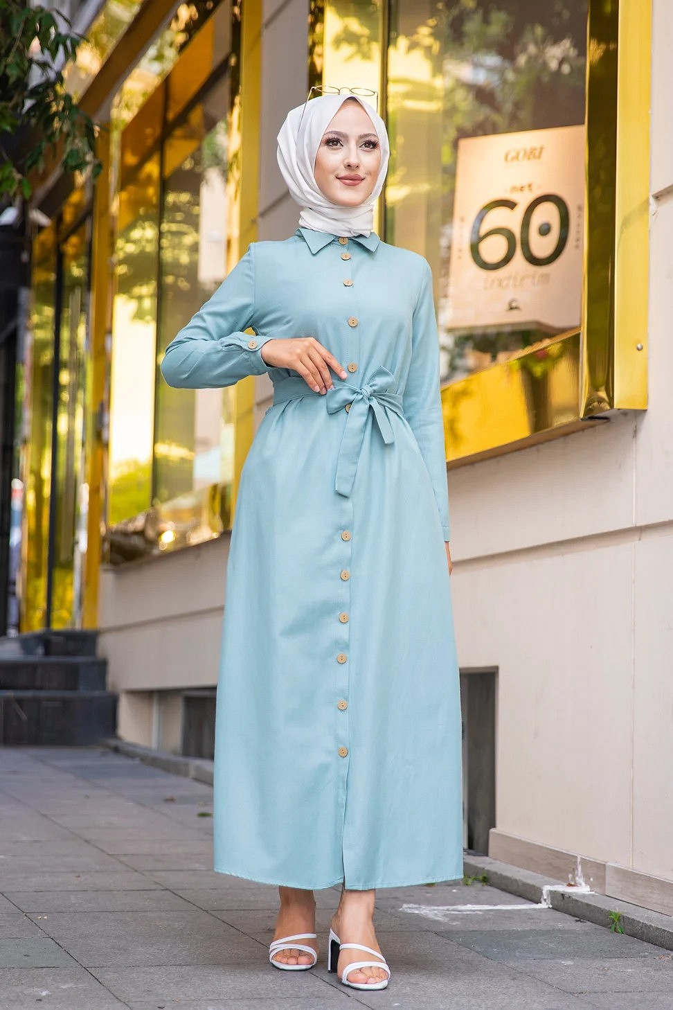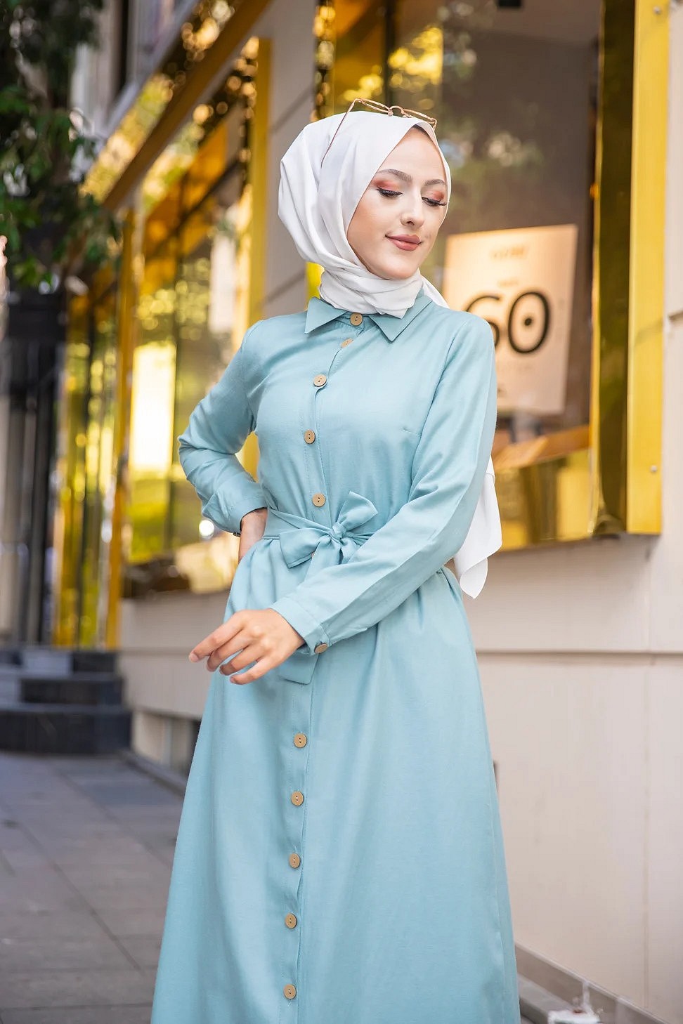 Robe boutonnée avec ceinture pour femme (Vêtement de ville chic pour hijab - Modest Fashion) - Couleur menthe Vetement & Accessoire