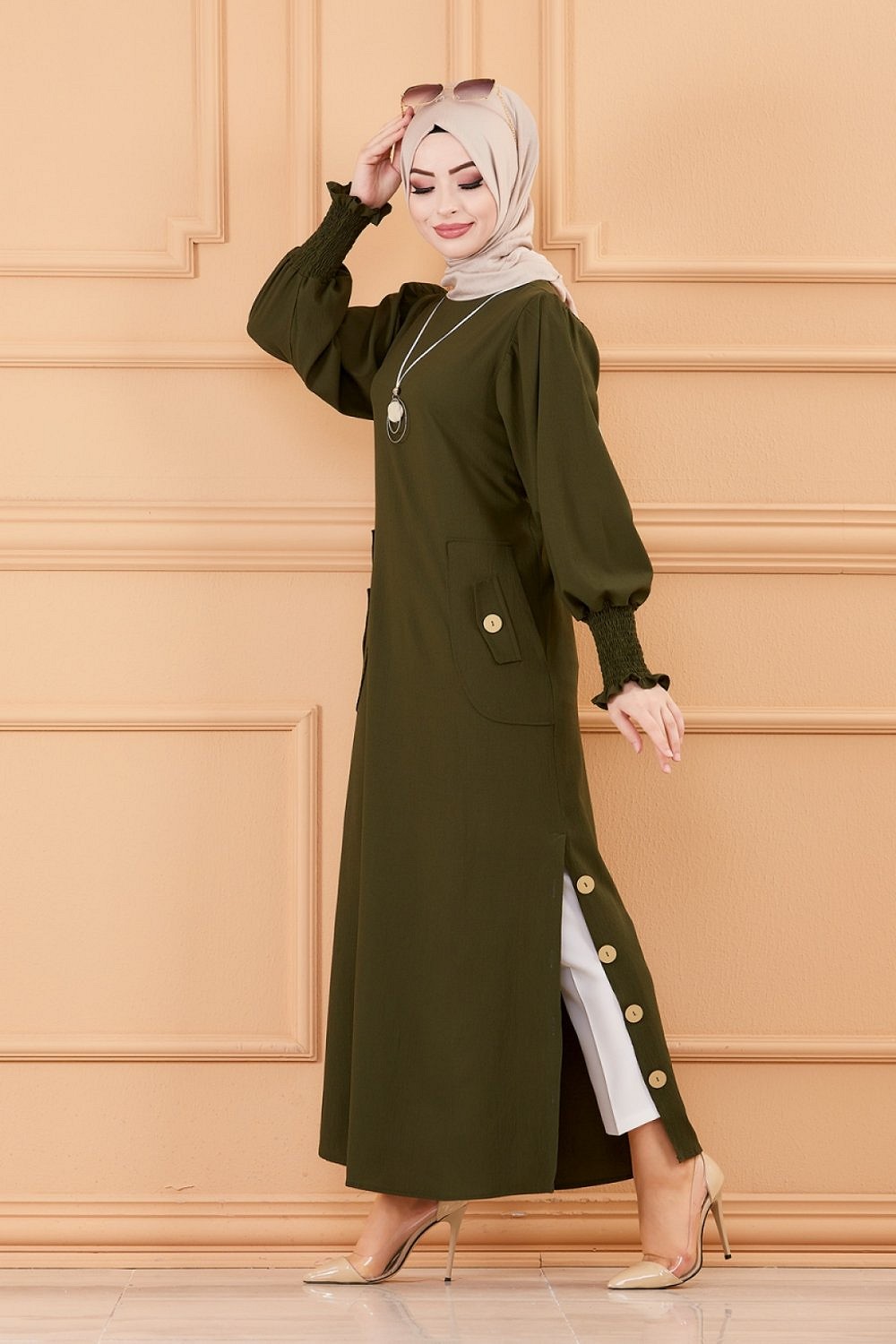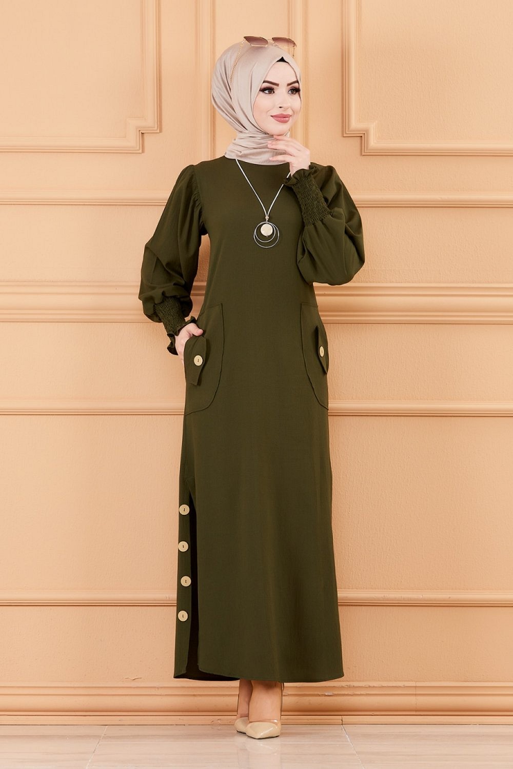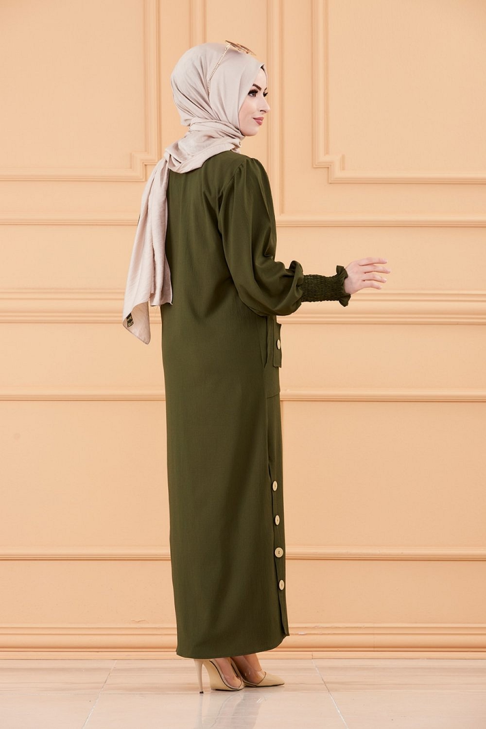 Robe boutonnee chic pour femme (Vetement style habille pour hijab - Boutique musulmane) - Couleur kaki