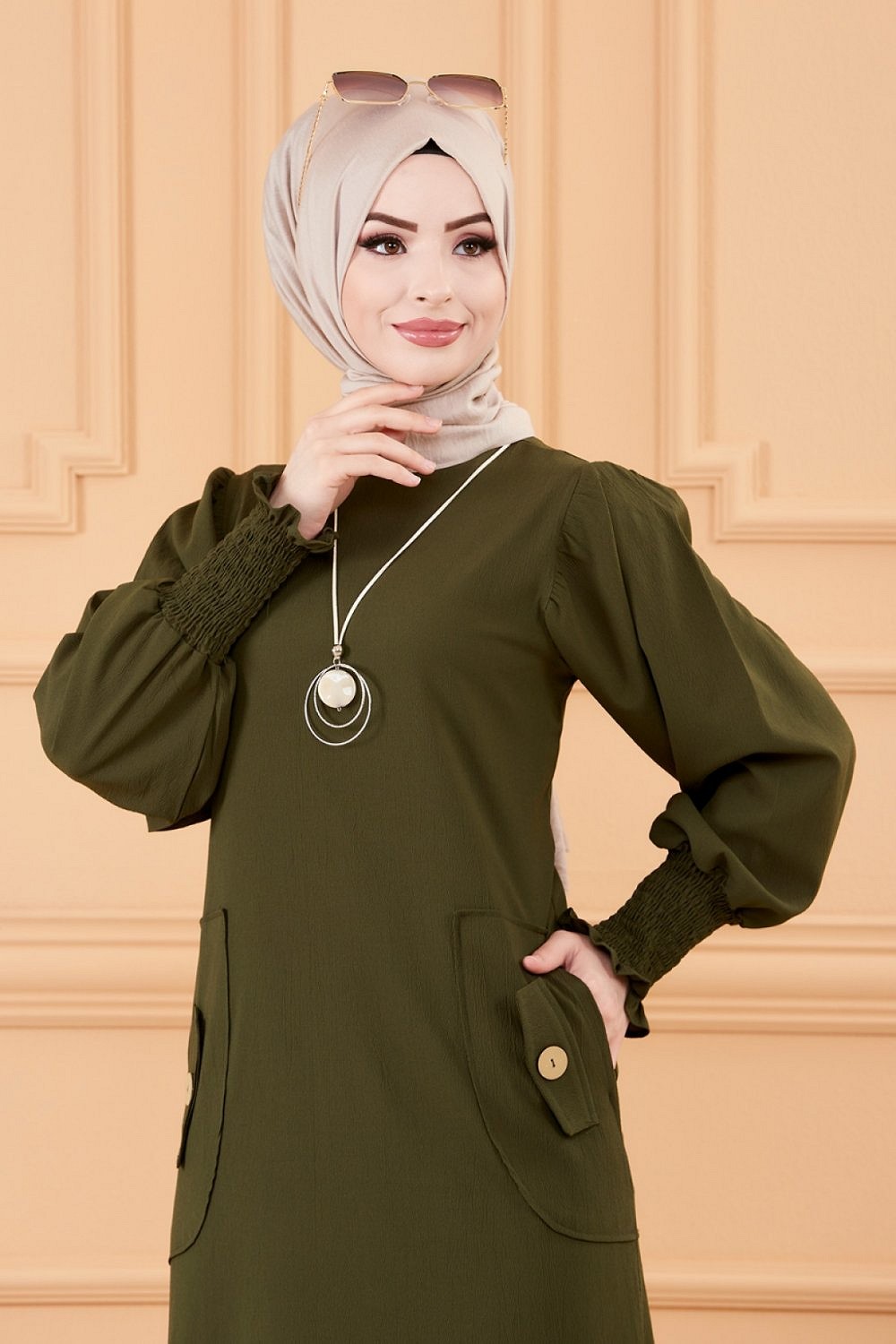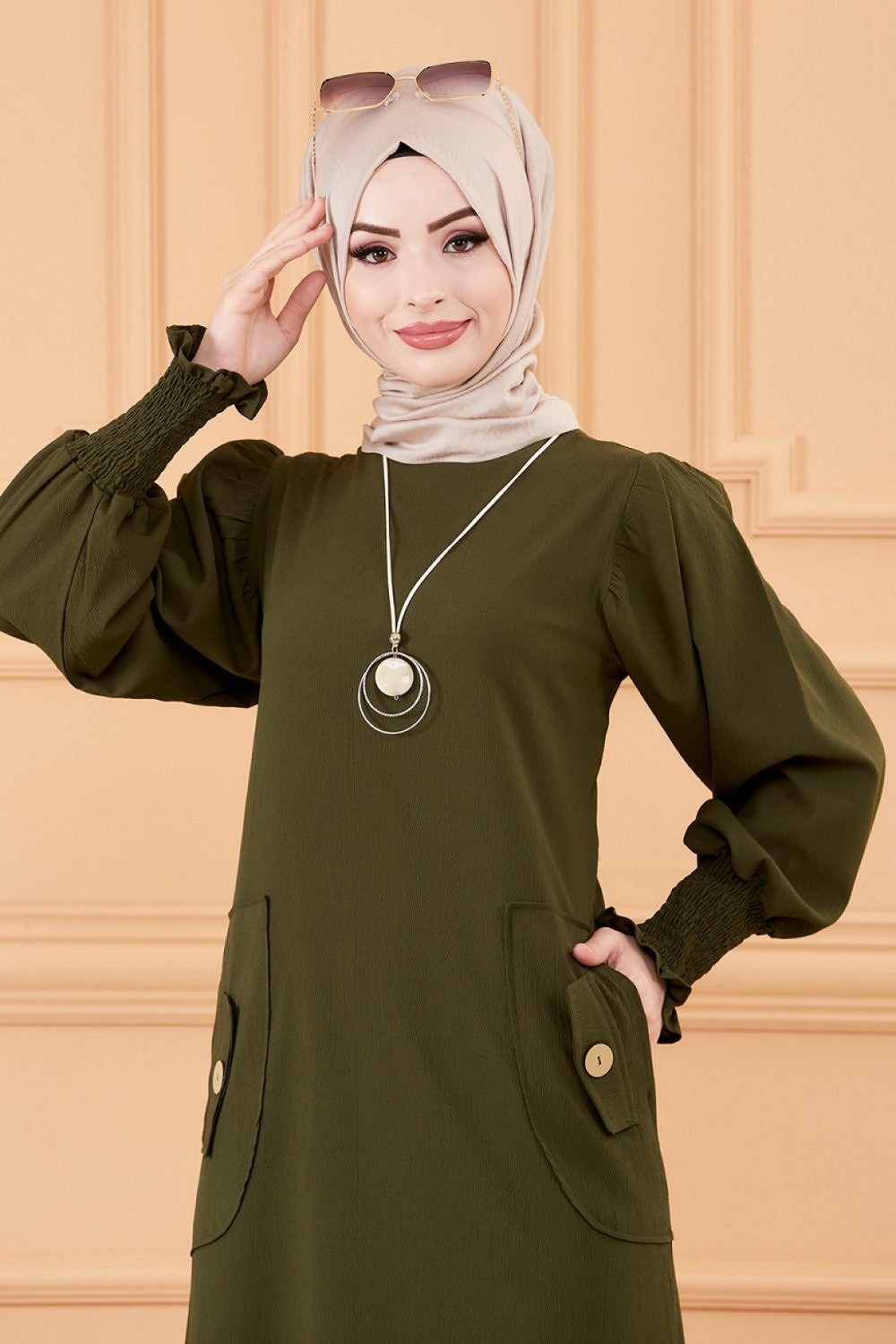 Robe longue style moderne et décontracté (Boutique de vêtement pour femme voilée) - Couleur kaki