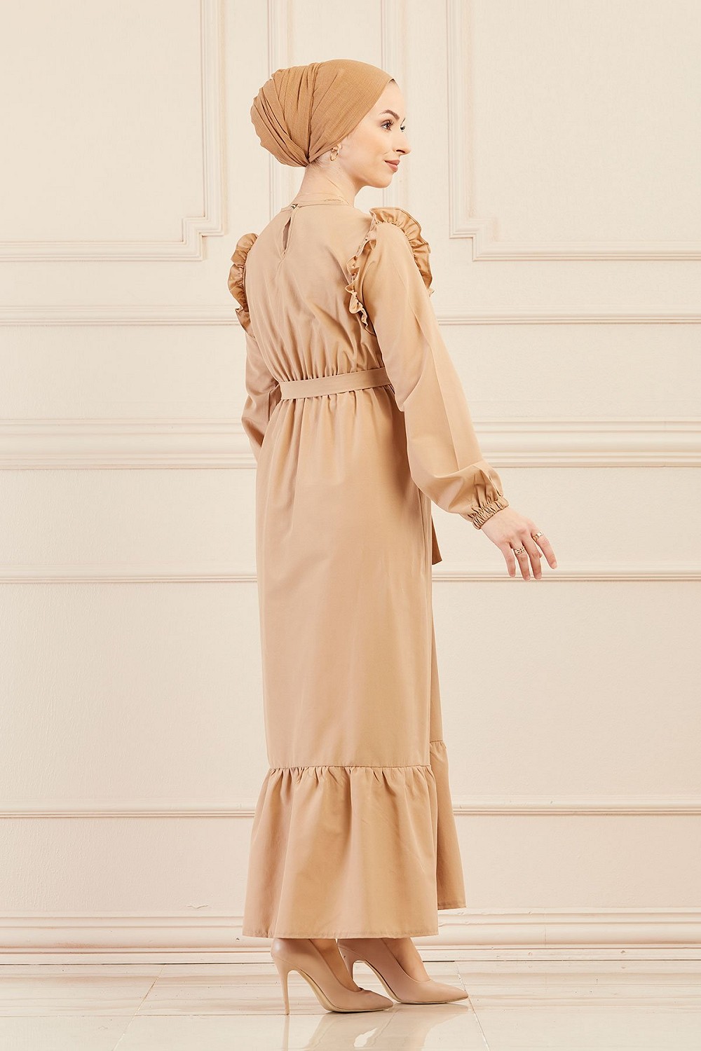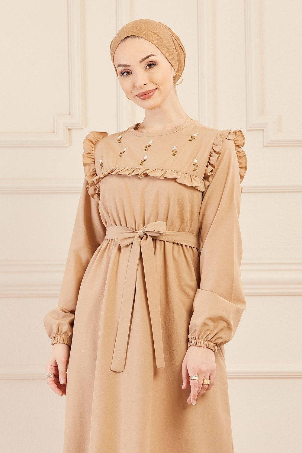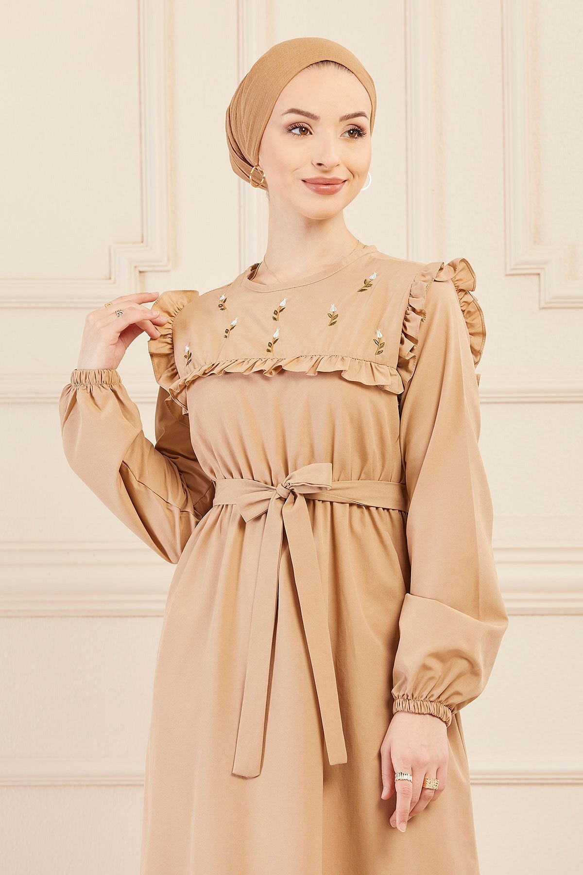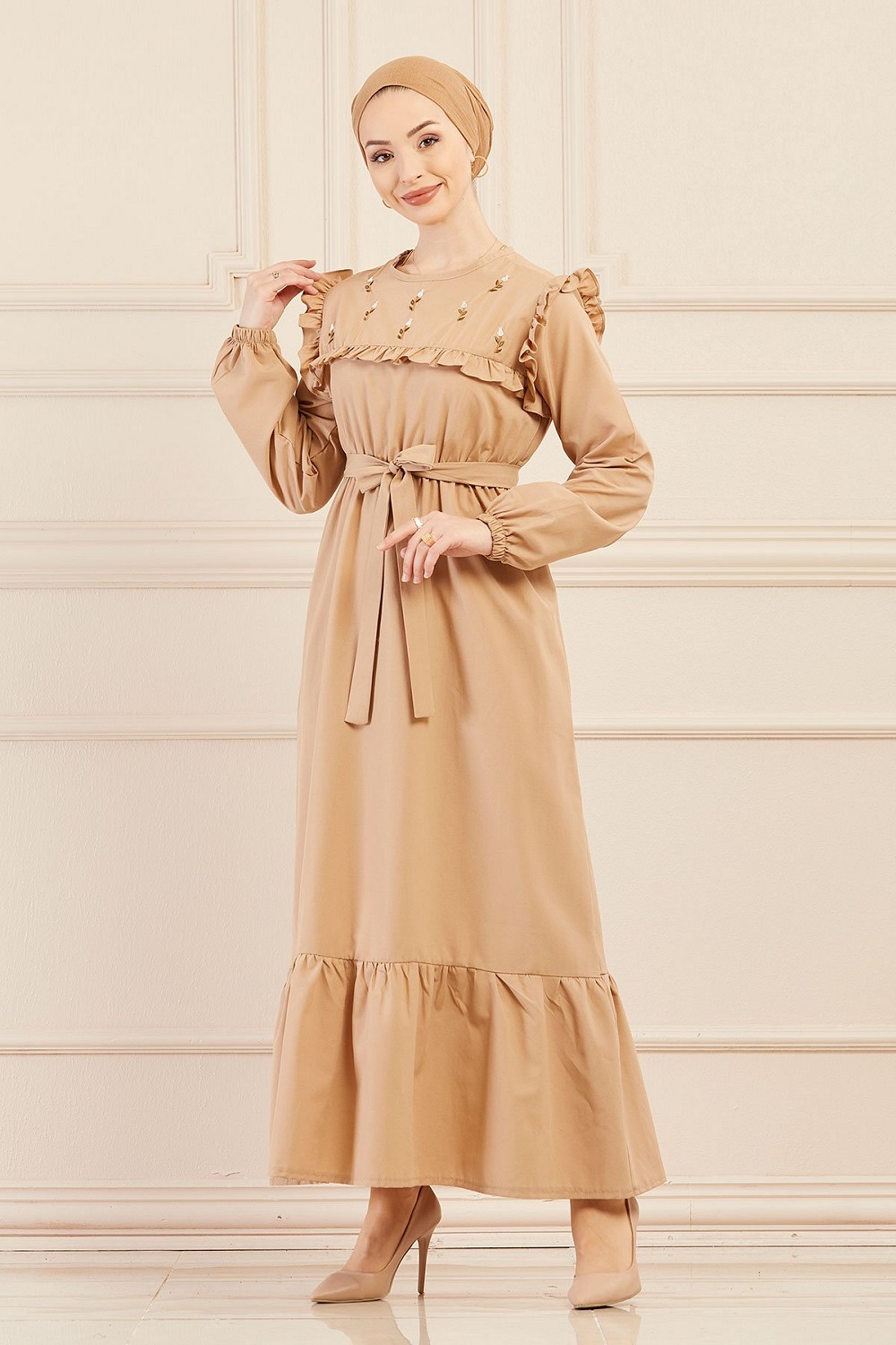 Robe brodee pour femme (Tenue elegante pour hijab) - Couleur beige