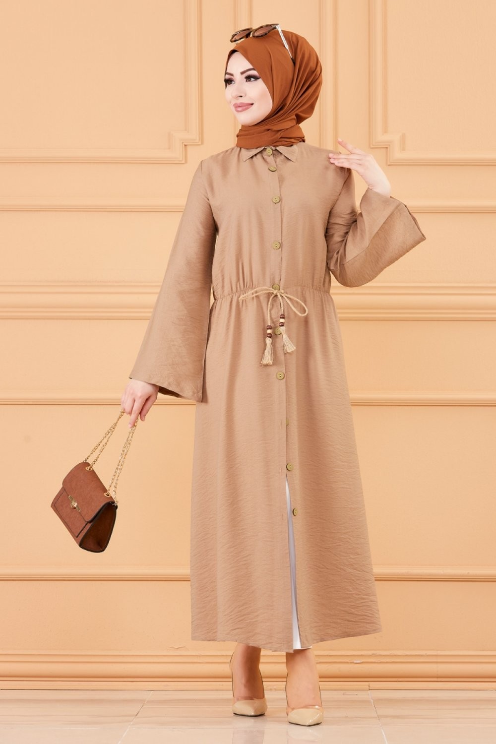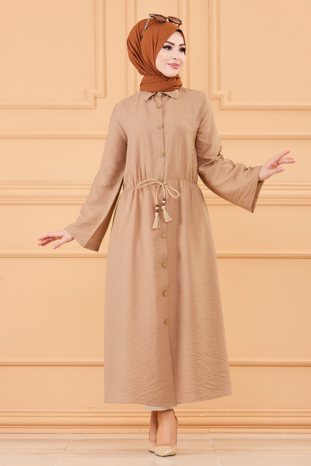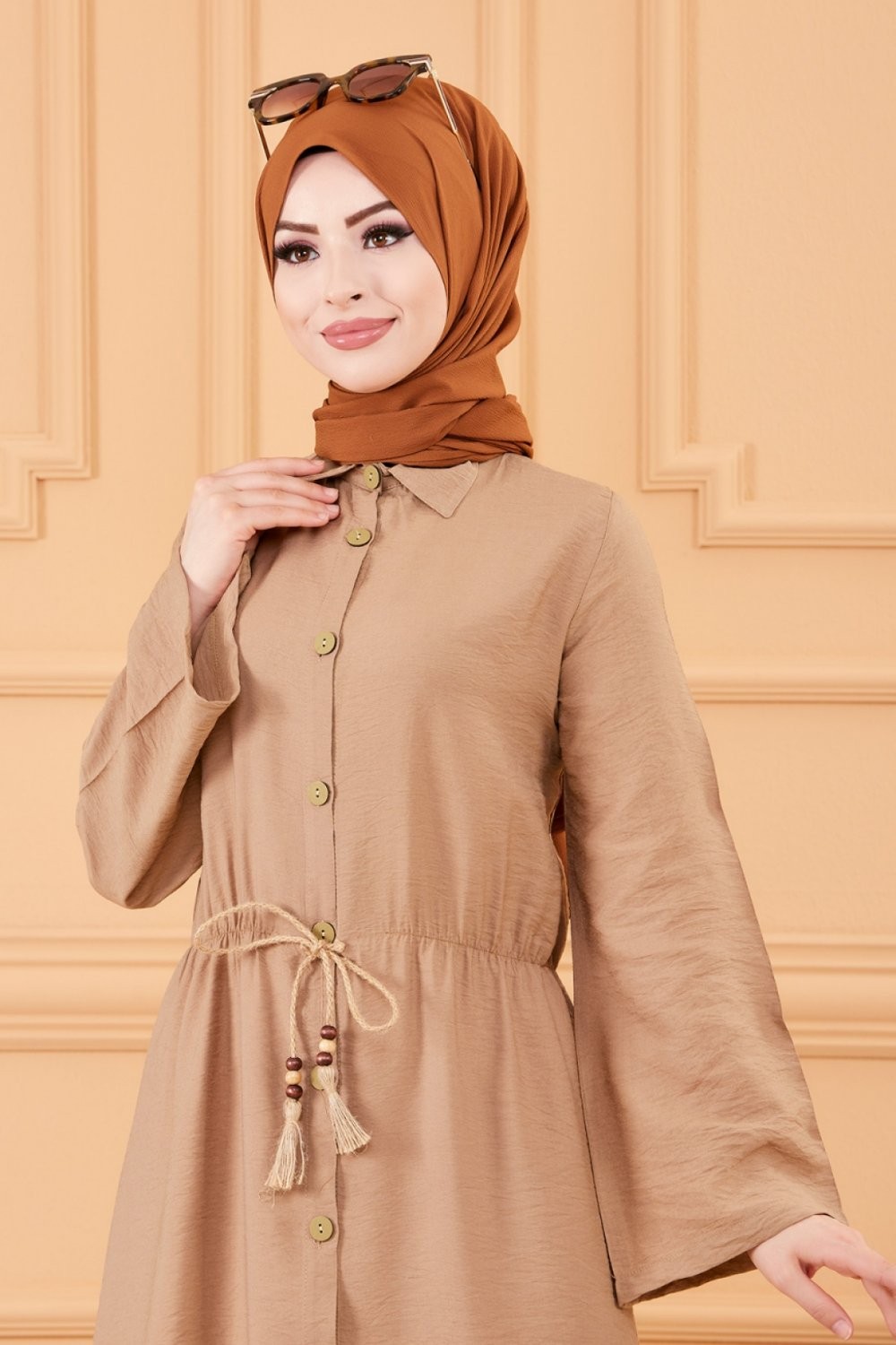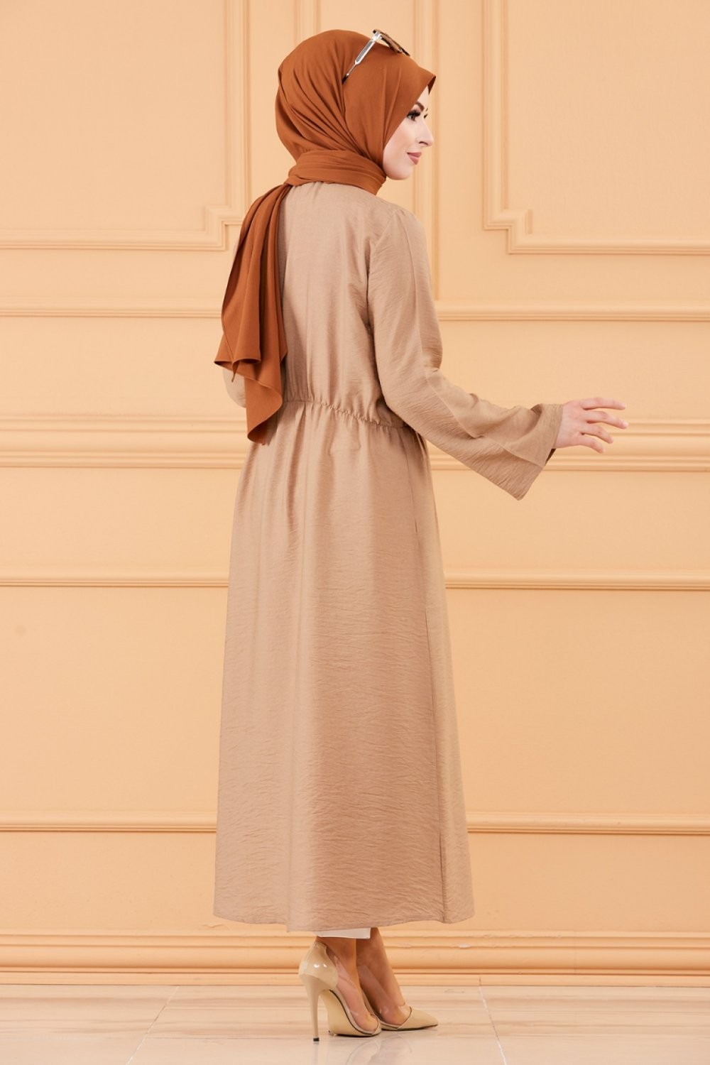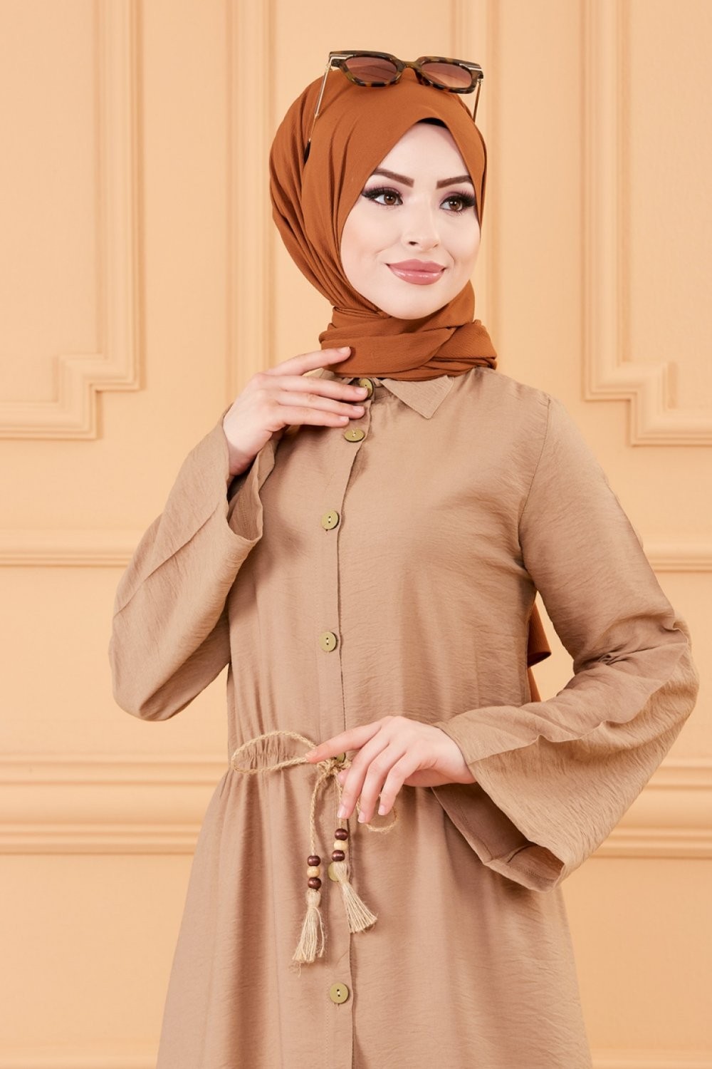 Robe casual avec ceinture integree pour femme (Boutique en ligne Hijab & Mode Musulmane France) - Couleur beige