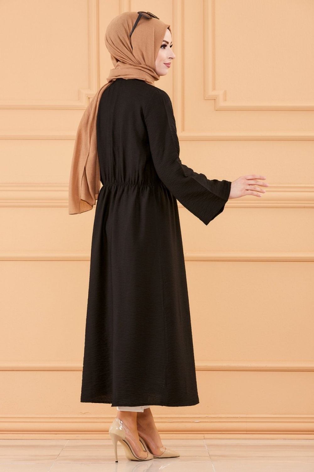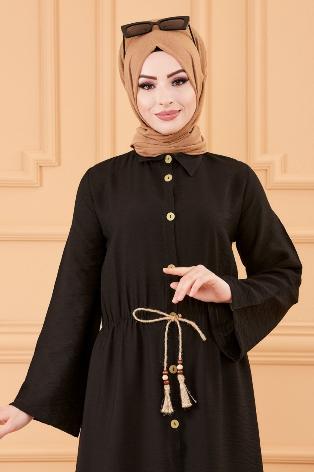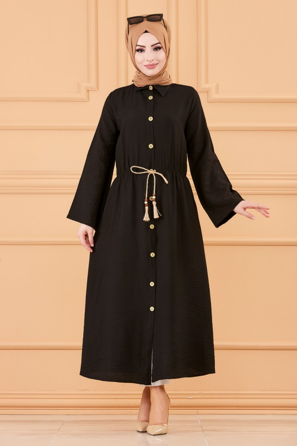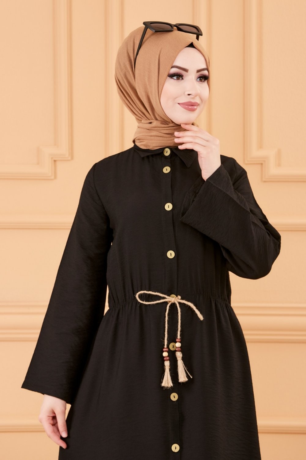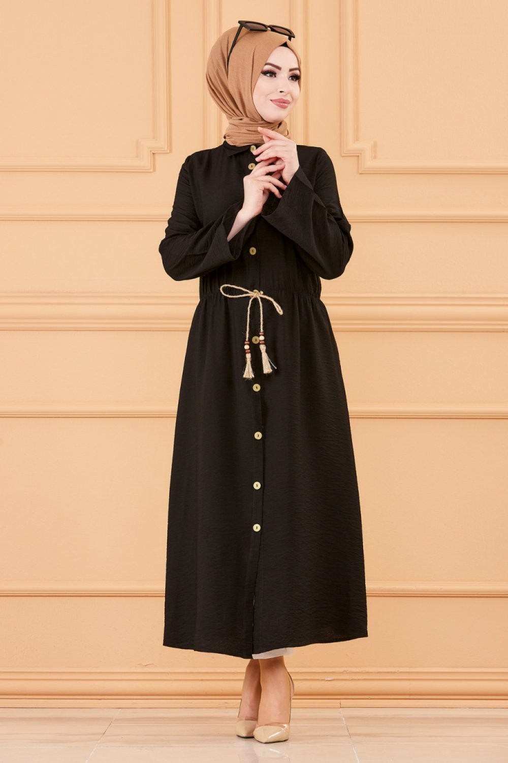 Robe casual avec ceinture intégrée pour femme (Boutique en ligne Mode Modeste & Hijab France) - Couleur noir Vetement & Accessoire