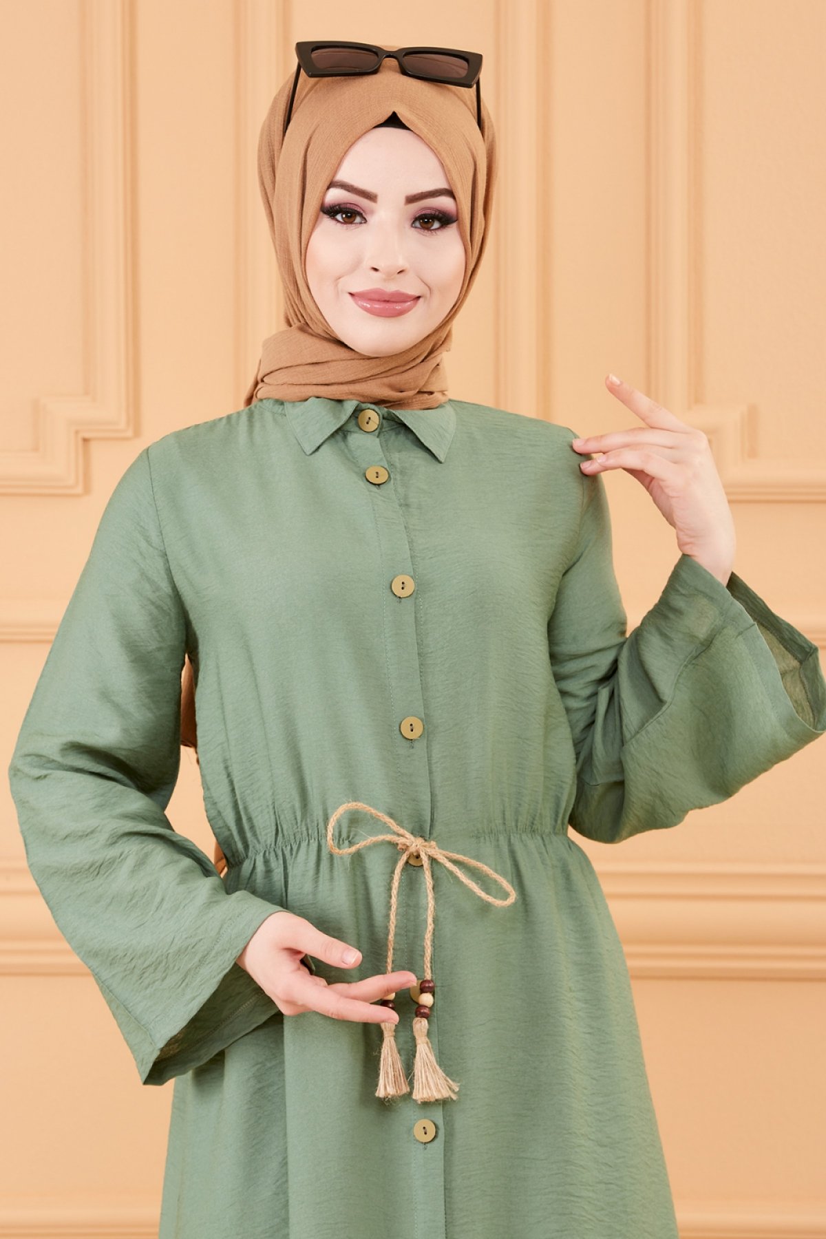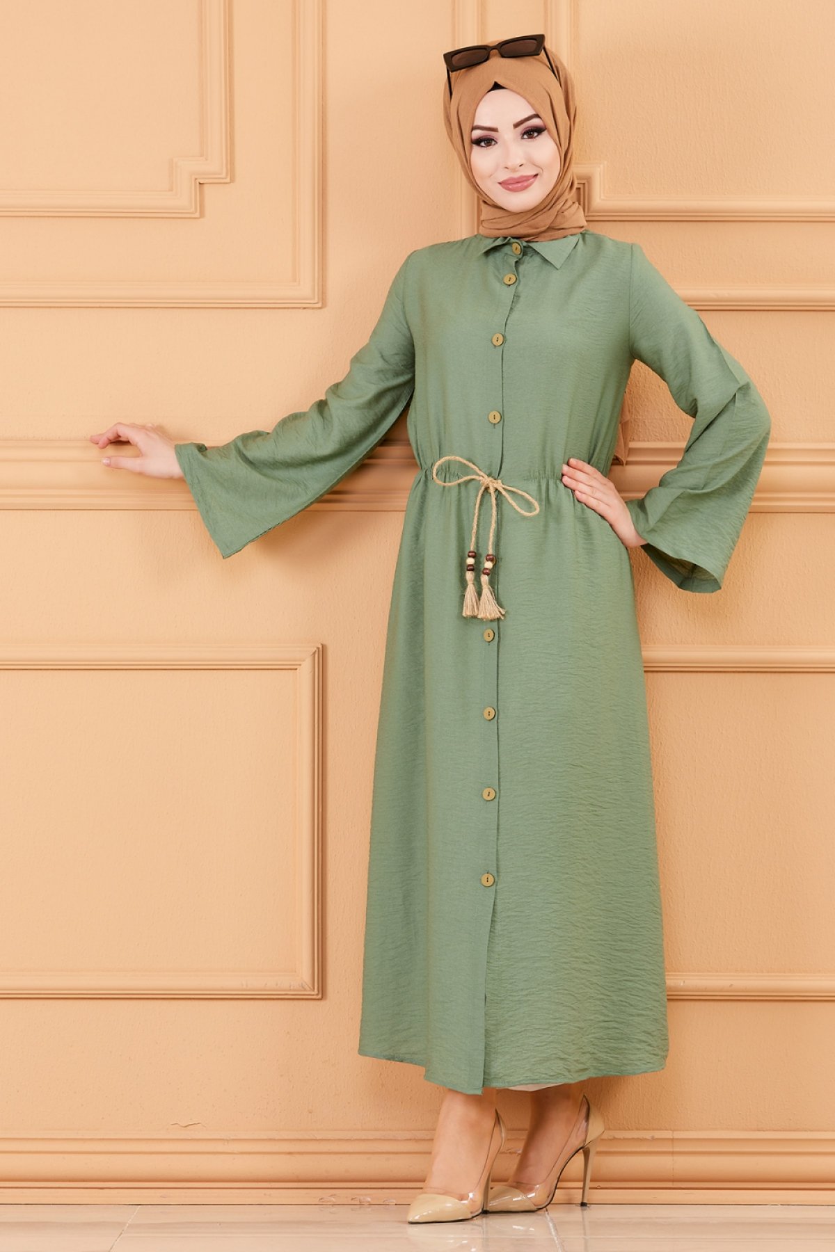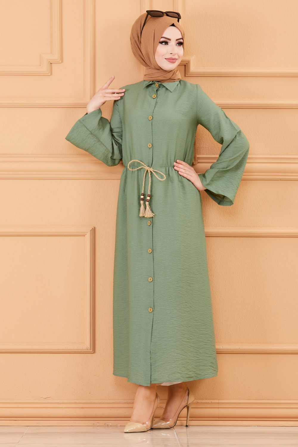 Les photos correspondent à du vert kaki foncé. Vous allez recevoir la même robe en couleur kaki clair.