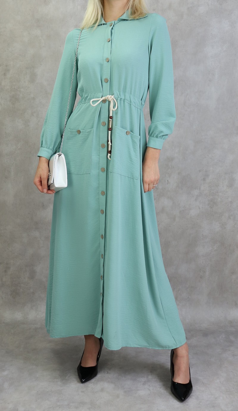 Robe longue casual col chemise pour femmes - Couleur Vert amande - REF. 31746 (35.00 €)