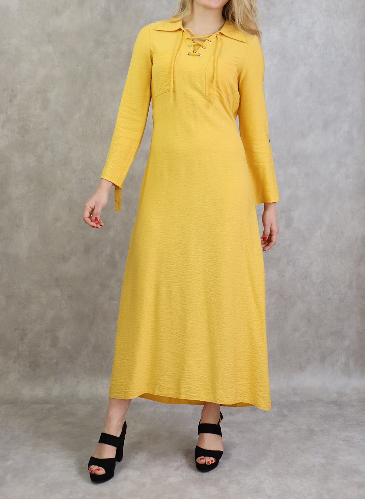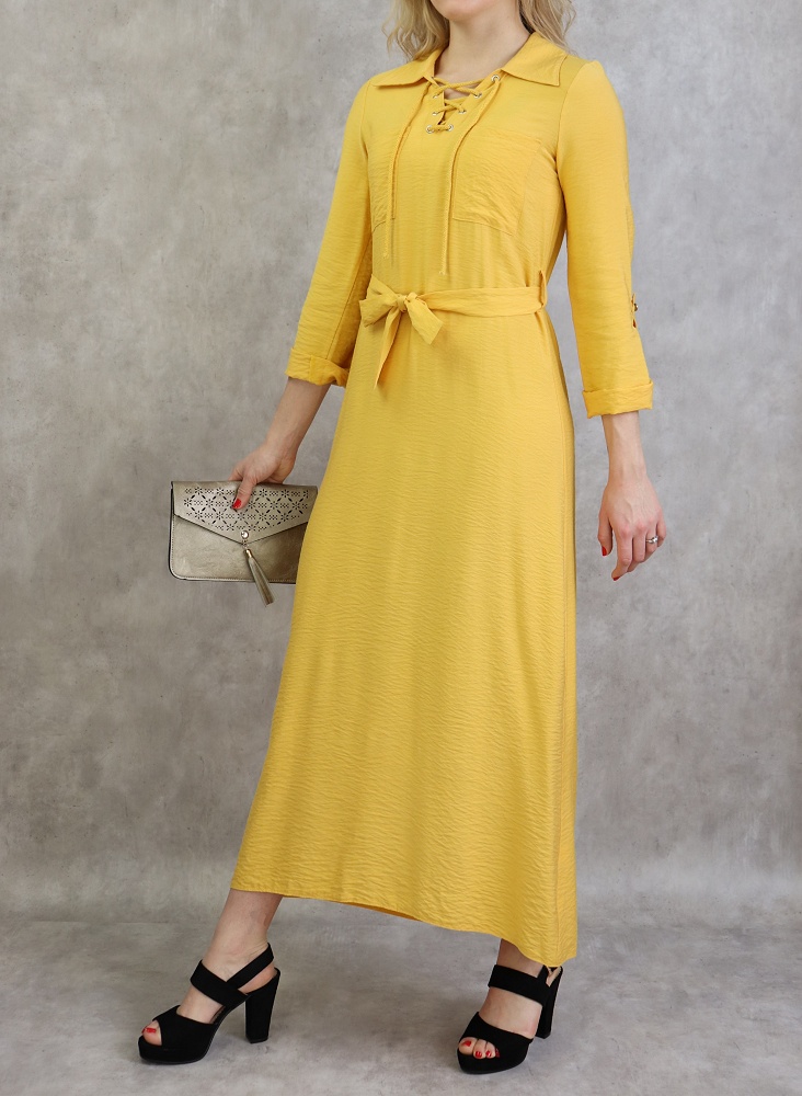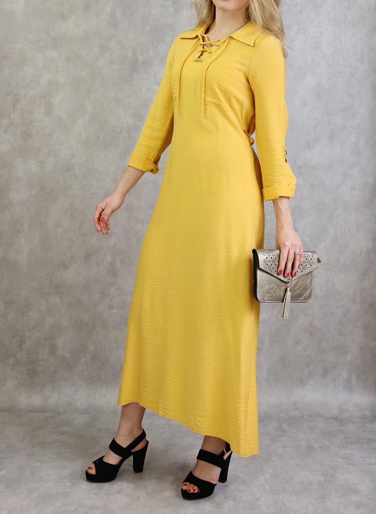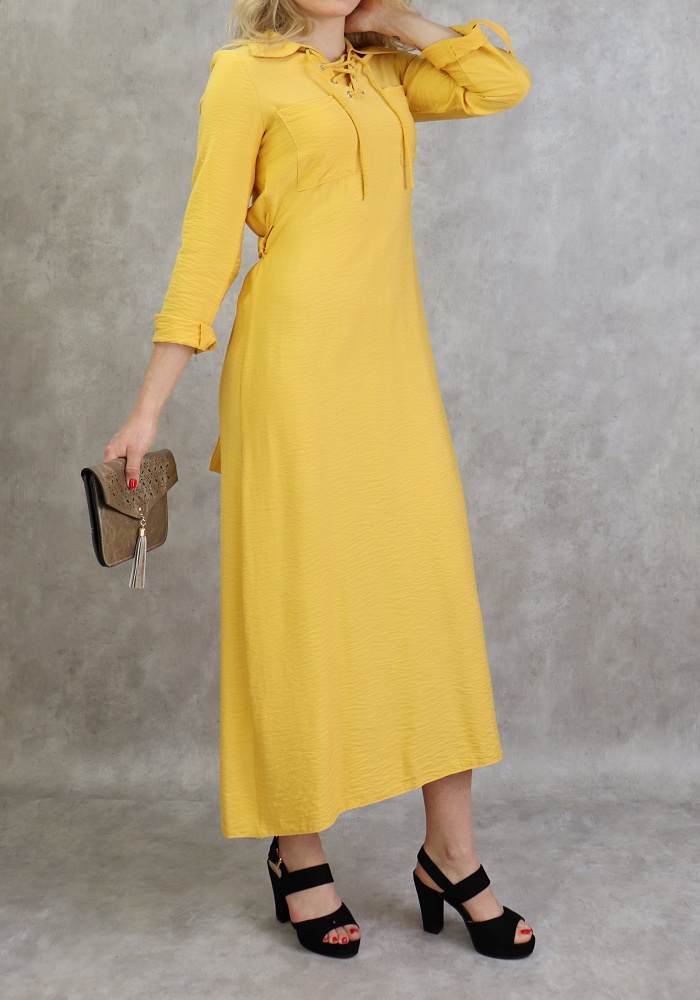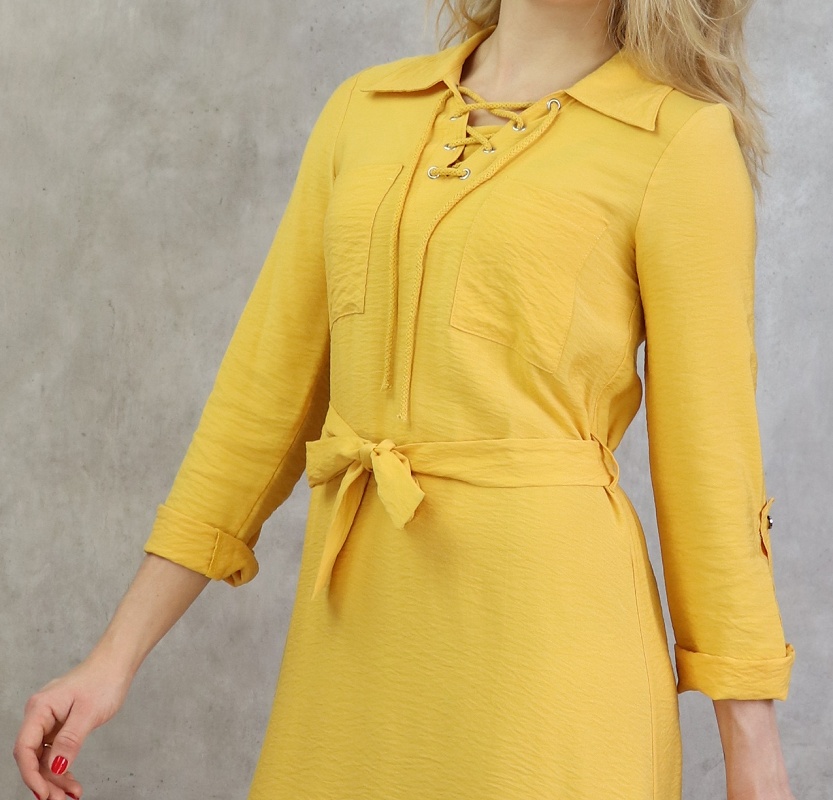 Robe casual fluide mi-saison pour femme - Couleur Jaune Vetement & Accessoire
