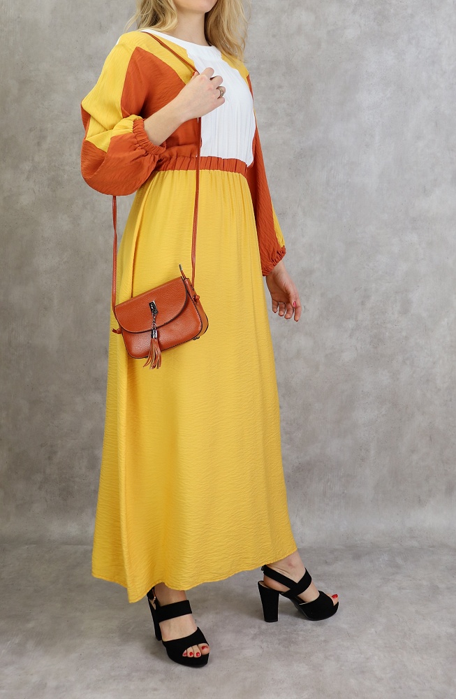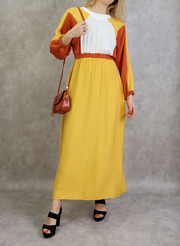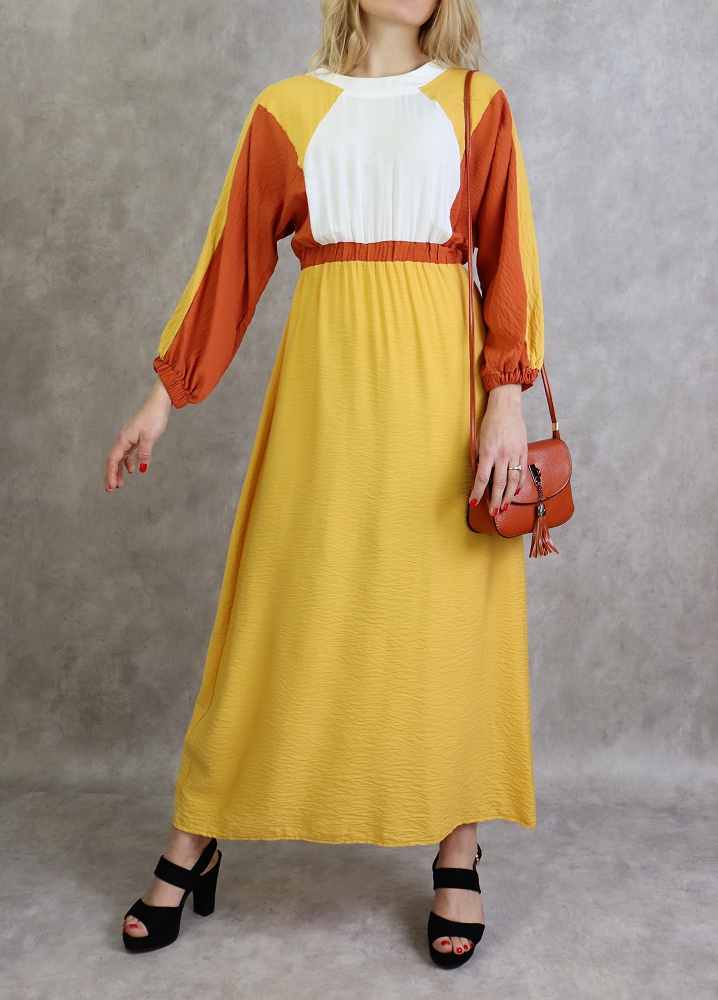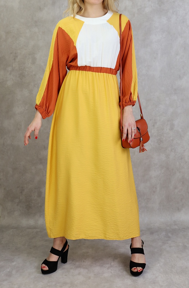 Originale de par ces différentes couleurs bien assorties, optez sans hésiter pour cette robe mi-saison, casual et décontractée.