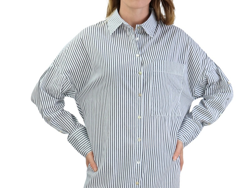 Robe chemise, col chemisier, poche plaquée, fermeture boutons, manches longues. Confectionnée pour les personnes qui veulent allier robe et chemise. Les rayures restent une valeur sure et indémodable.