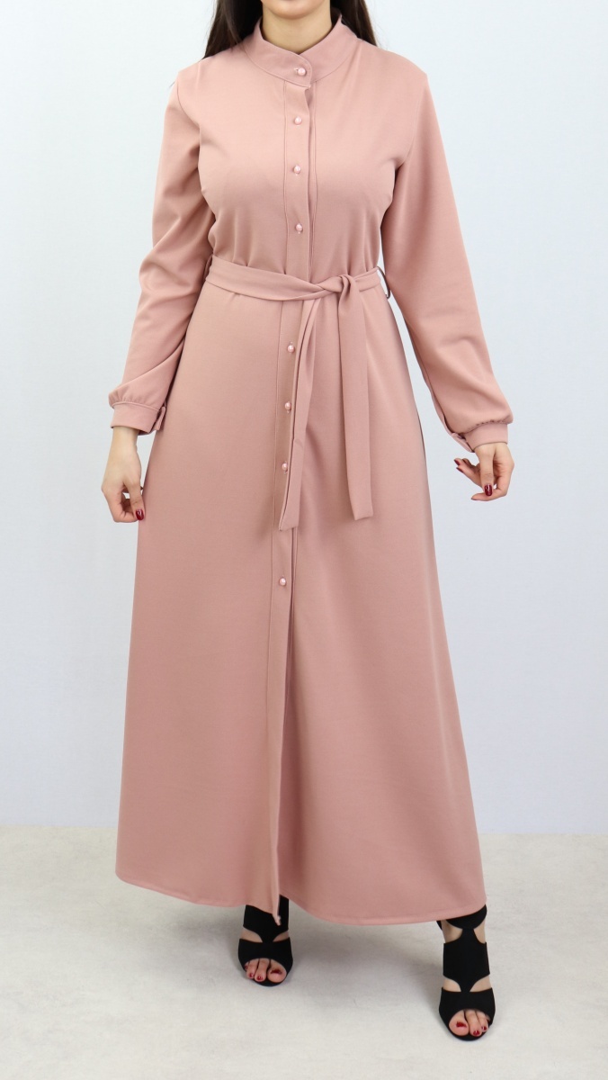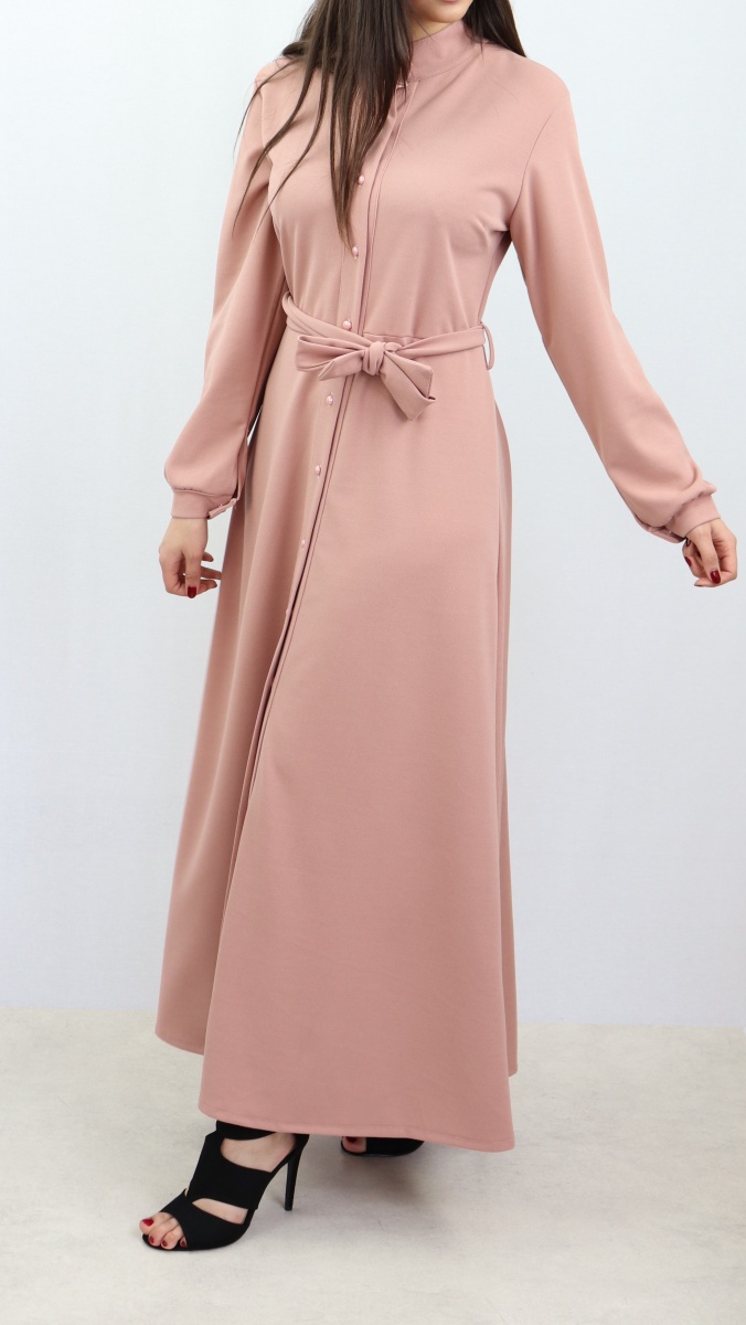 Robe longue look décontracté pour femme musulmane (Vetement hijeb pas cher) - Couleur rose clair - REF. 36949 (19.90 €) - En Promotion à 16.90 €
