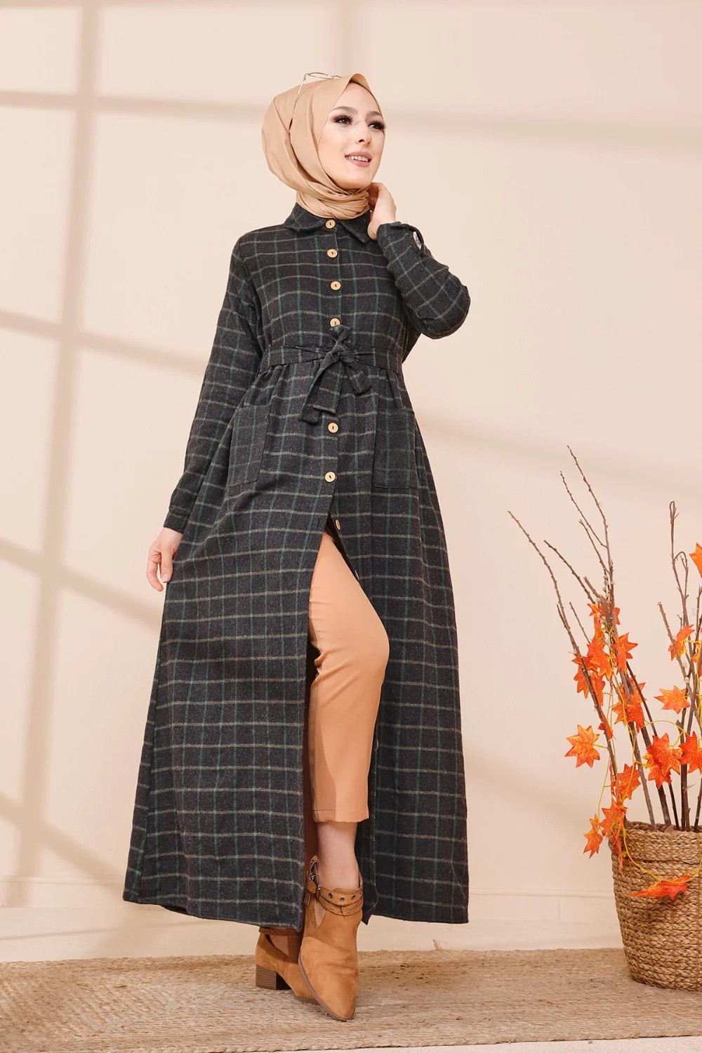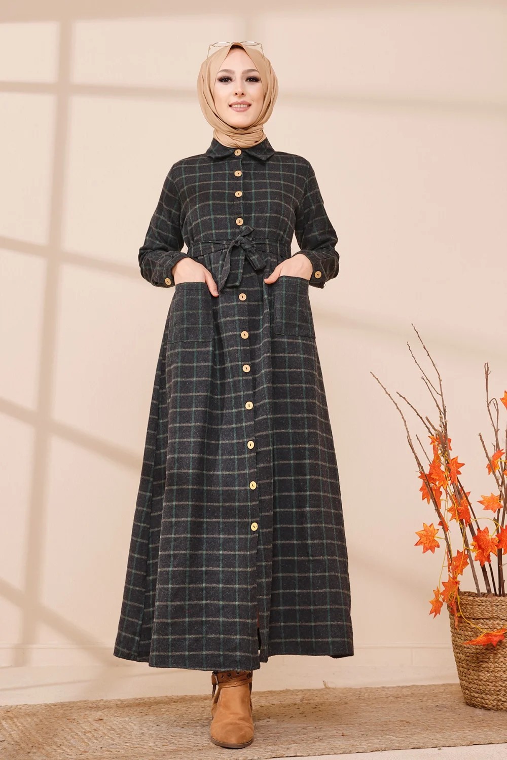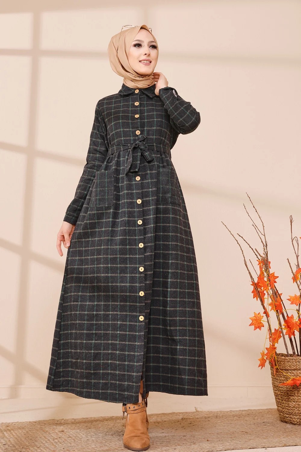 Robe longue, col chemise, manches droites finition bouton, taille cintrée, ceinture assortie à passants, 2 poches plaquées, fermeture sur toute la longueur a boutons. Optez pour cette robe originale et ses carreaux indémodables. Son tissu doux et chaud conviendra parfaitement pour la saison automne hiver.