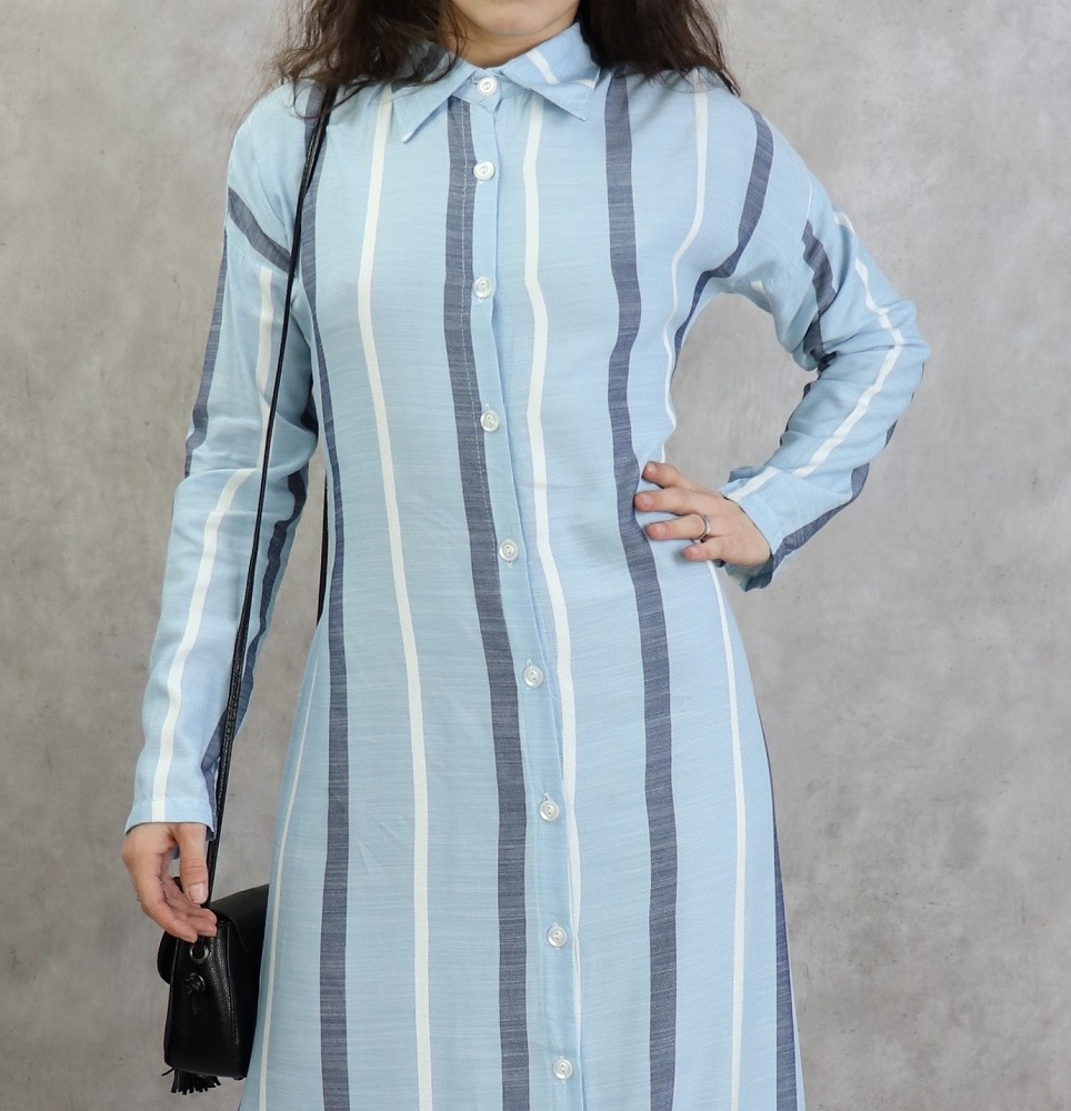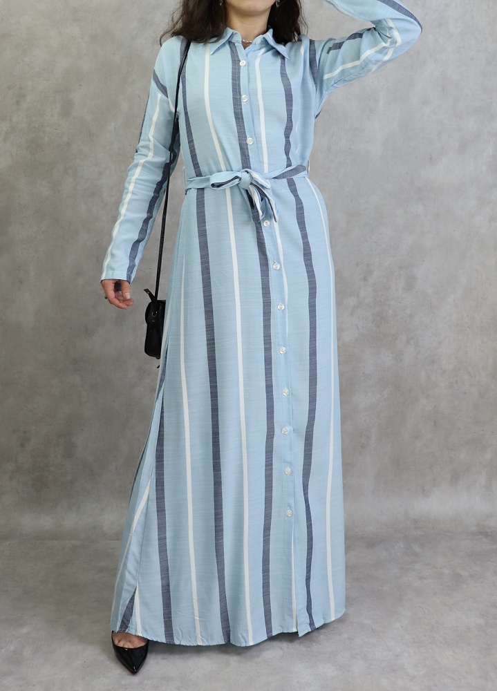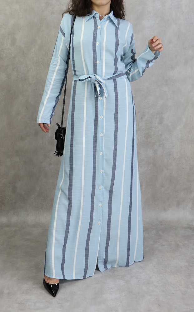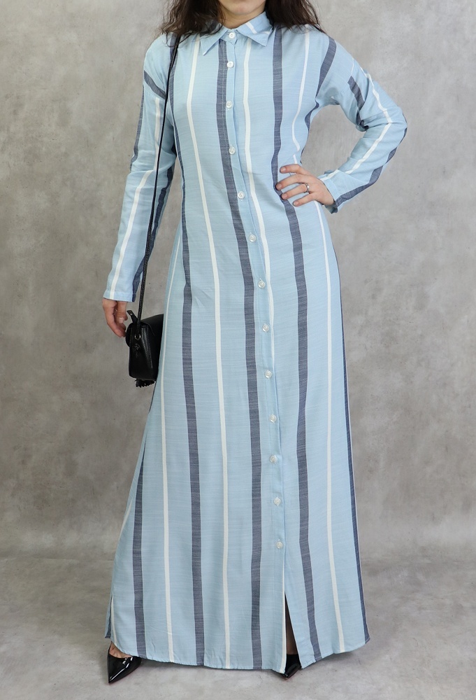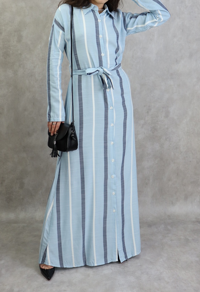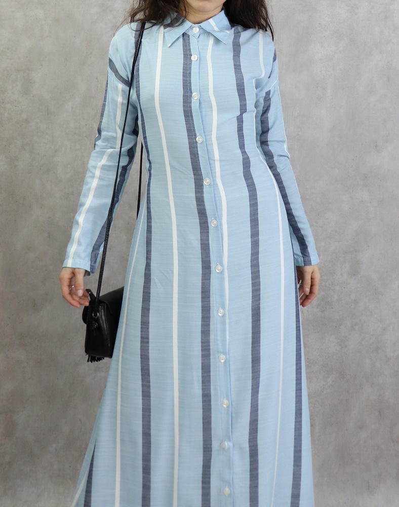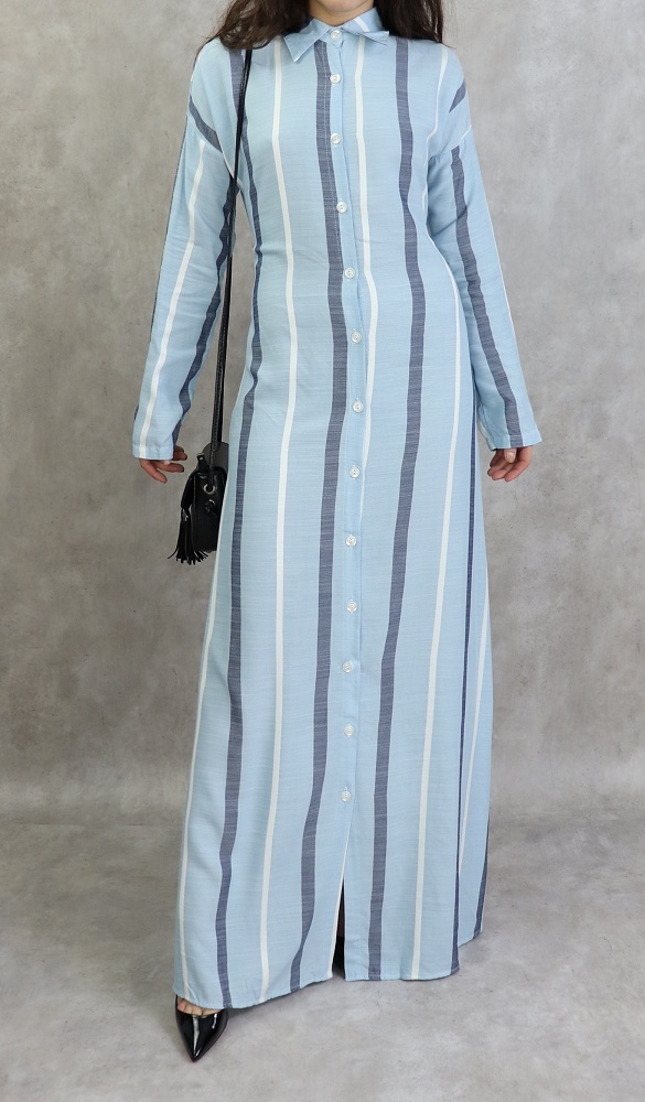 Robe-chemise longue boutonnée tissu en coton à rayures - Couleur bleue Vetement & Accessoire