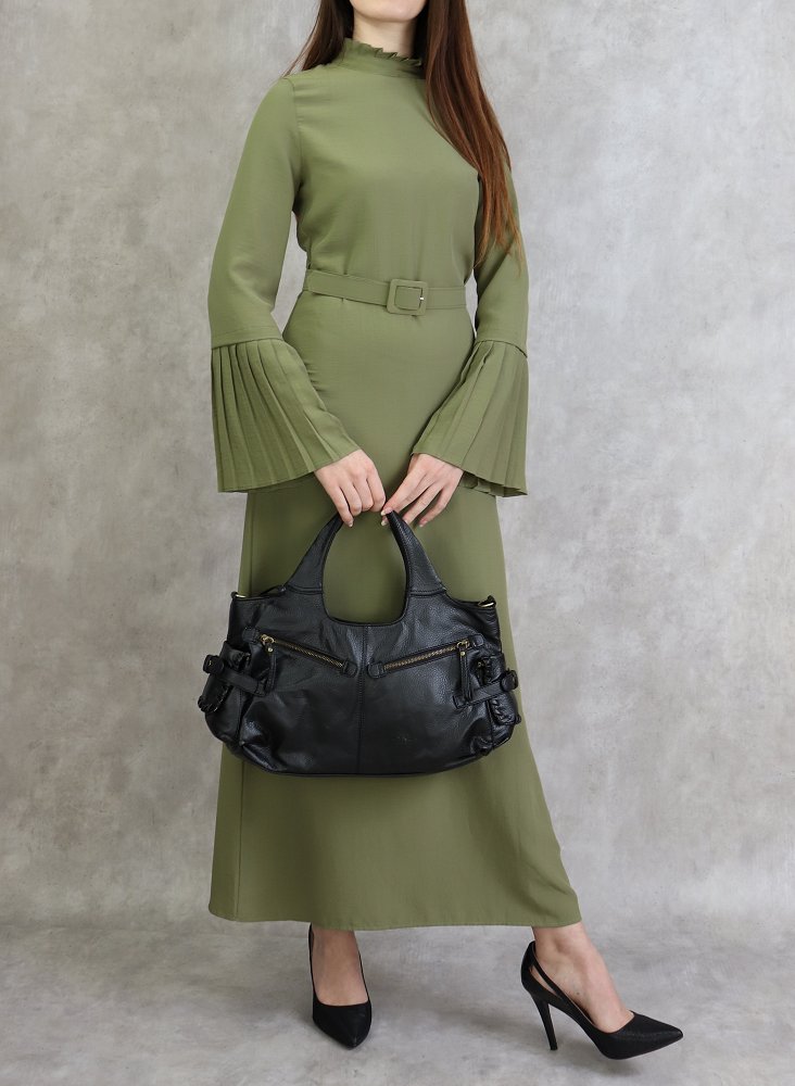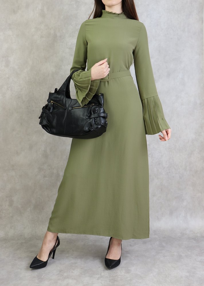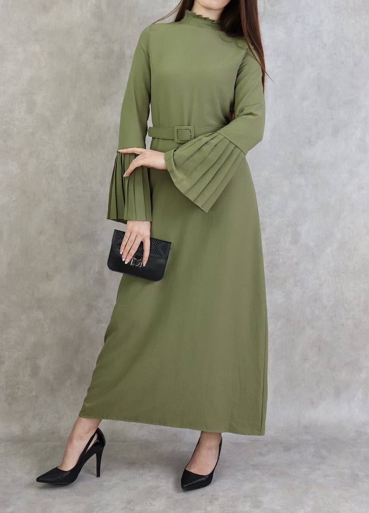 Robe classique et élégante manches plissées - Couleur Kaki clair Vetement & Accessoire