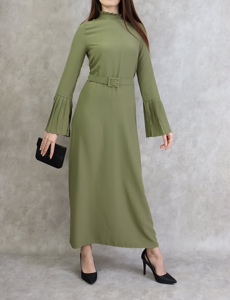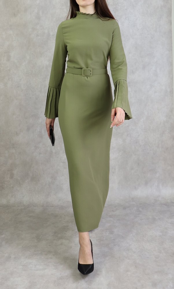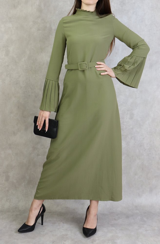 Robe classique et elegante manches plissees - Couleur Kaki clair