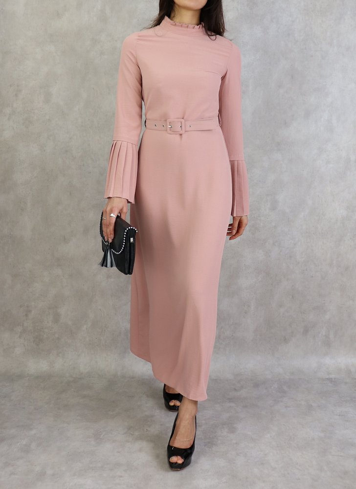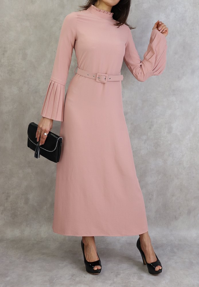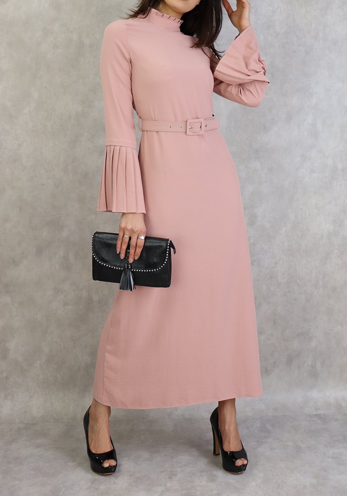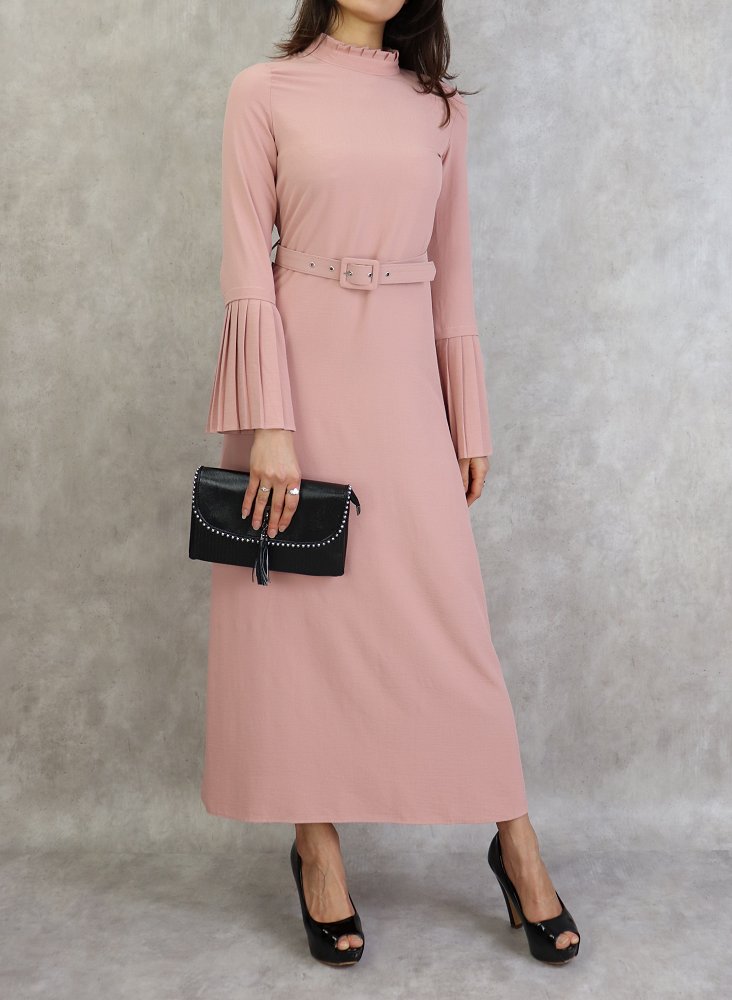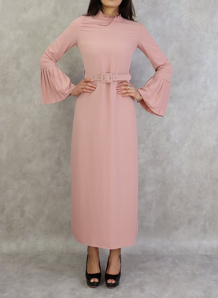 Robe classique et élégante manches plissées - Couleur Rose Clair Vetement & Accessoire