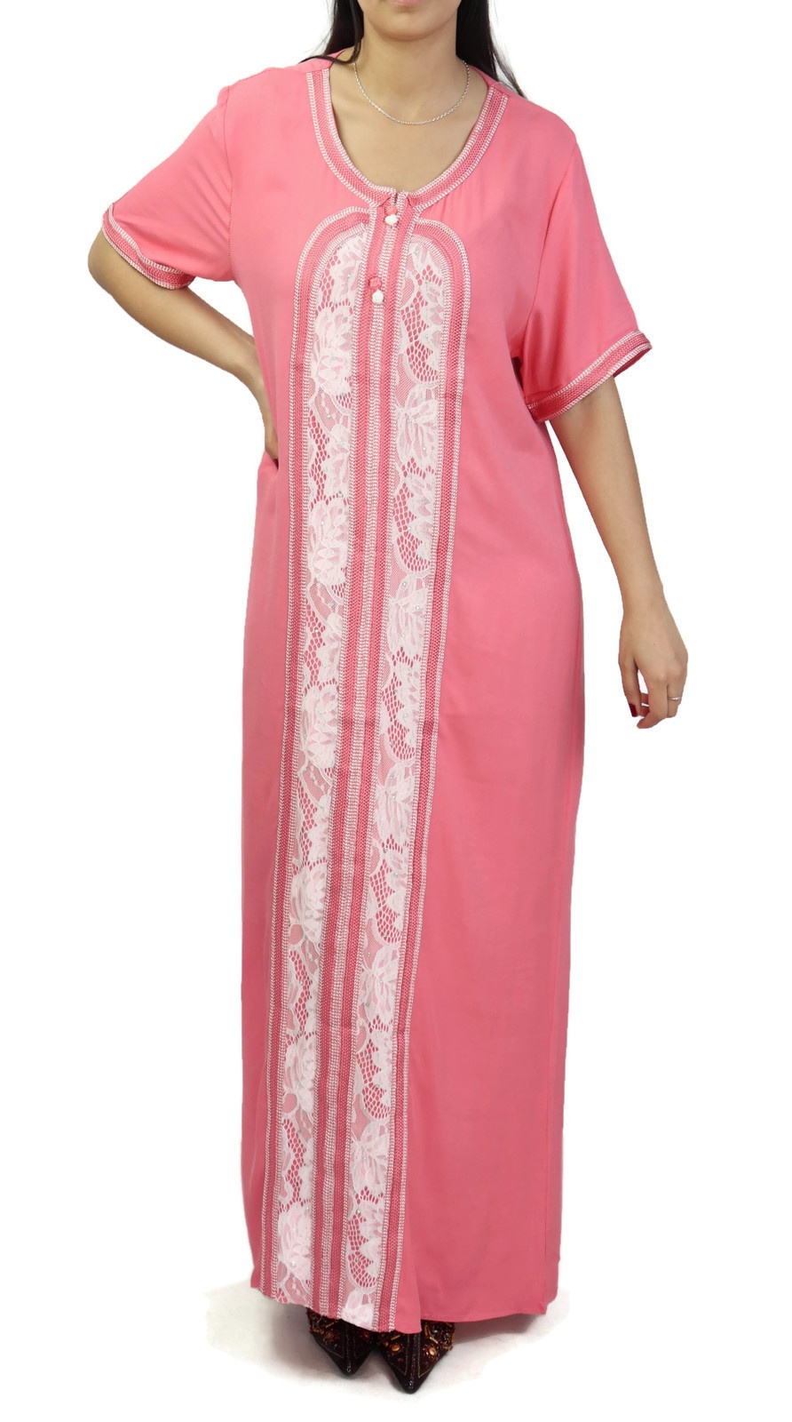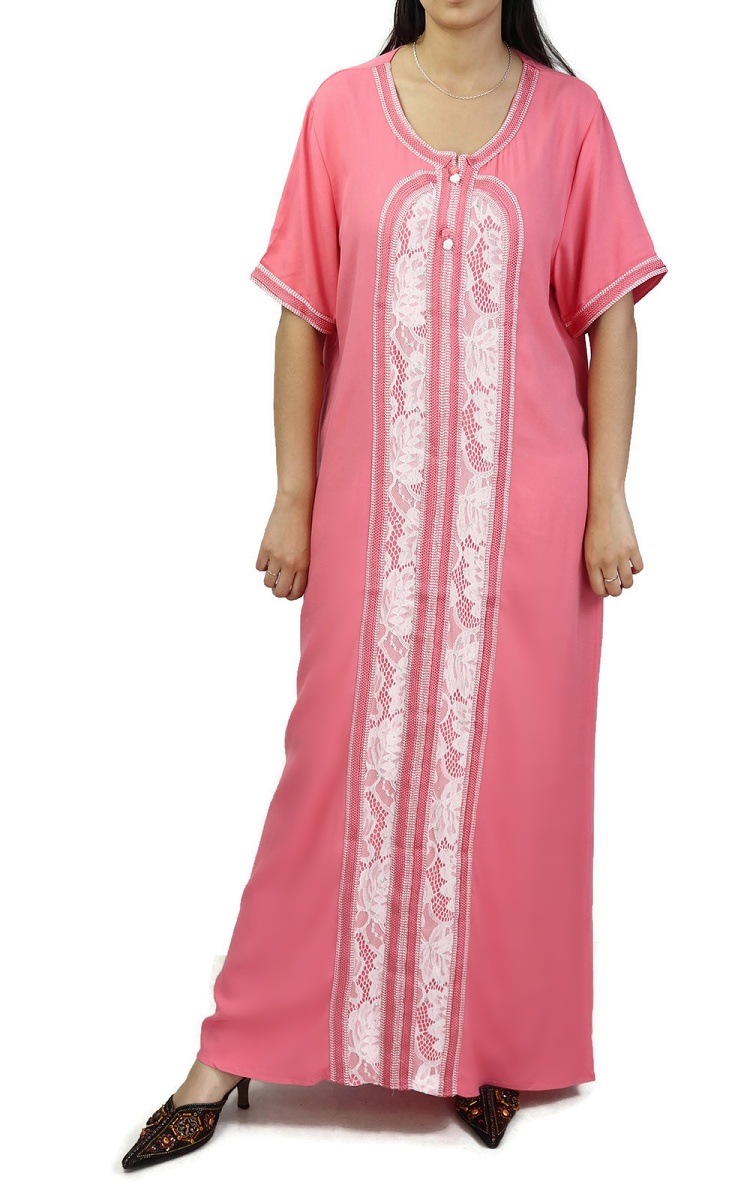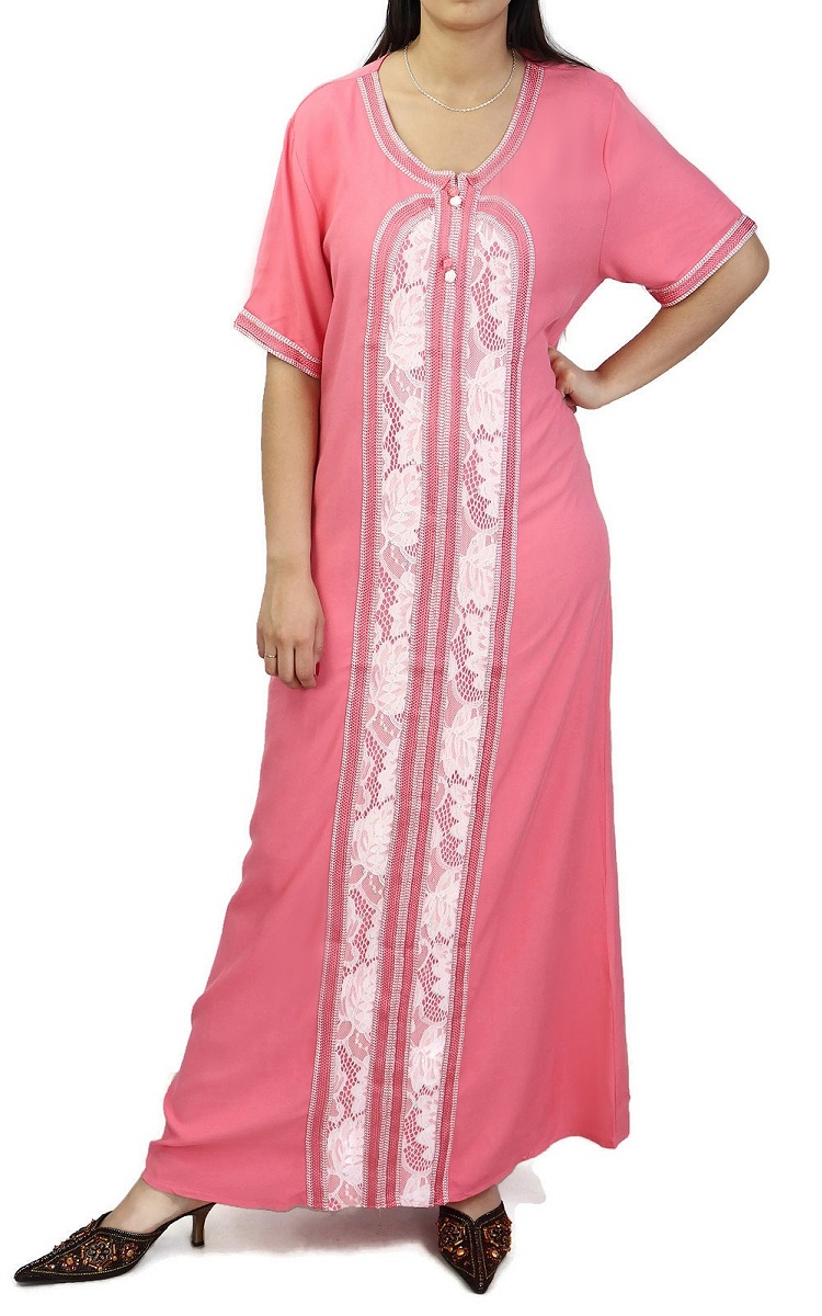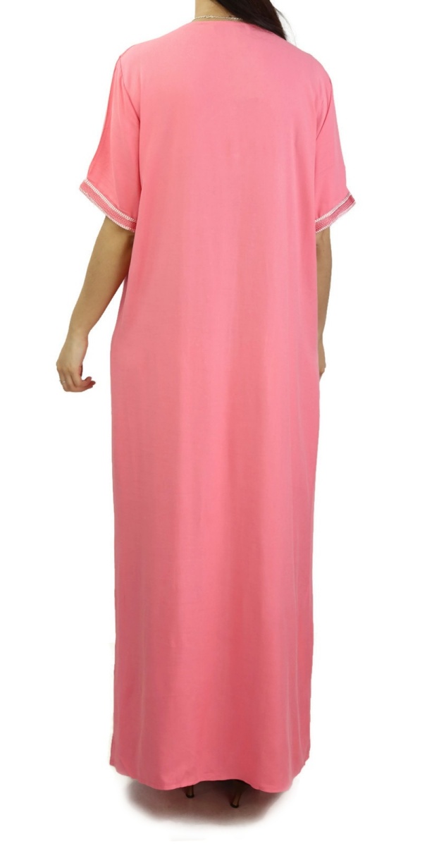 Robe d'intérieur brodée manches courtes avec strass - Couleur rose Vetement & Accessoire