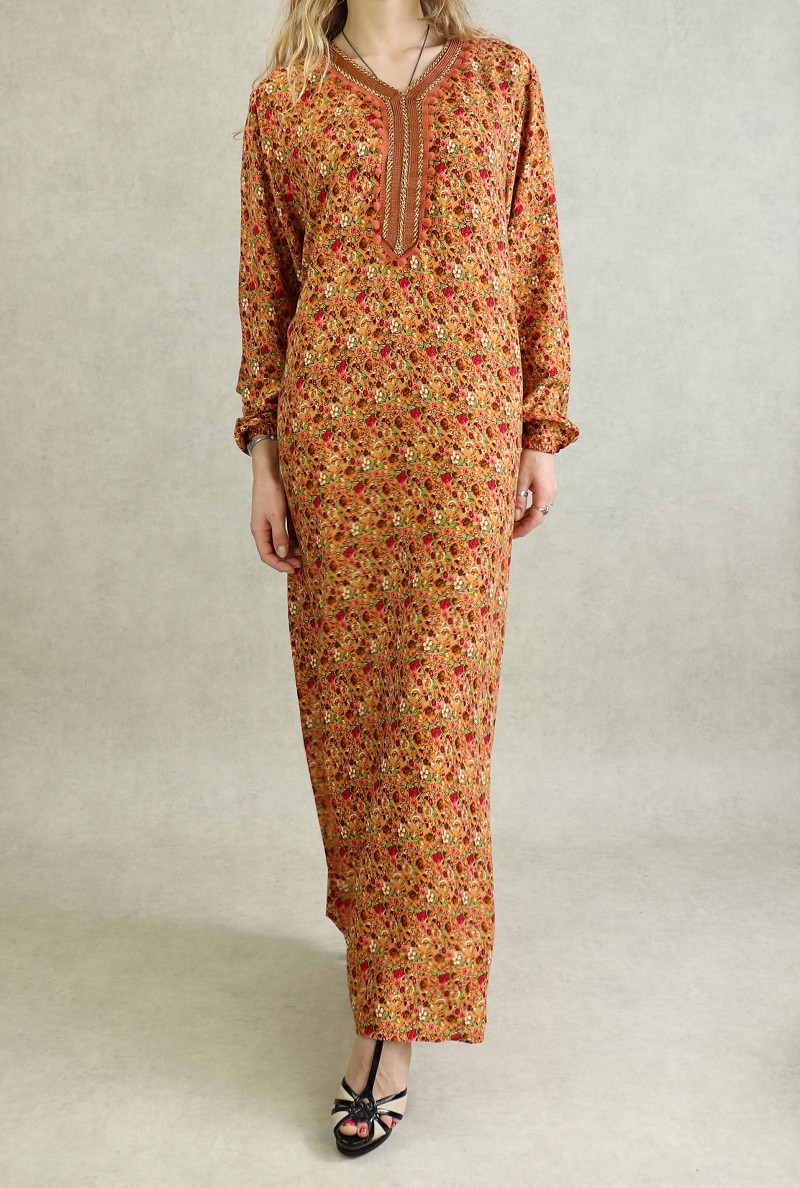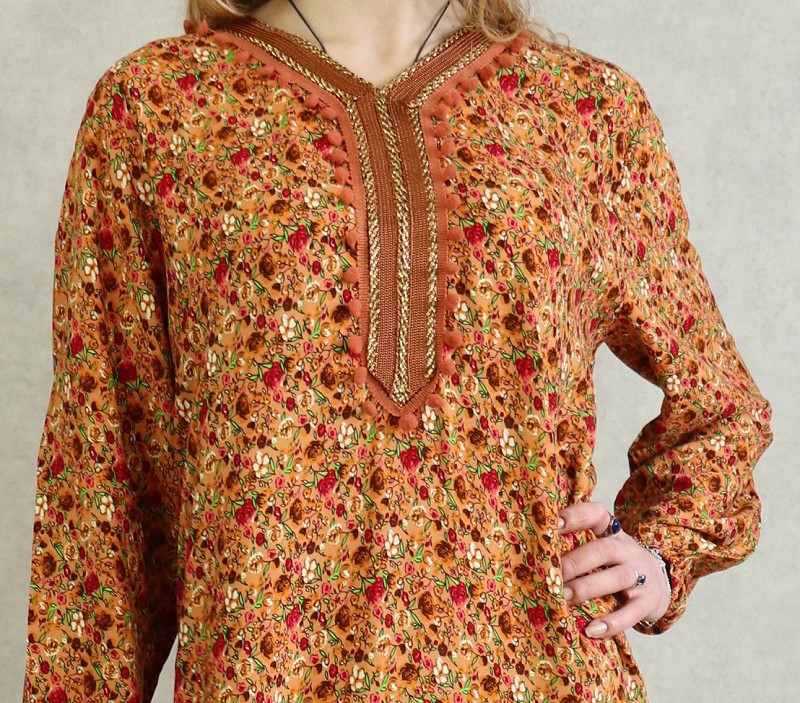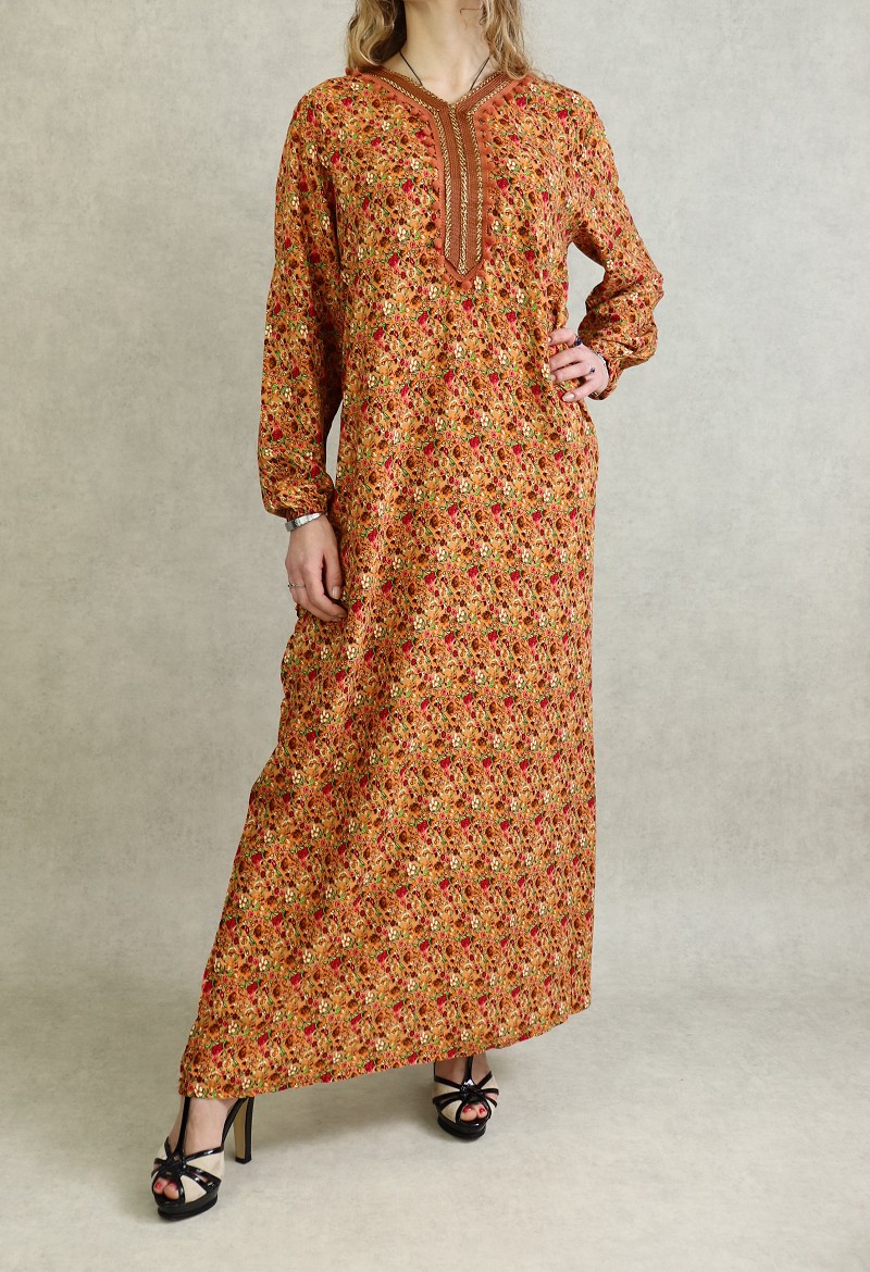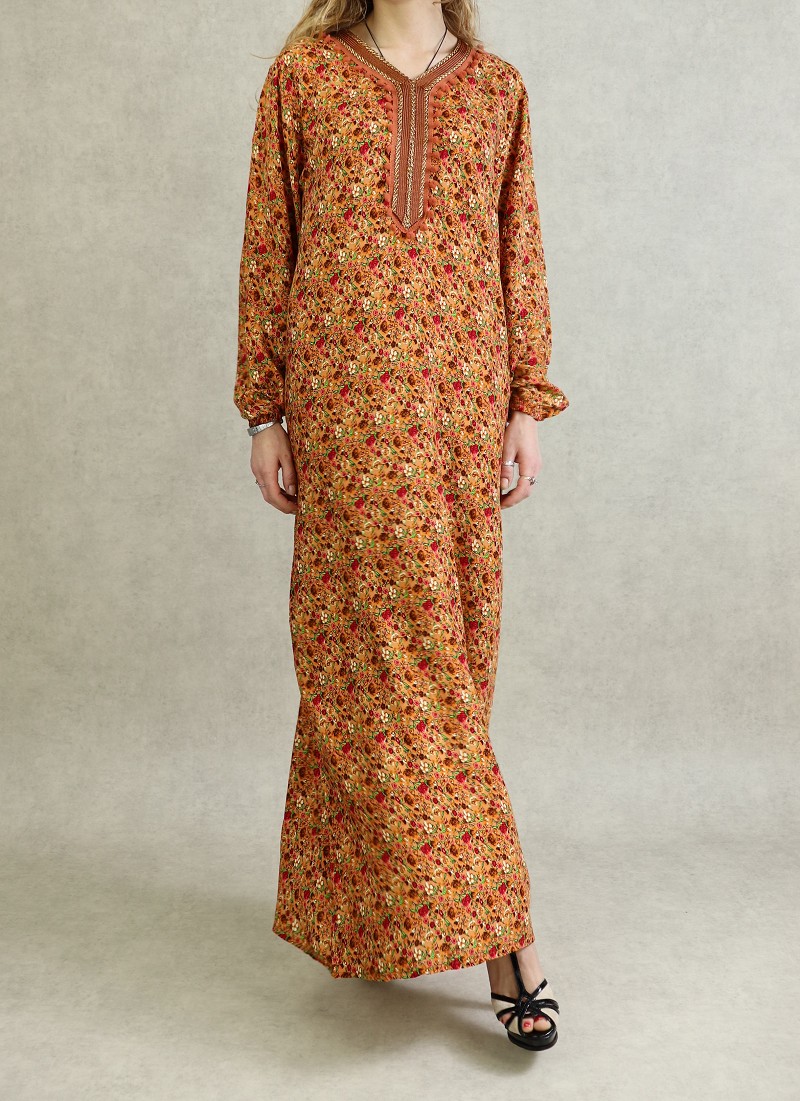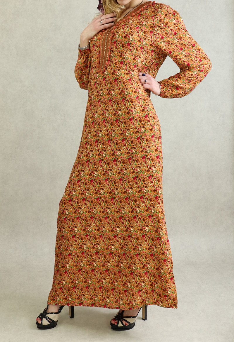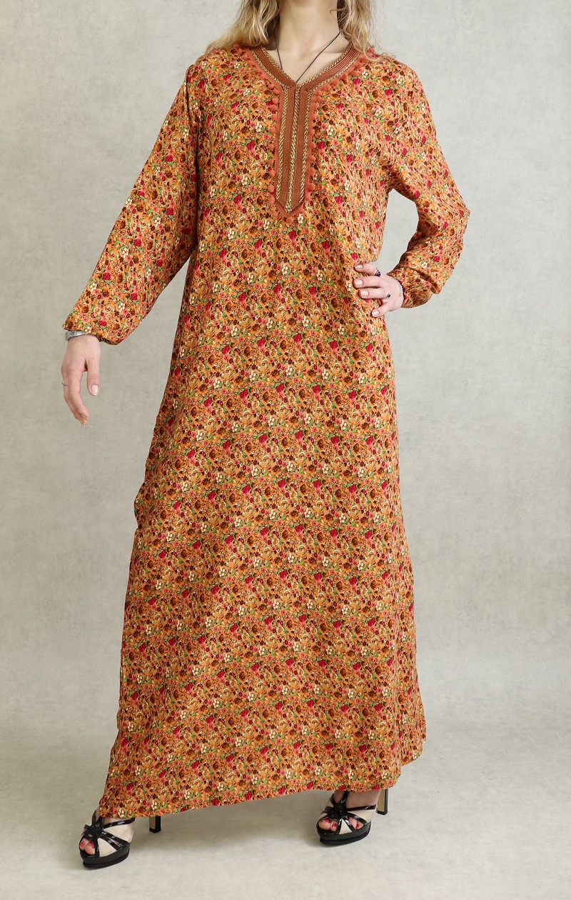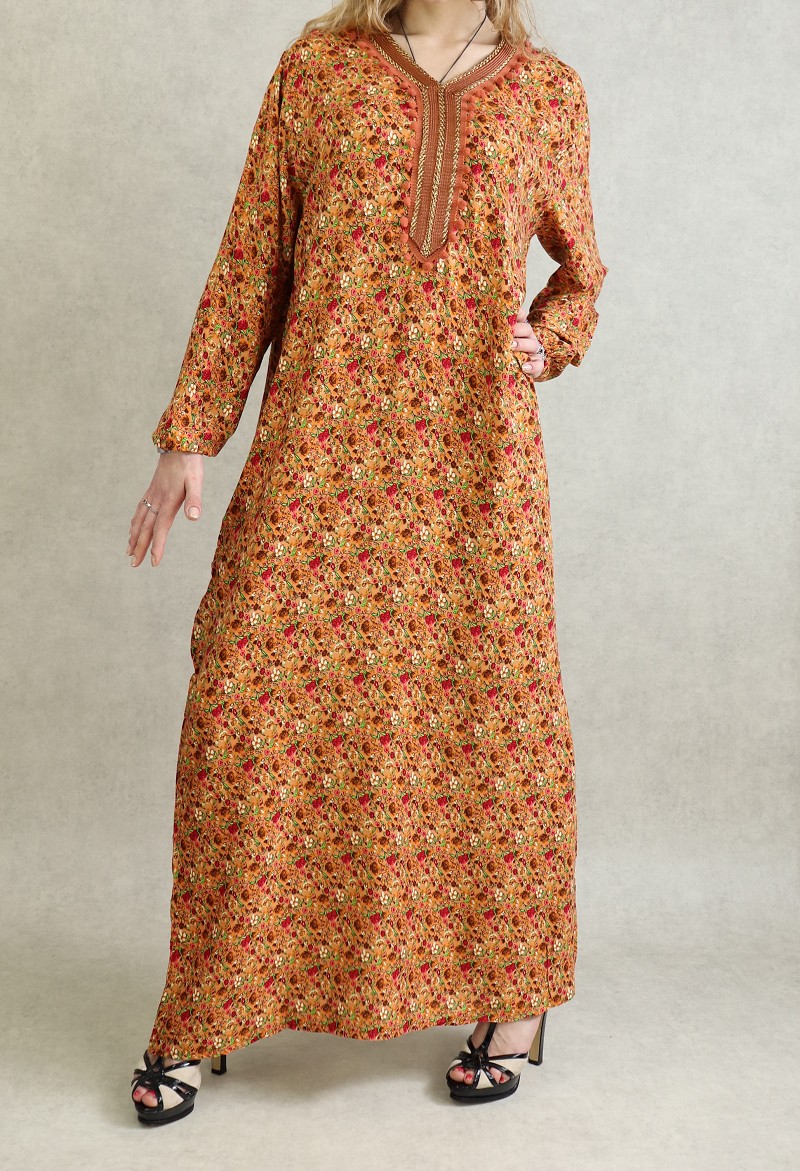 Robe longue motif fleurs ample pour femme (Vêtements hijab mastour) - Couleur tabac - REF. 36589 (29.90 €)