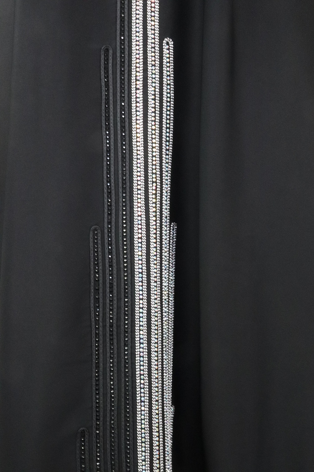 Robe Abaya Dubaï noire de qualité avec strass modèle Burj Khalifa en strass et diamant noirs et blancs - REF. 38144 (45.00 €)