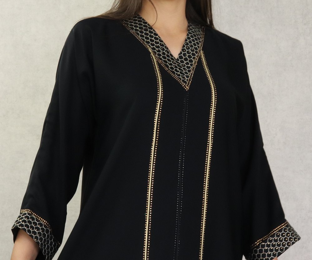 Robe Abaya Dubaï noire de qualité avec strass dorés et broderies - REF. 38140 (45.00 €)