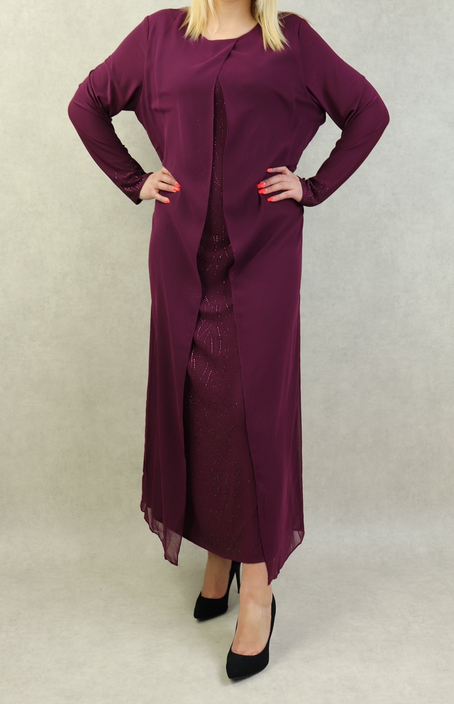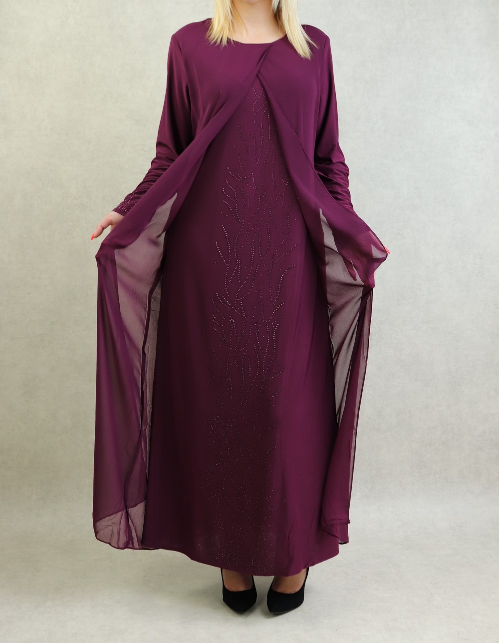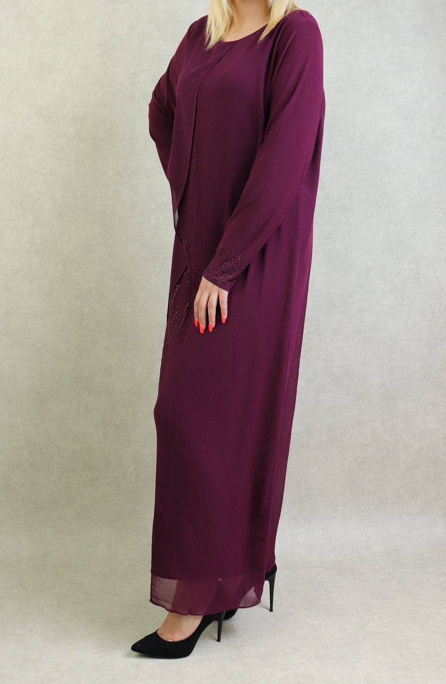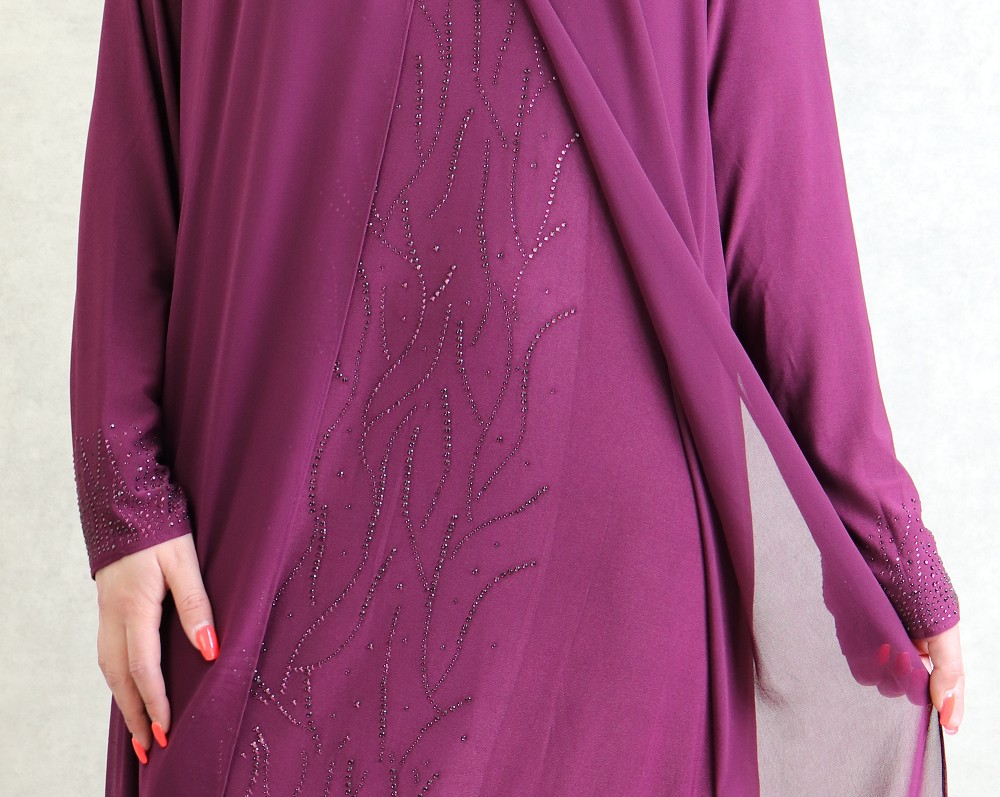 Robe de soirée Abaya avec kimono intégré (Kibaya) pour femme - Couleur Aubergine Vetement & Accessoire