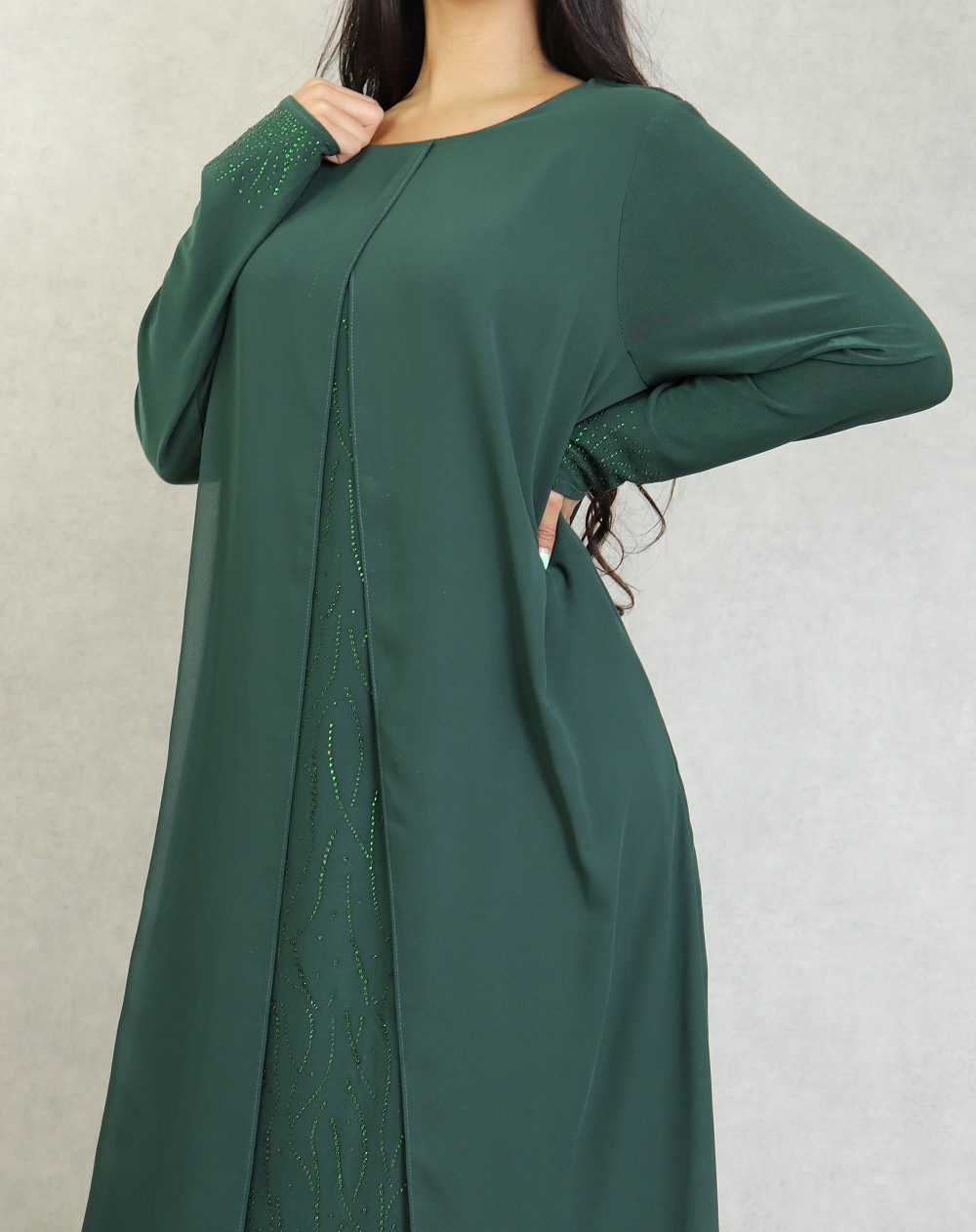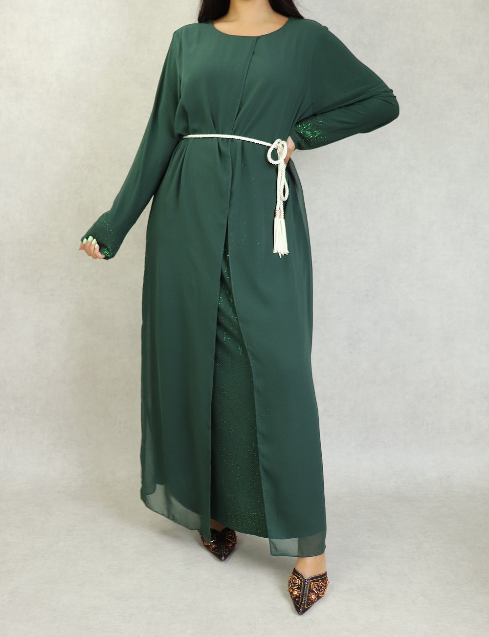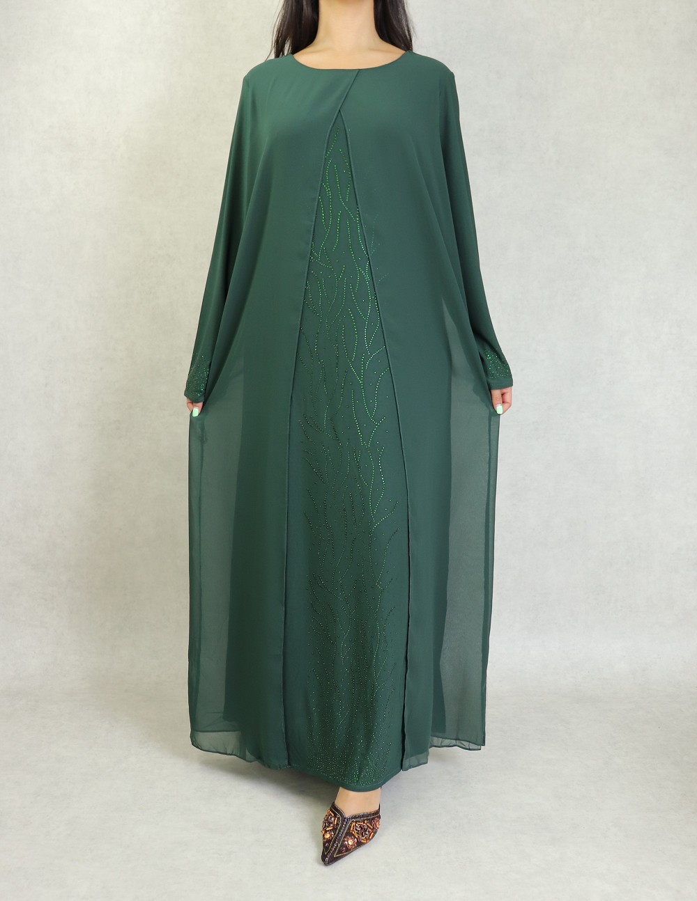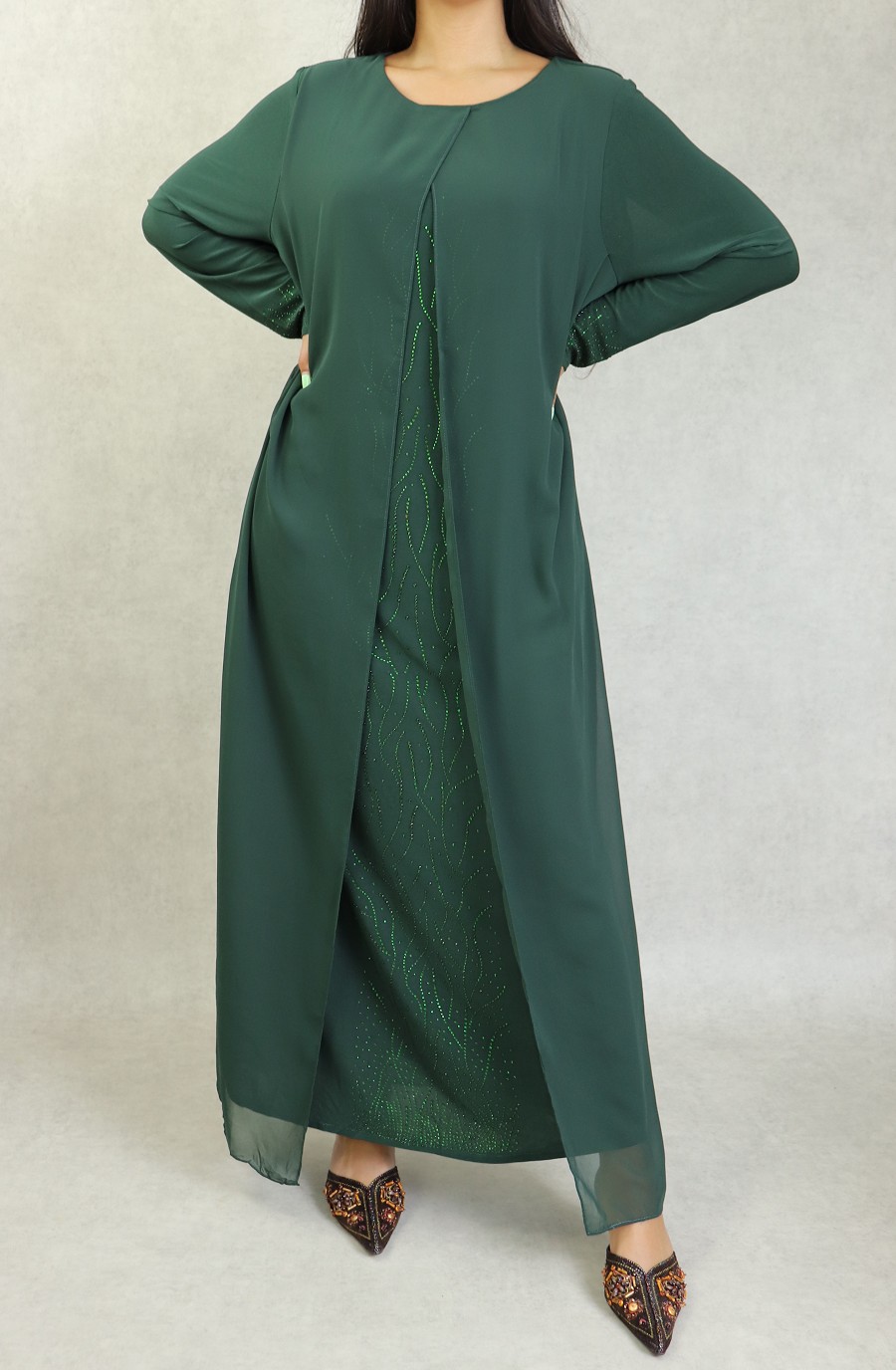 Robe de soiree Abaya avec kimono integre (Kibaya) pour femme - Couleur vert sapin