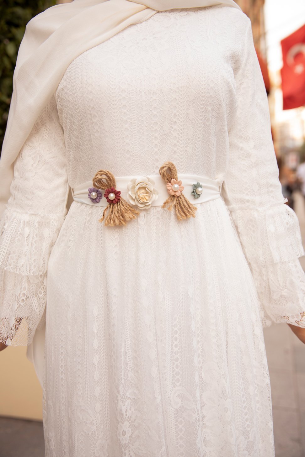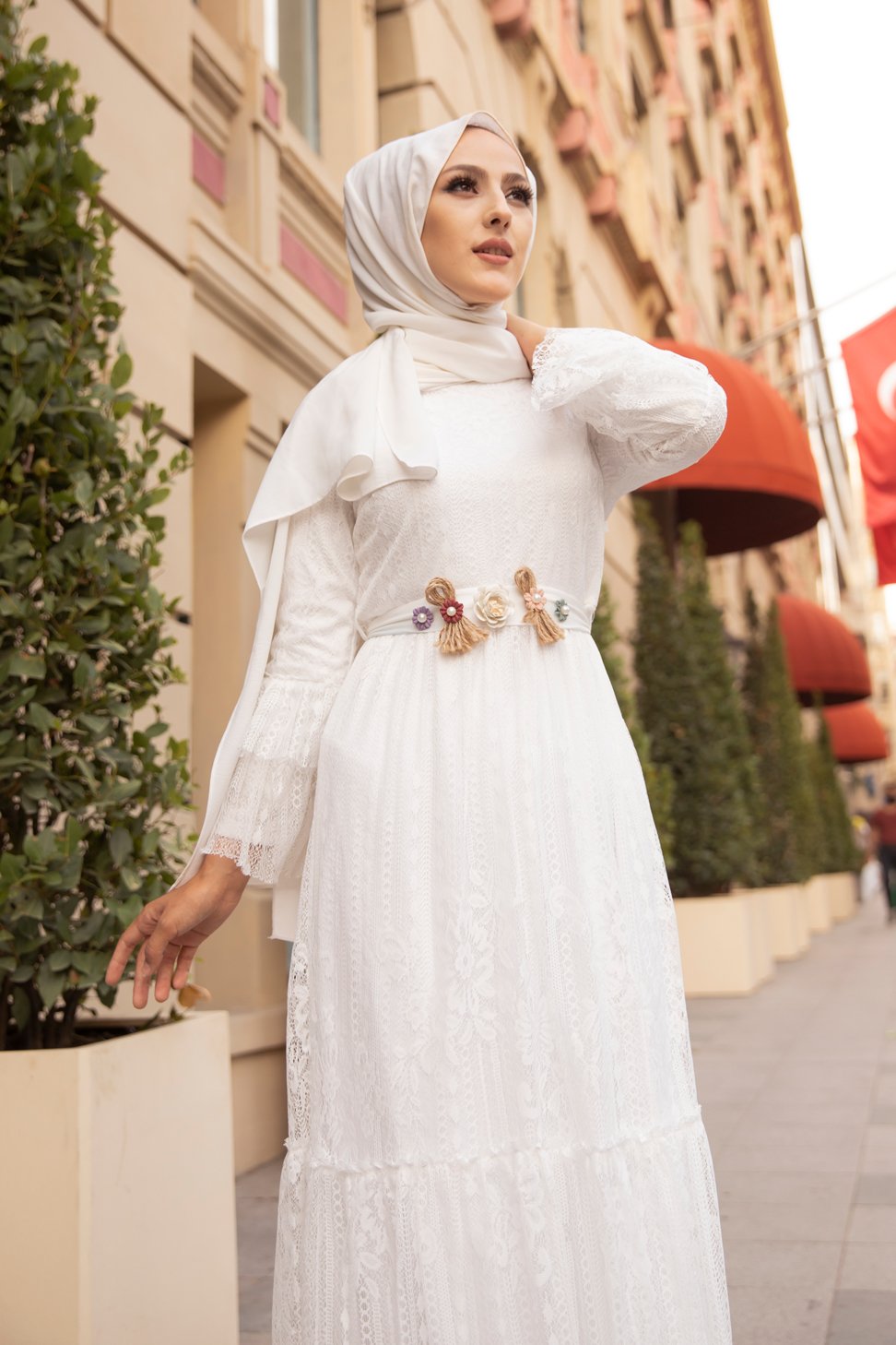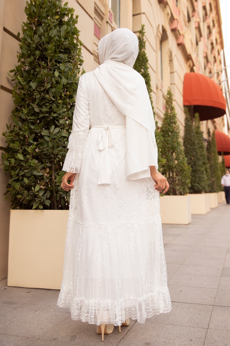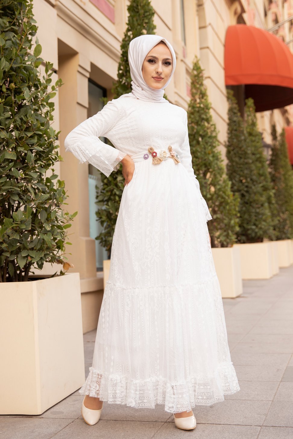 Robe de soirée ou de cérémonie élégante et classe en tulle et dentelle pour femme - Marque Amelis Paris - Couleur Blanche - REF. 33395 (49.00 €)