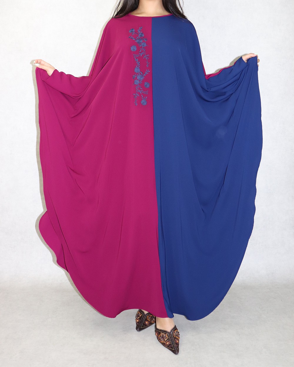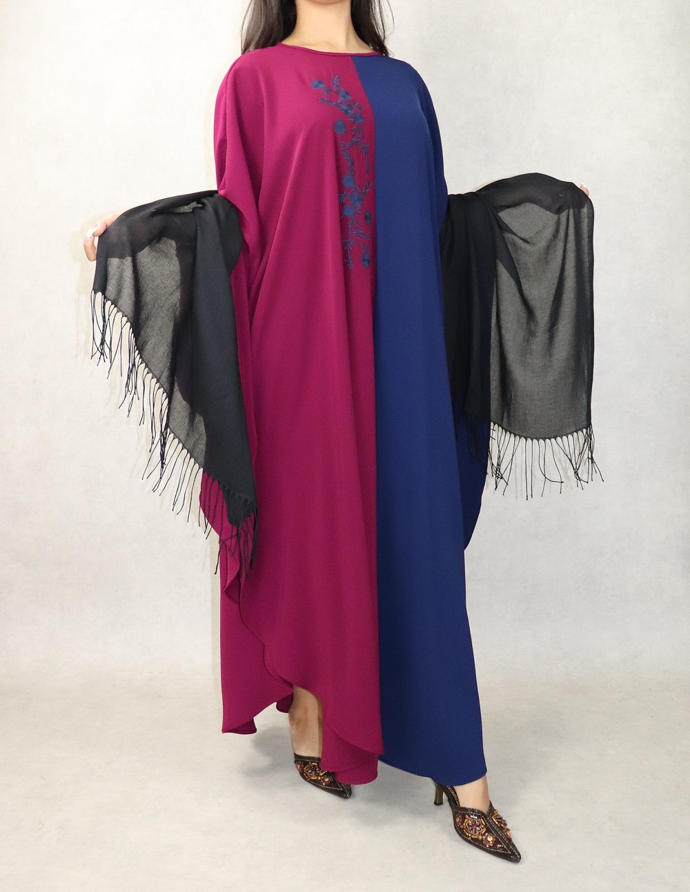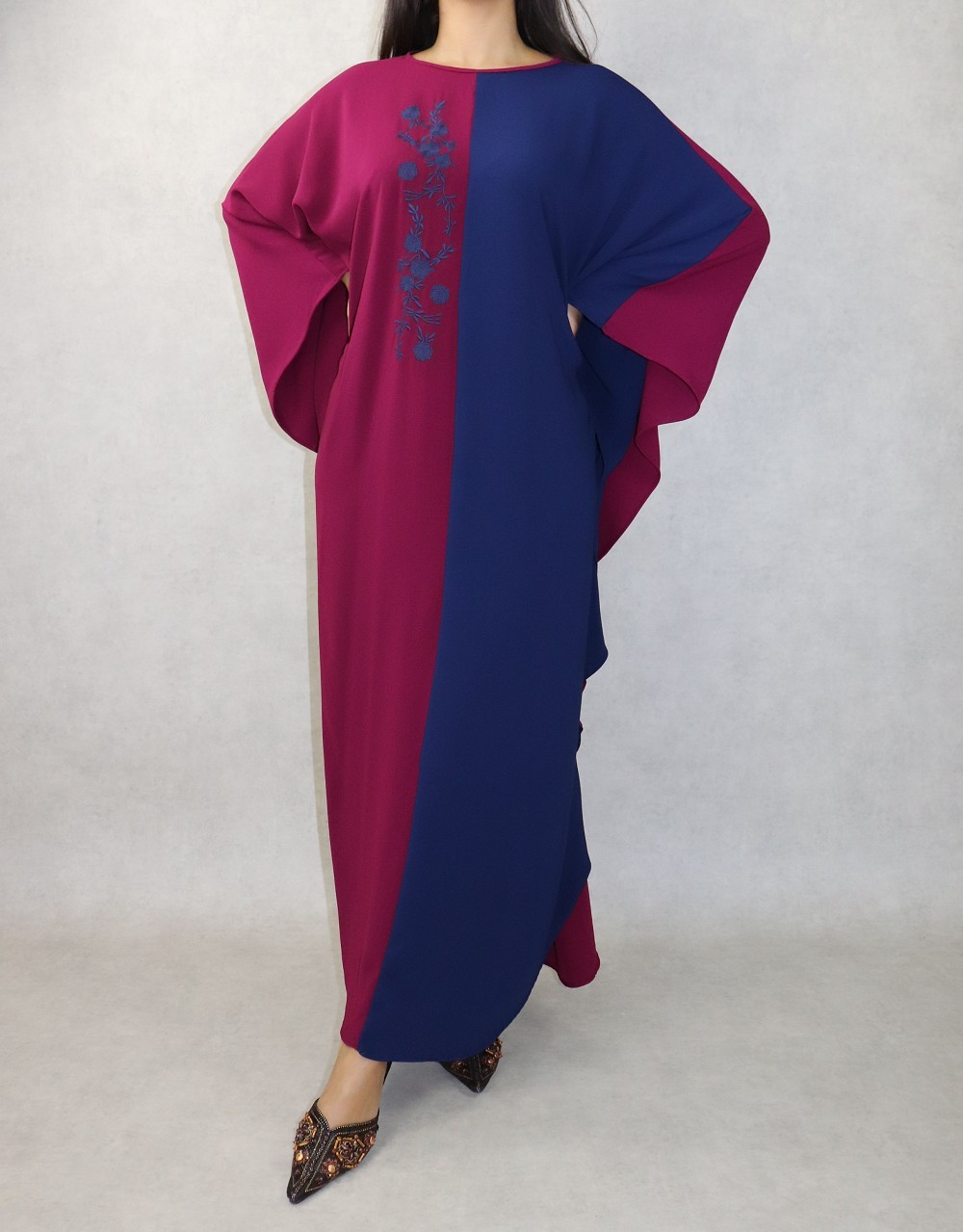 Très belle robe bi-couleur effet papillon glamour brodée. Tissu de qualité opaque et fluide, robe facile à porter, elle est un atout de charme.