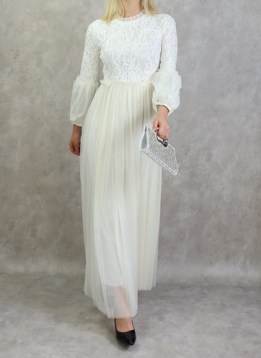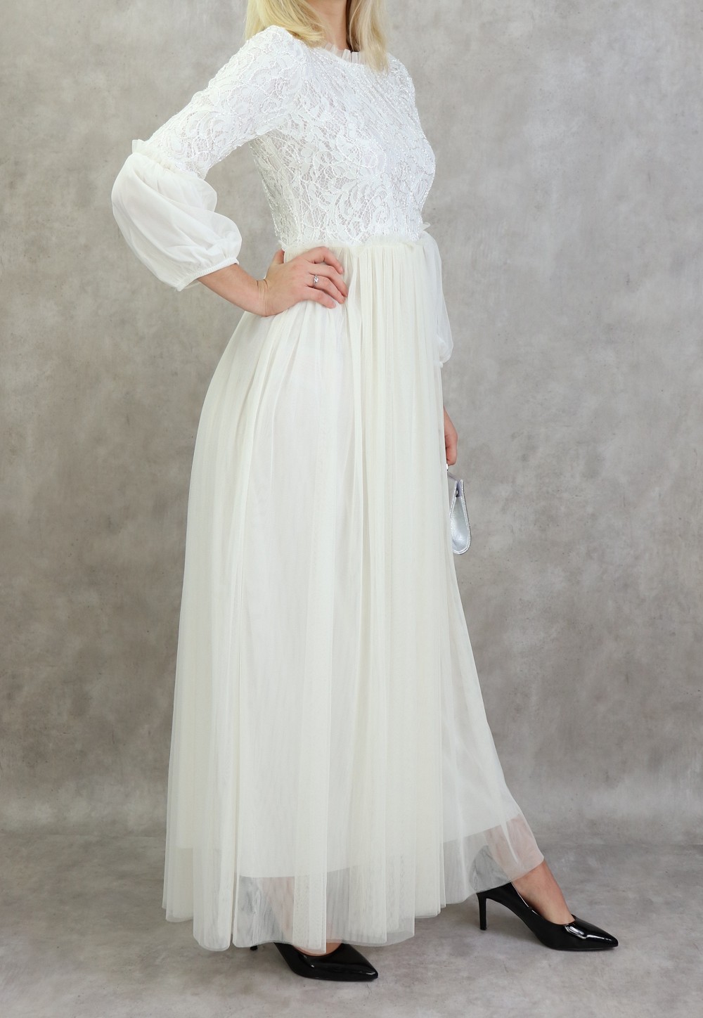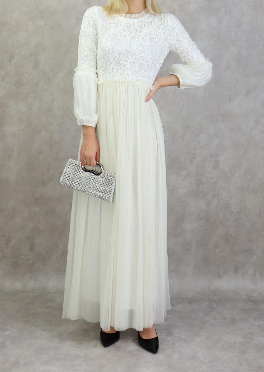 Robe de soirée en tulle et dentelle brodée longue pour femme - Couleur blanche Vetement & Accessoire