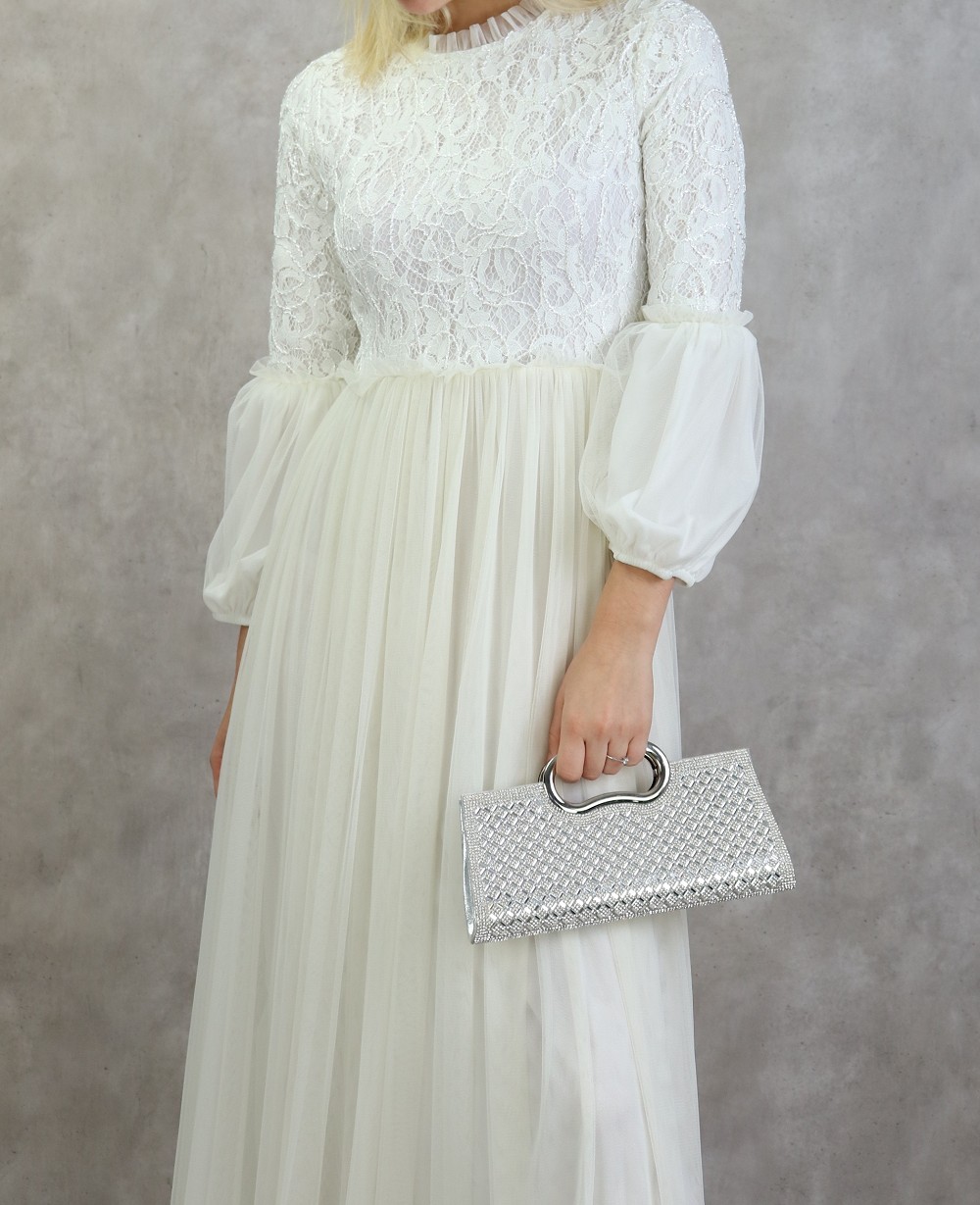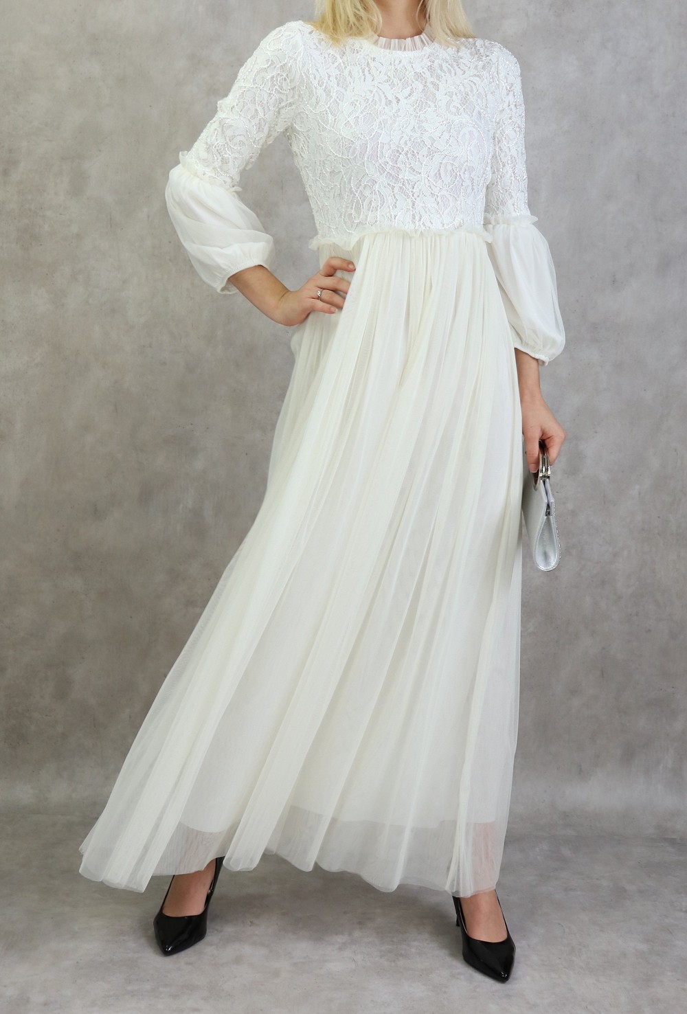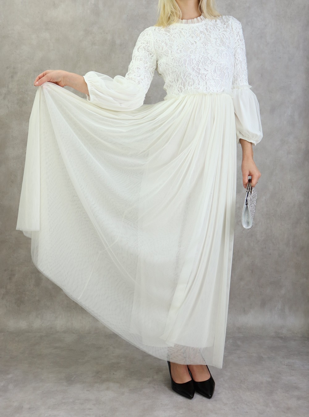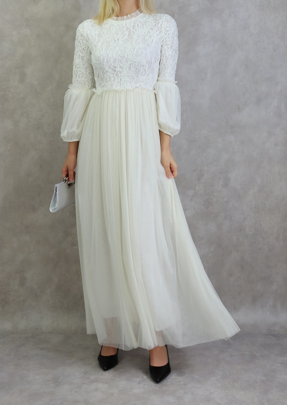 Robe de soirée en tulle et dentelle brodée longue pour femme - Couleur blanche Vetement & Accessoire
