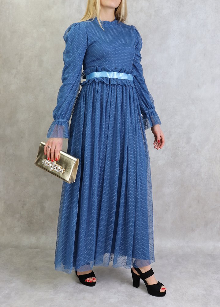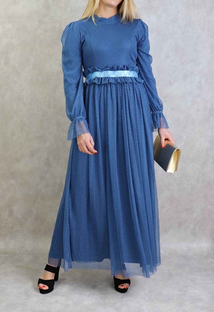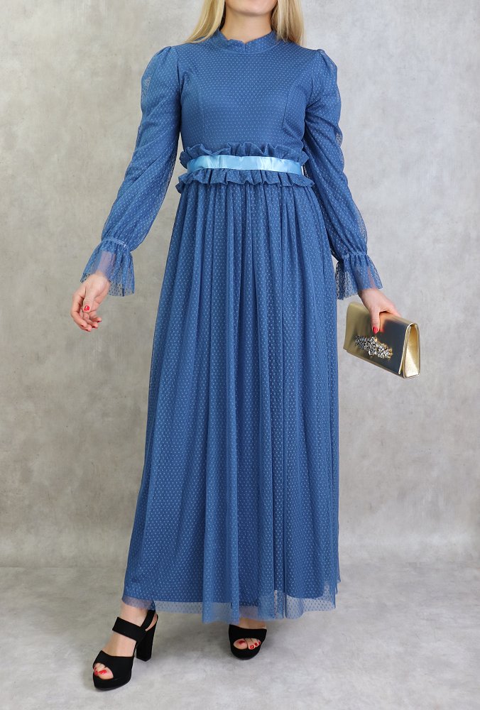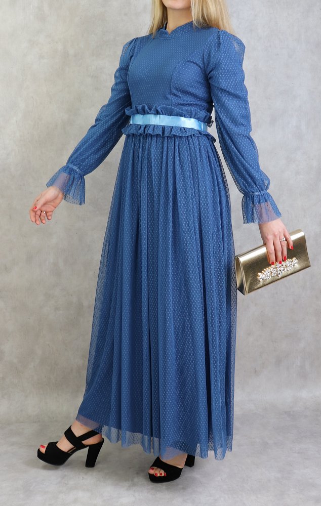 Robe de soirée en tulle pour femme - Couleur Bleu Vetement & Accessoire