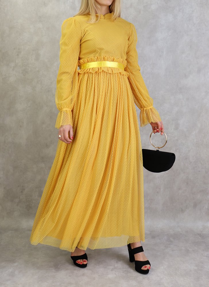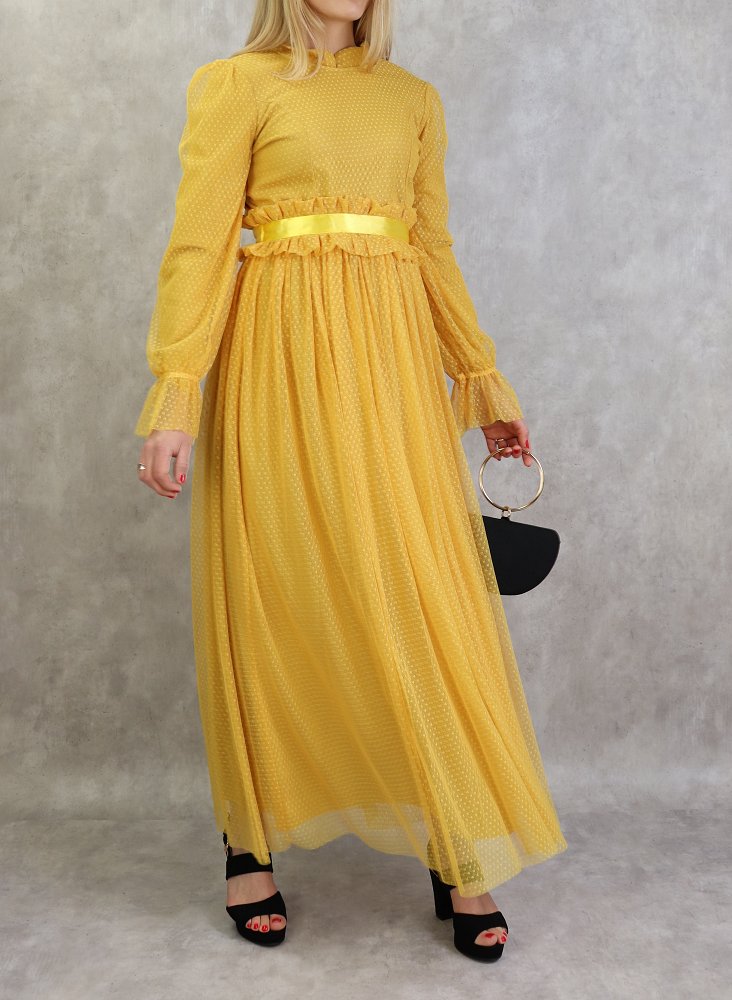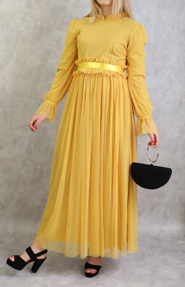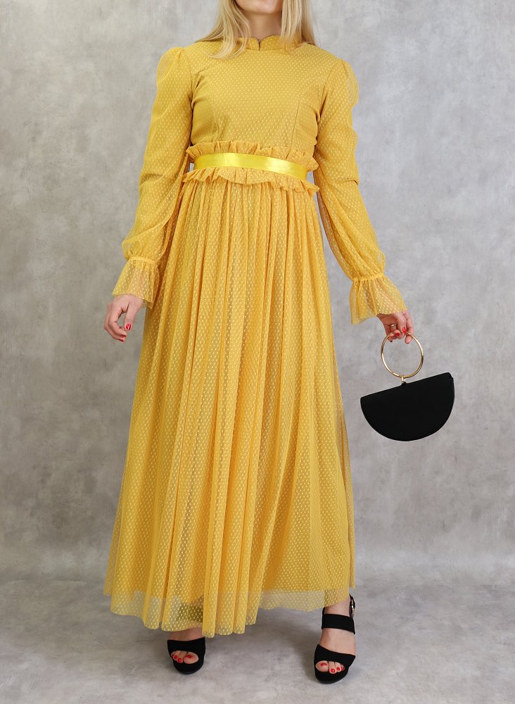 Robe de soirée en tulle pour femme - Couleur Jaune Vetement & Accessoire