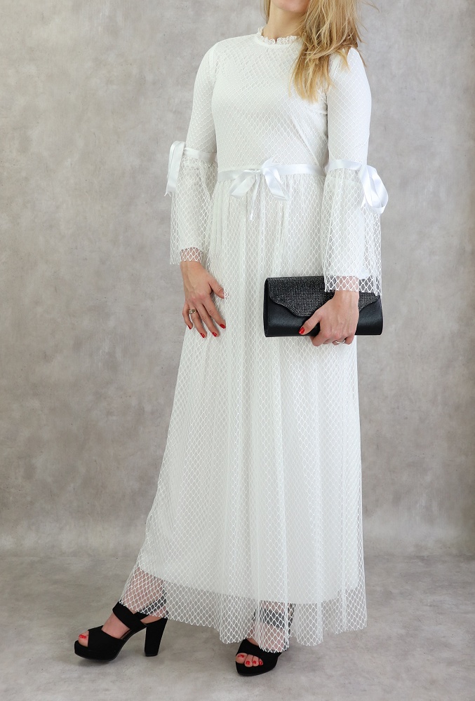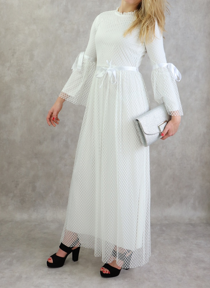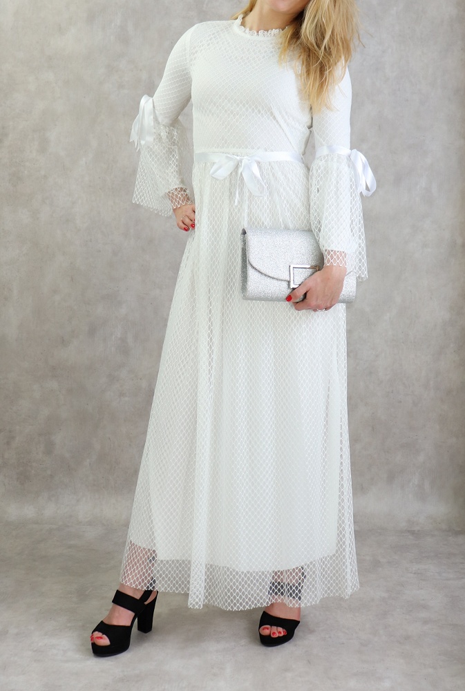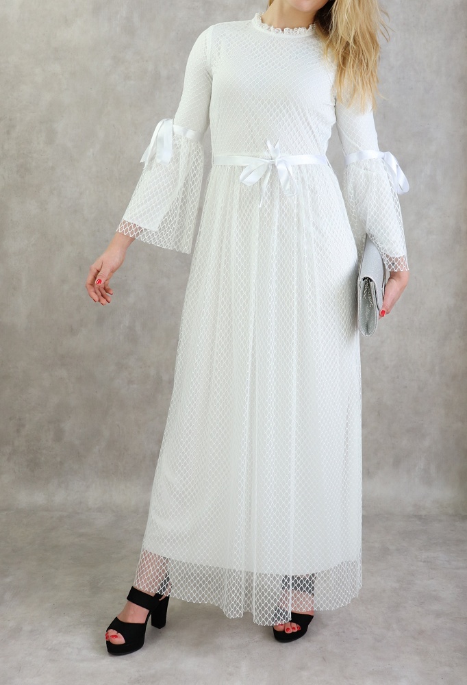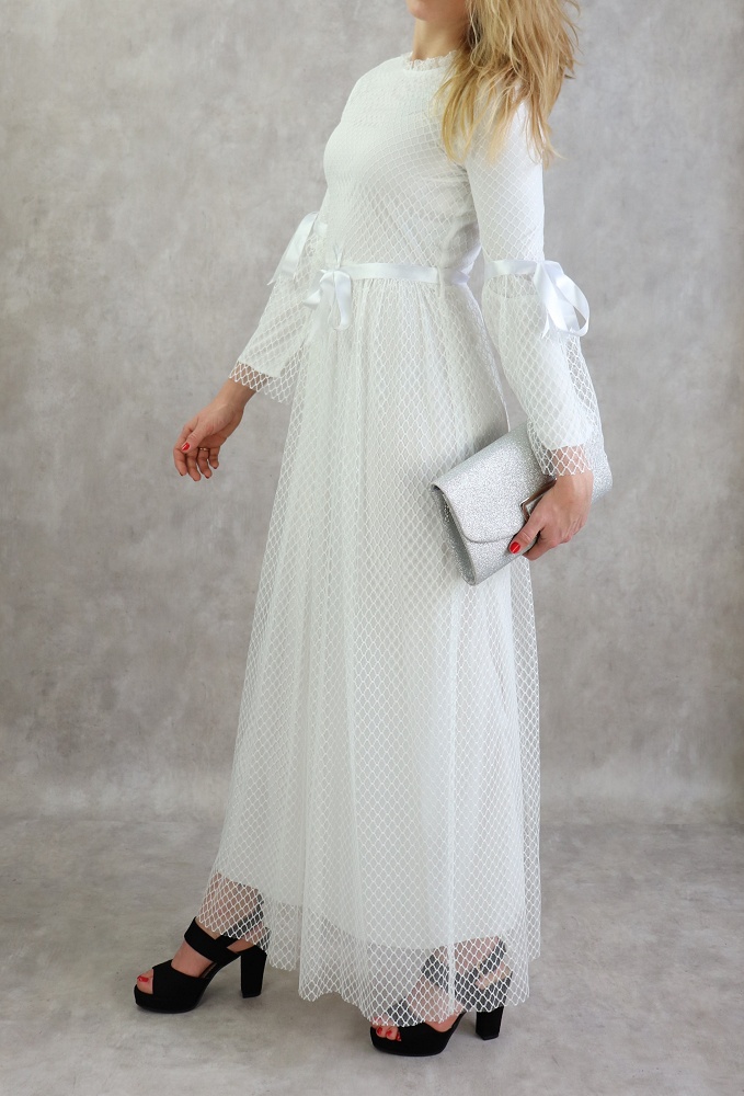 Robe de soirée longue à dentelle (en tulle) de couleur blanche Vetement & Accessoire