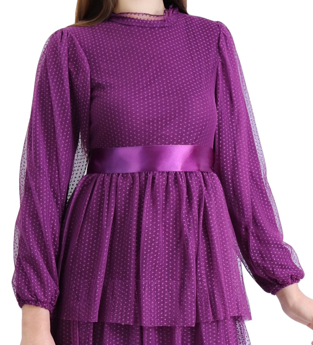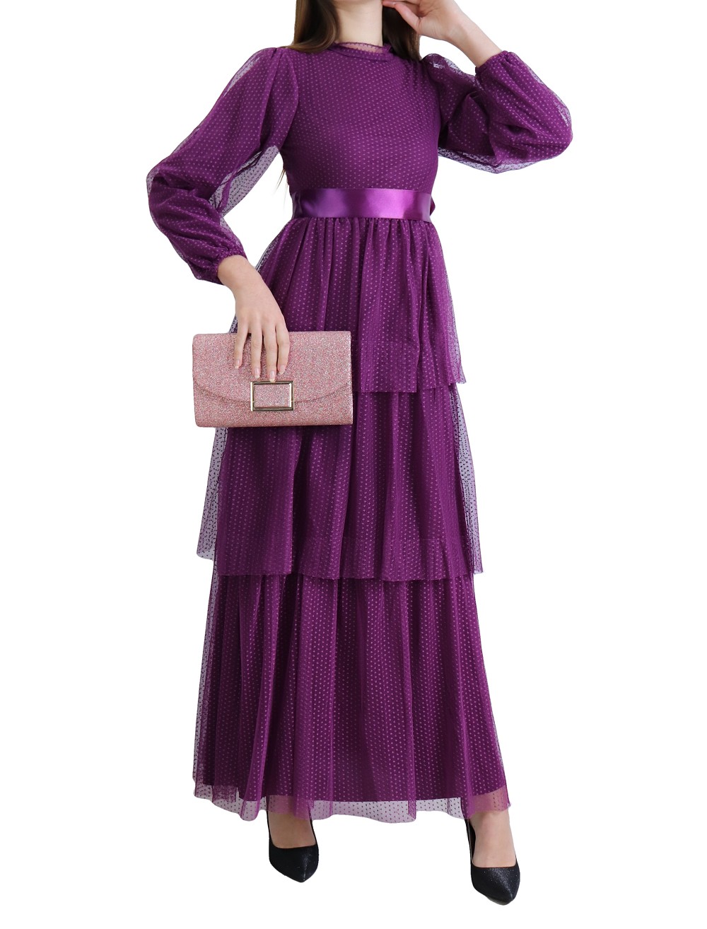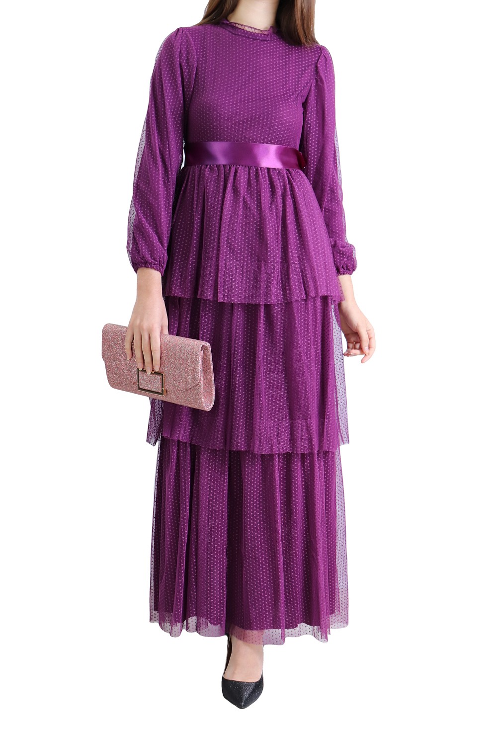 Robe de soirée longue en tulle à volants pour femme - Couleur Violet Vetement & Accessoire