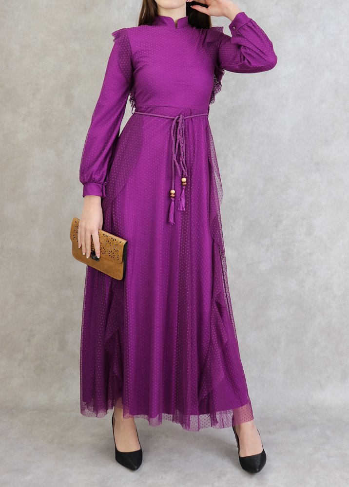 Robe de soirée longue en tulle habillée pour femme - Couleur Mauve Vetement & Accessoire