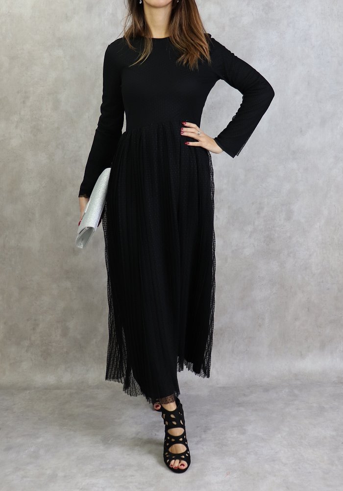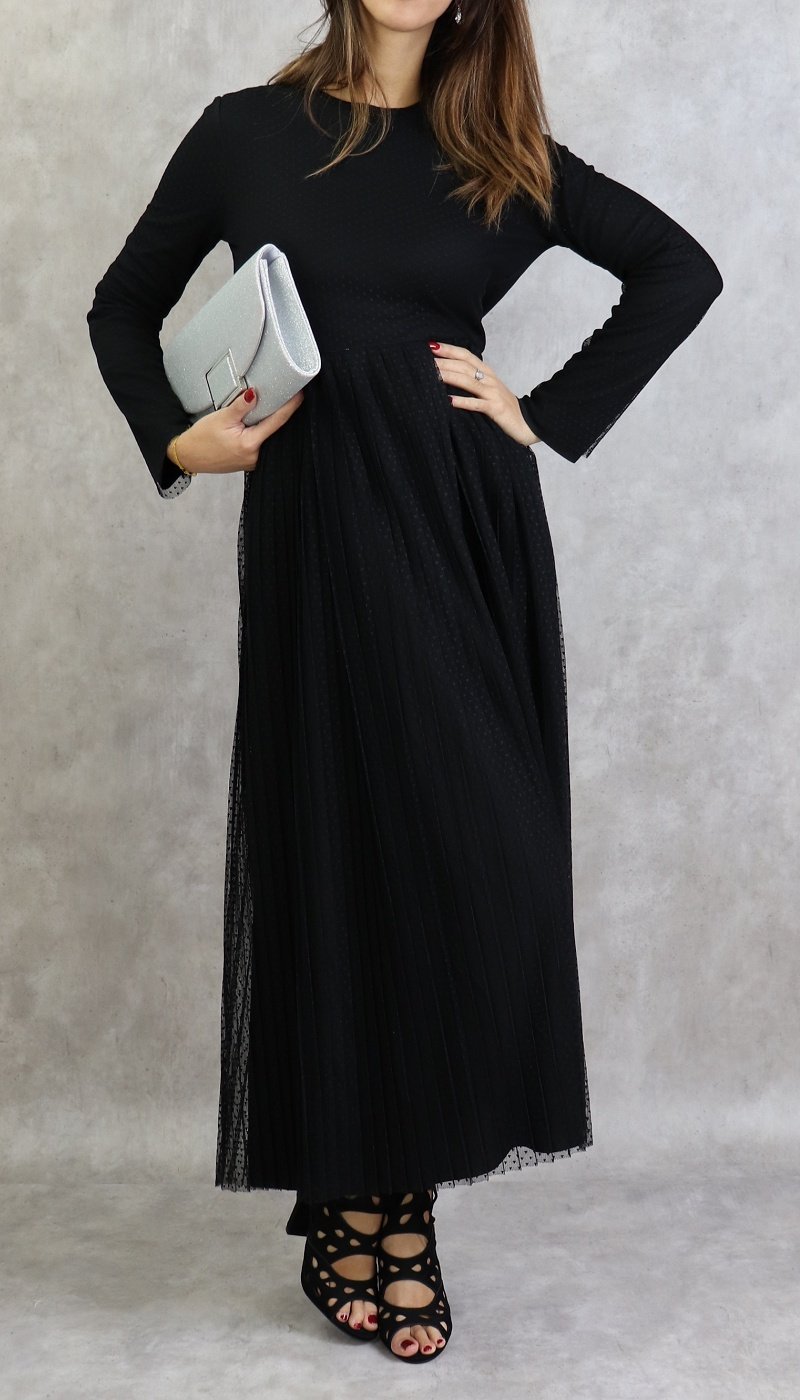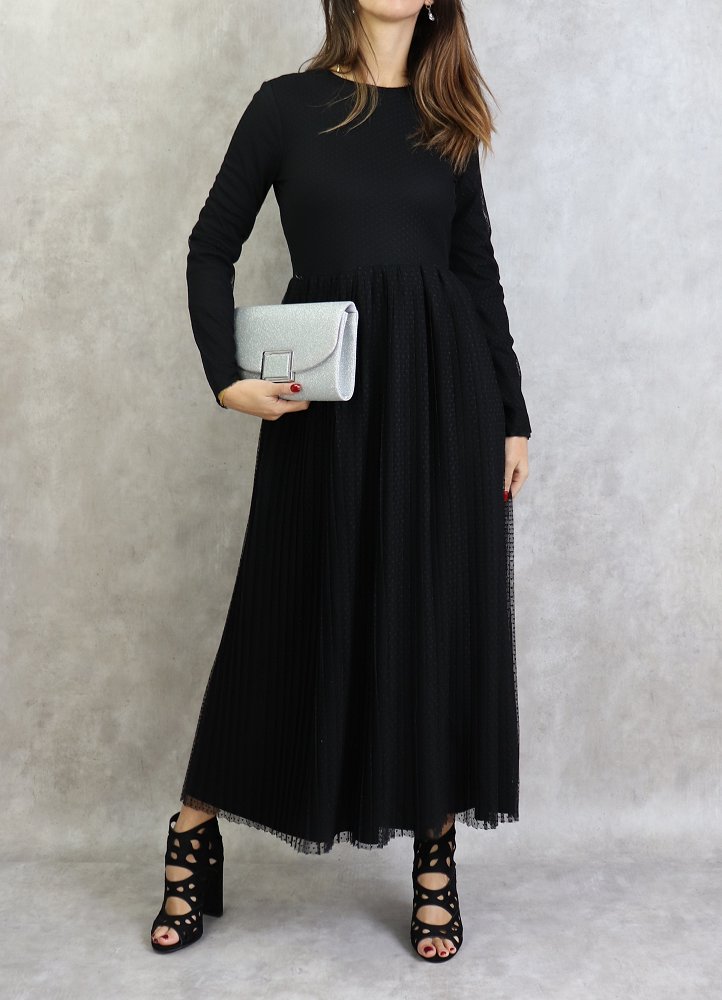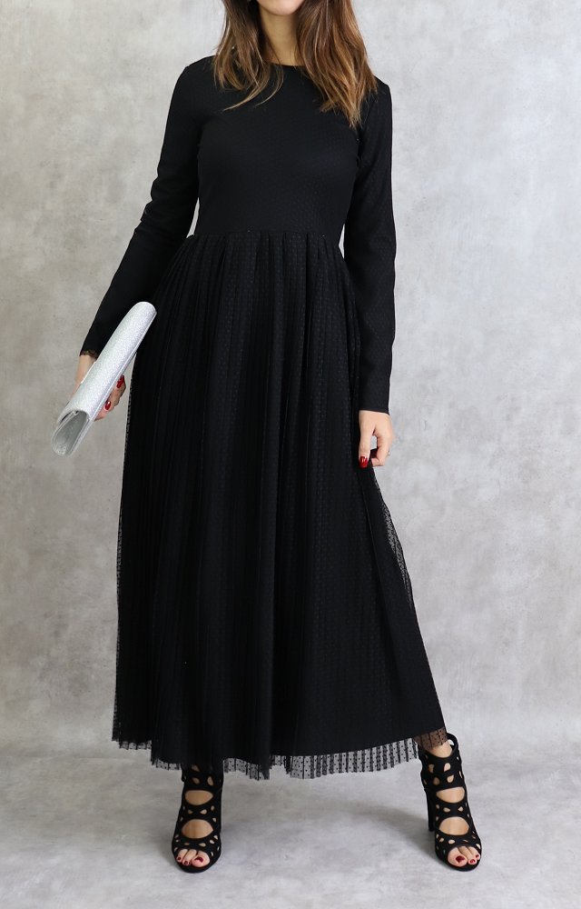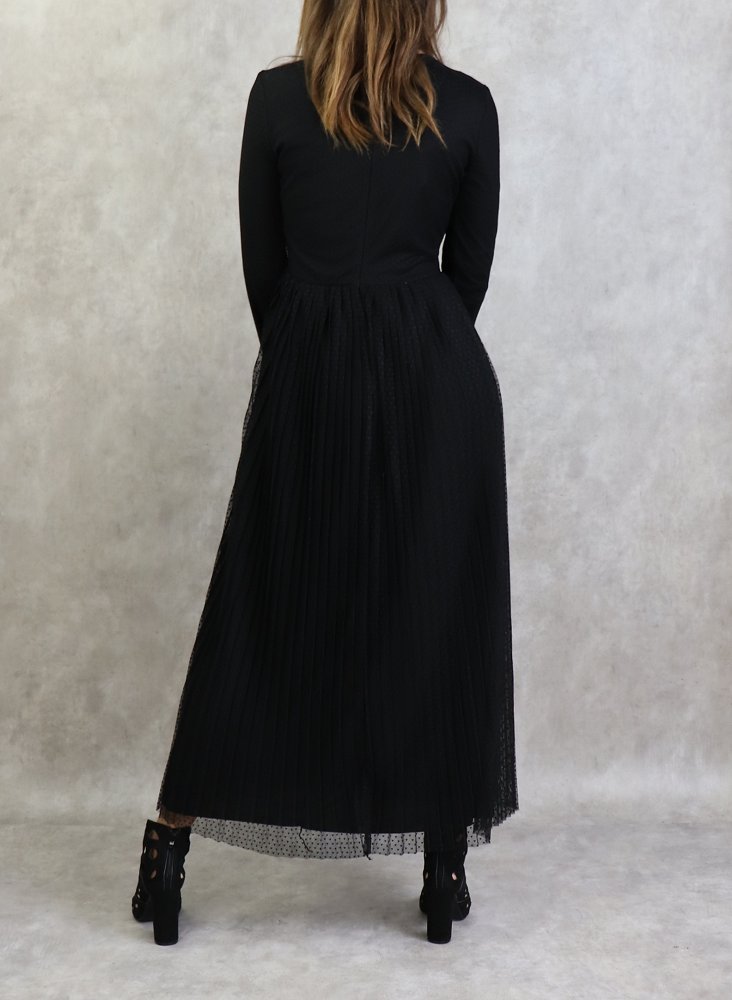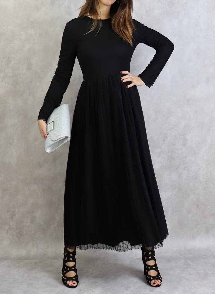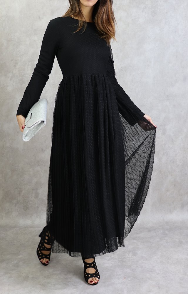 Robe de soirée longue plissée en tulle pour femme - Couleur noire Vetement & Accessoire