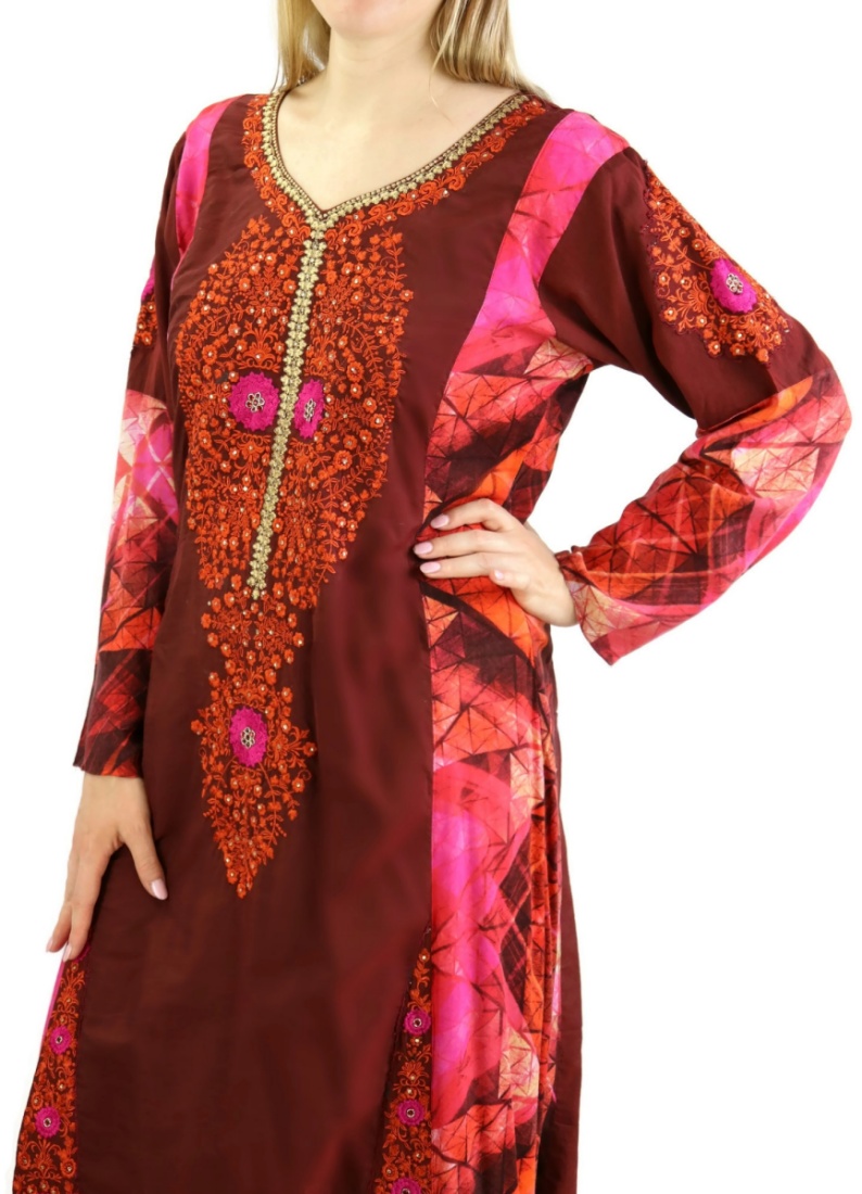 Robe de soiree longue pour femme avec broderies style oriental