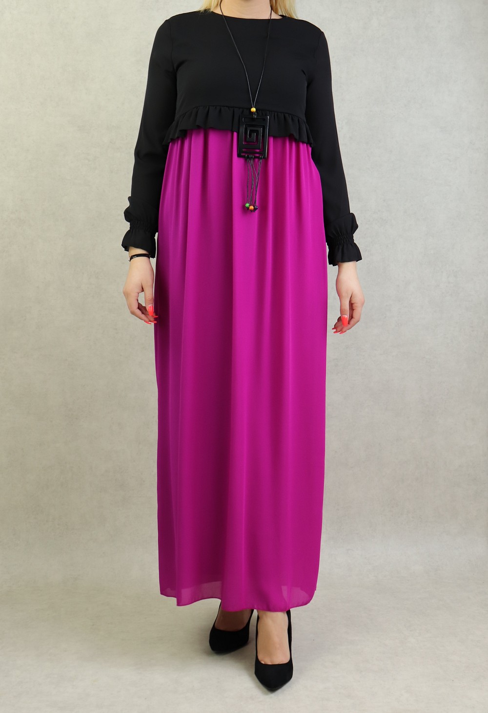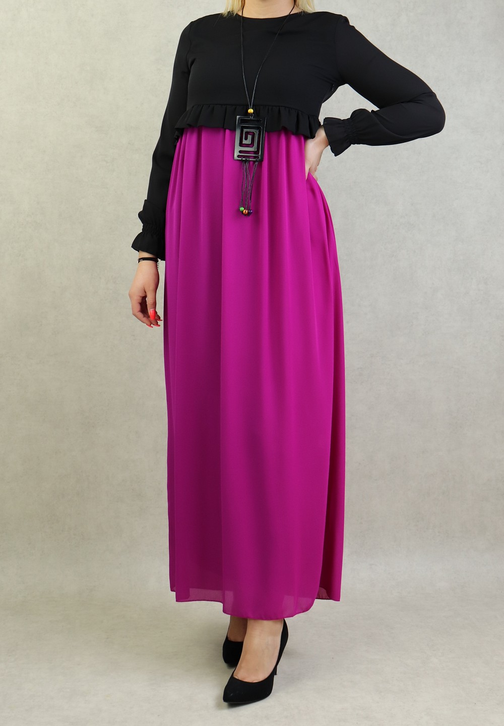 Robe de soirée maxi-longue bicolore assortie d'un collier pour femme - Couleur Noir et Violet Vetement & Accessoire