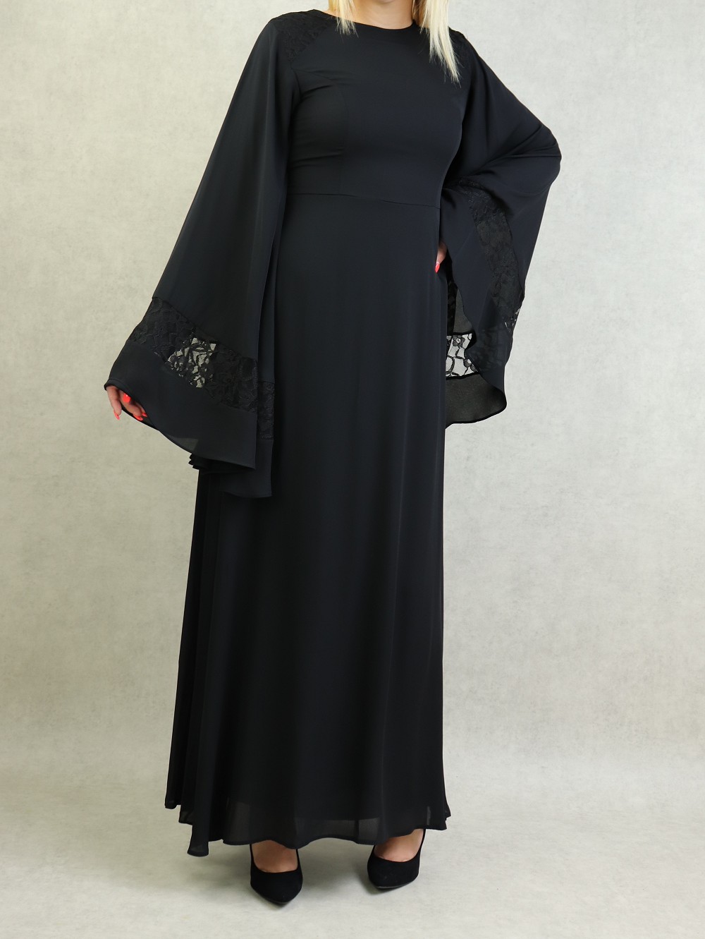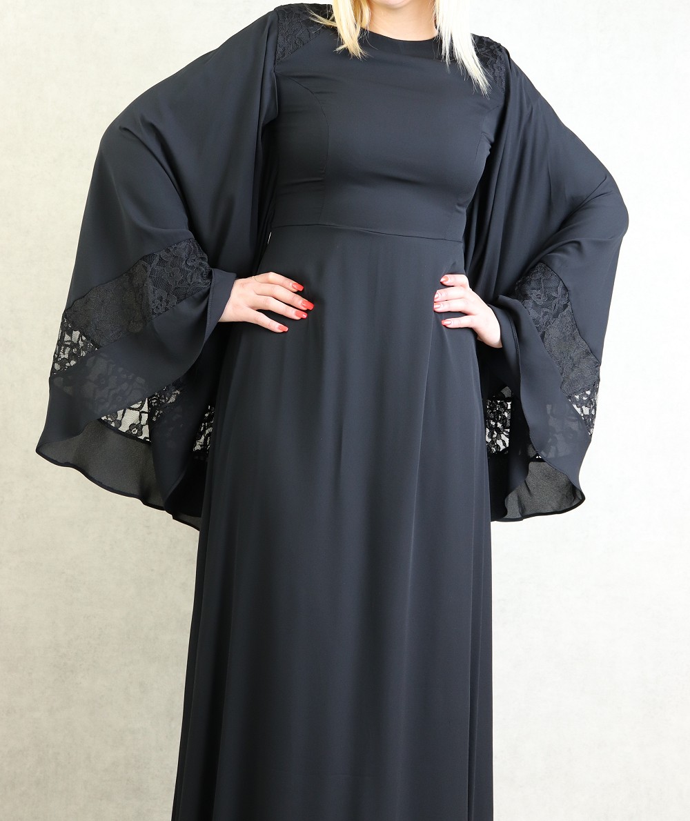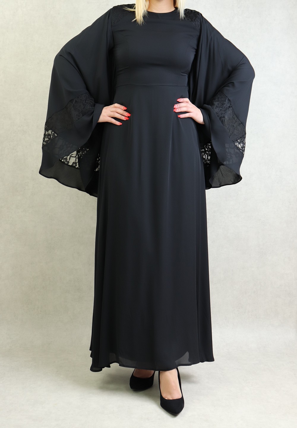 Robe de soirée maxi-longue élégante et raffinée manches kimono pour femme - Couleur Noir Vetement & Accessoire