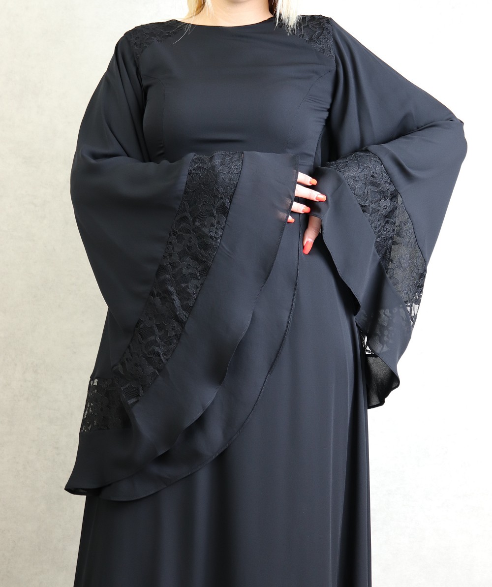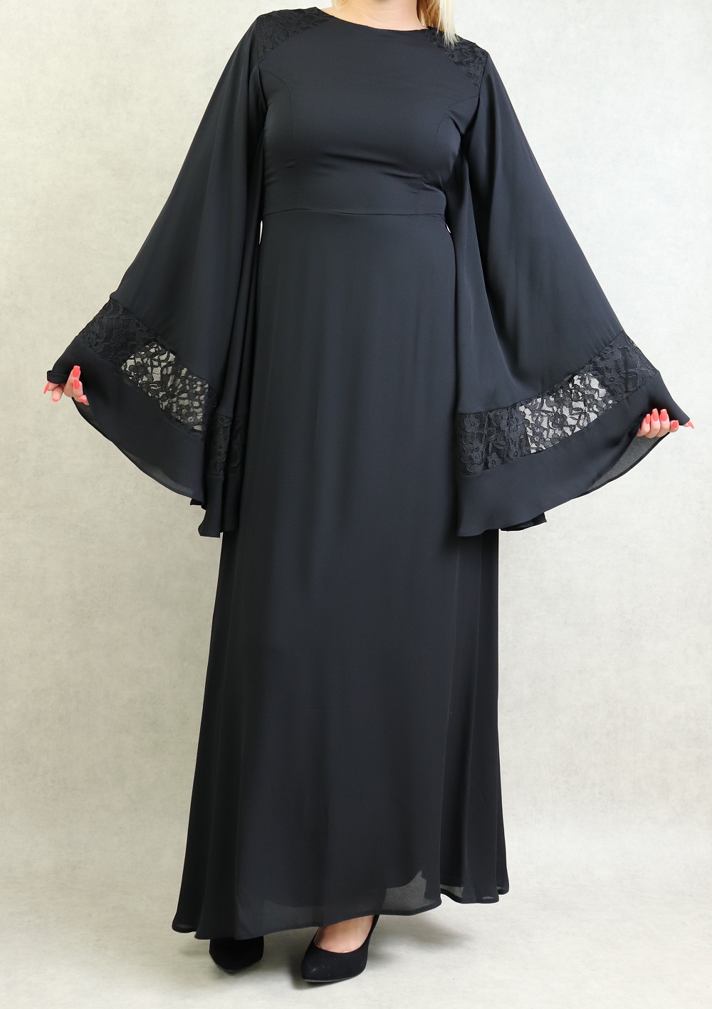 Robe Abaya Dubaï noire de qualité avec broderie et strass - REF. 38187 (39.90 €)