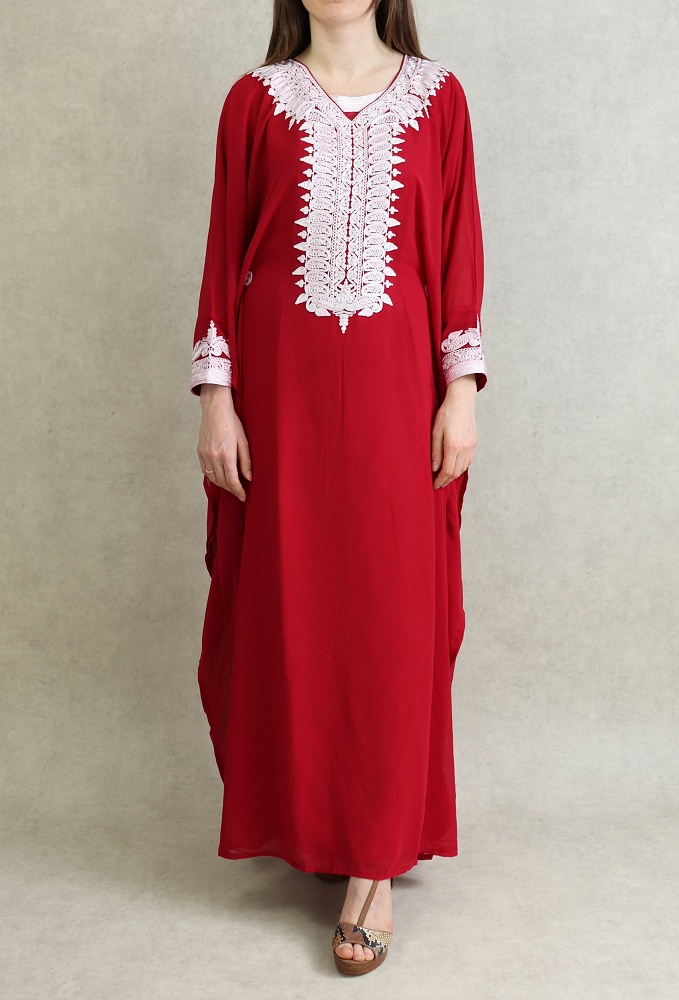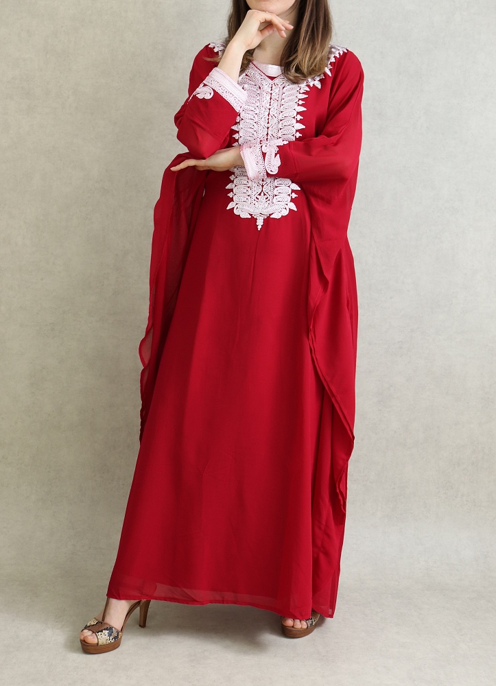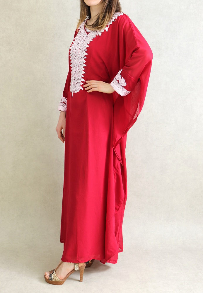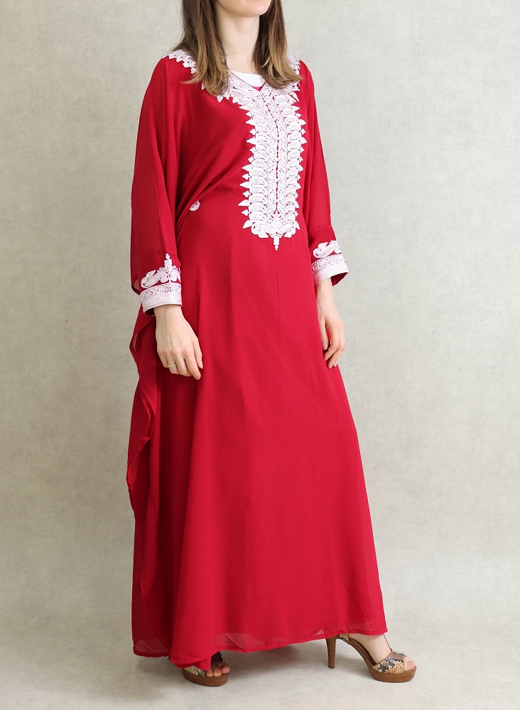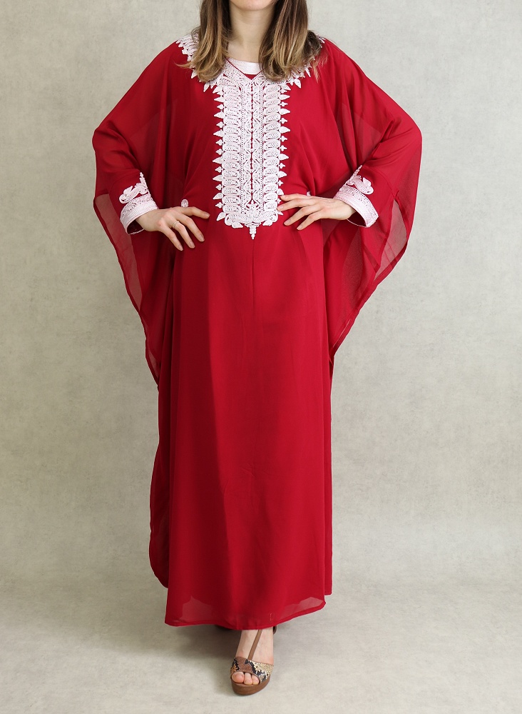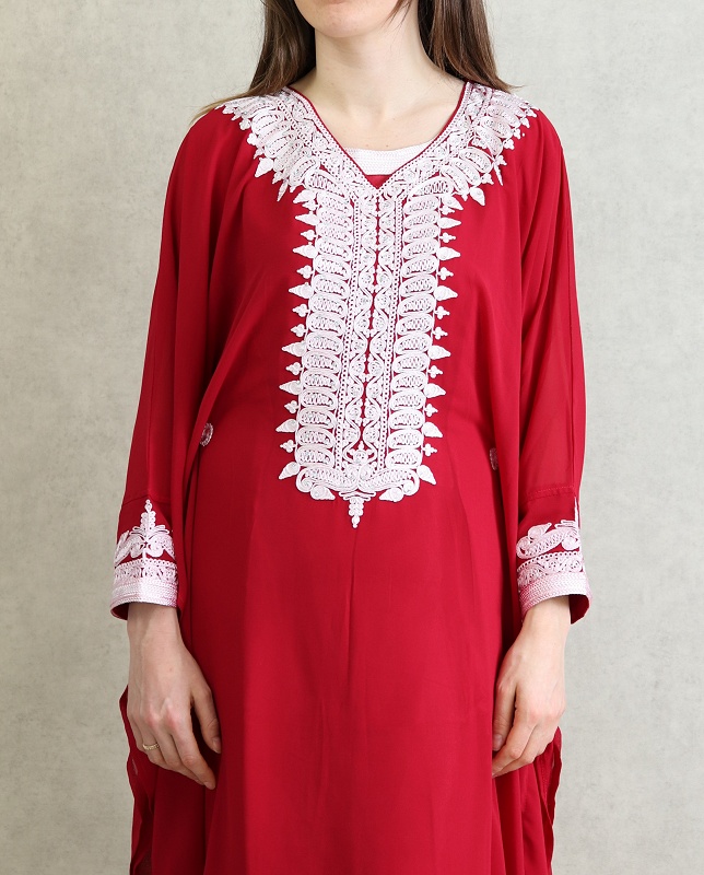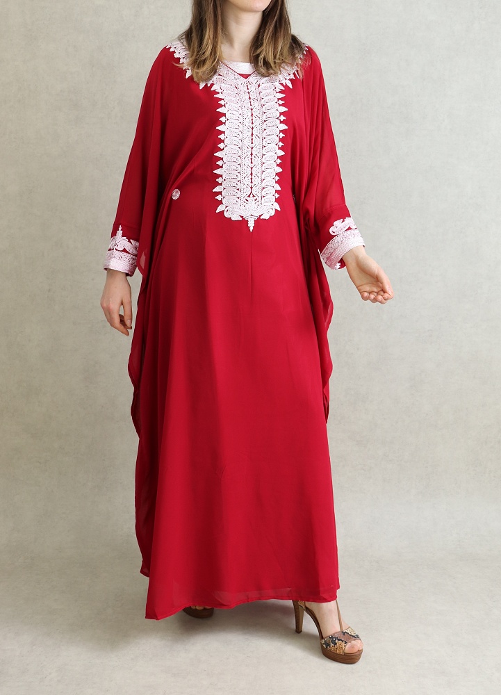 Robe style algérien entièrement brodée manches courtes pour femme - Couleur Rouge - REF. 32857 (32.00 €)
