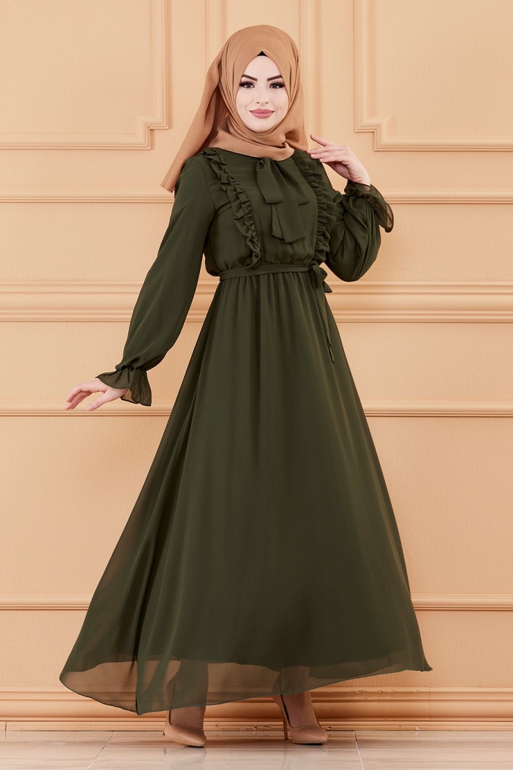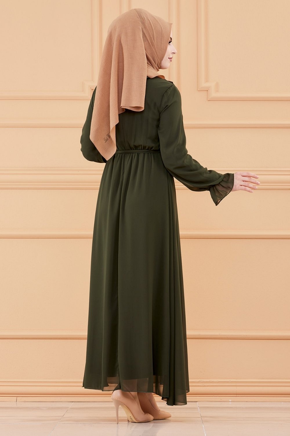 Robe de soiree pour femme (Tenue style habille pour hijab) - Couleur kaki