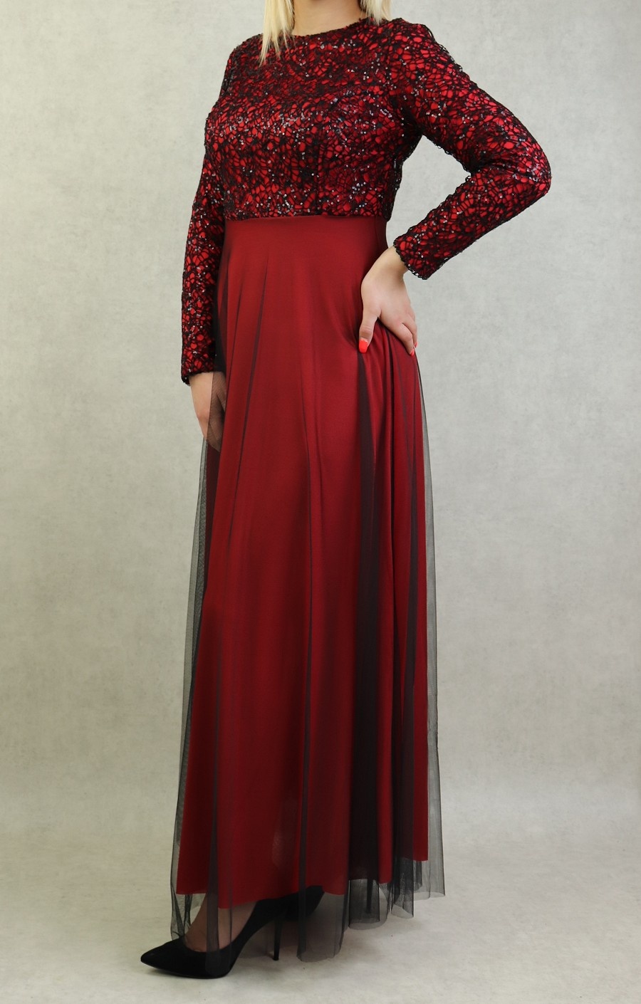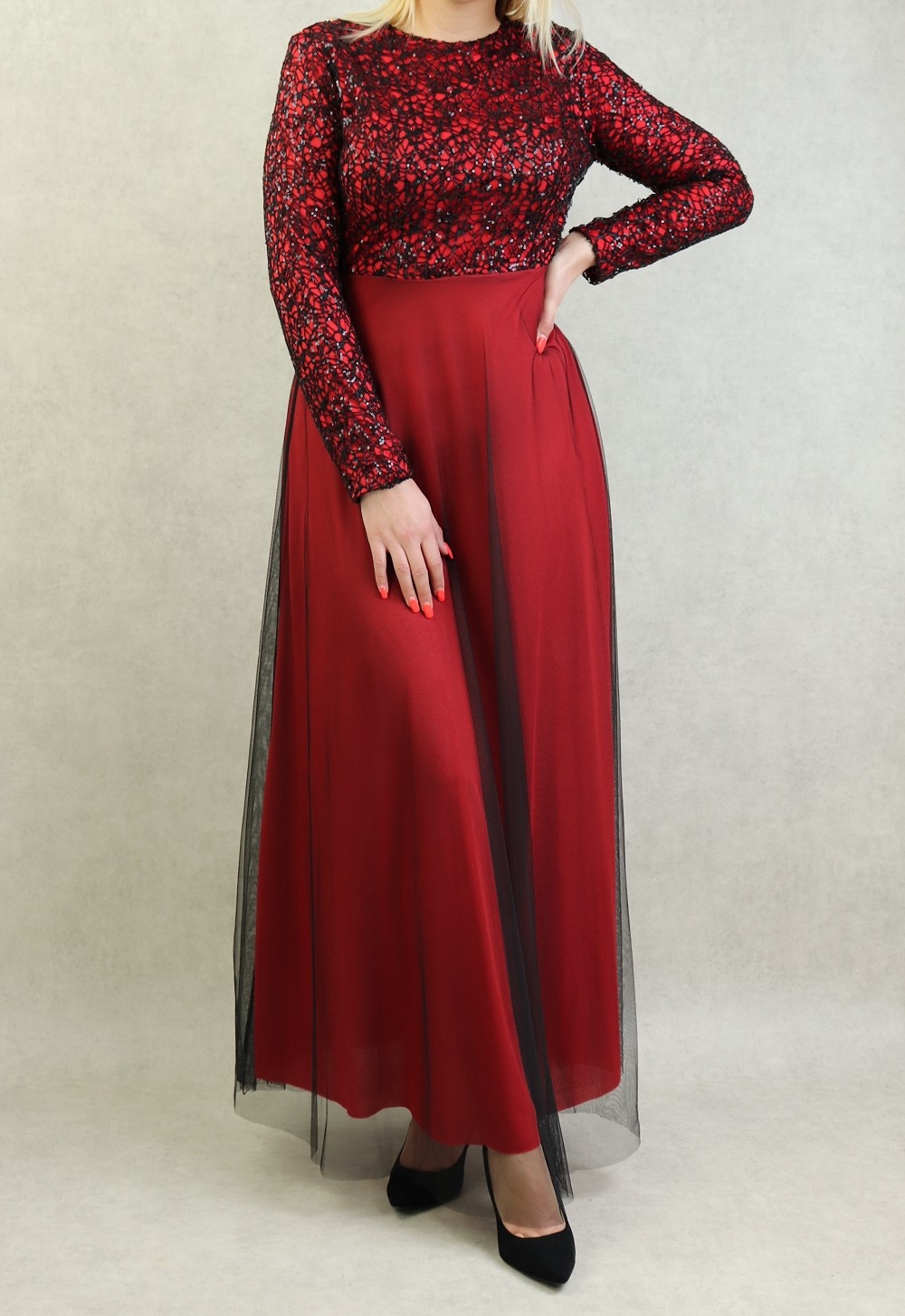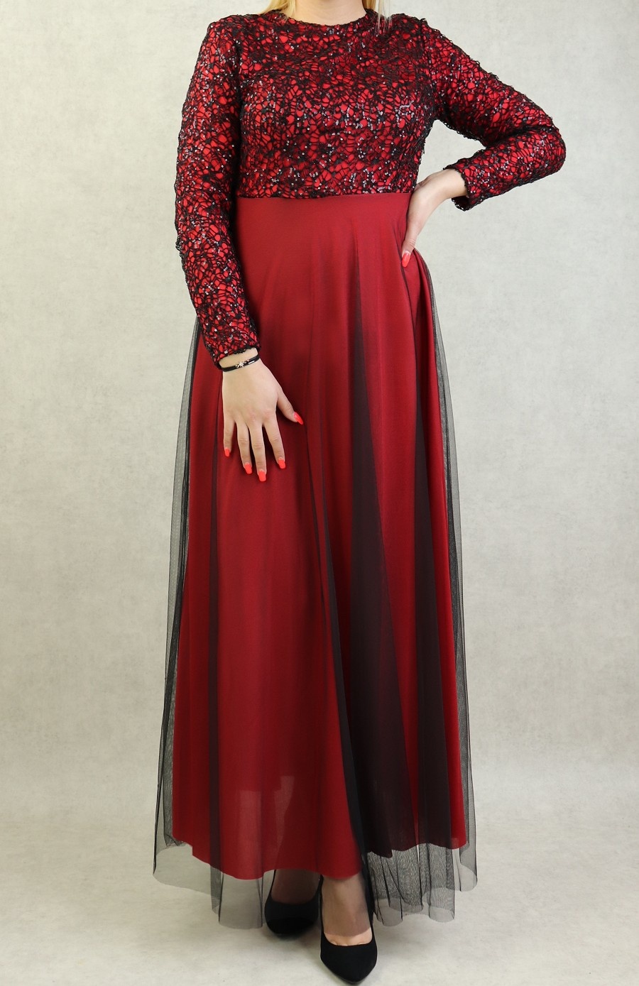 Robe de soirée tulle strass et broderies pour femme - Couleur rouge Vetement & Accessoire