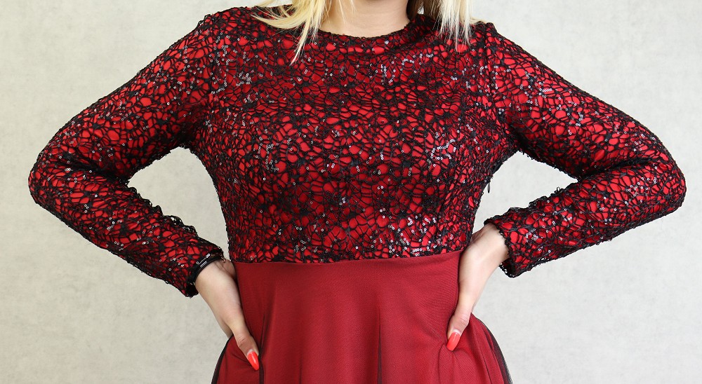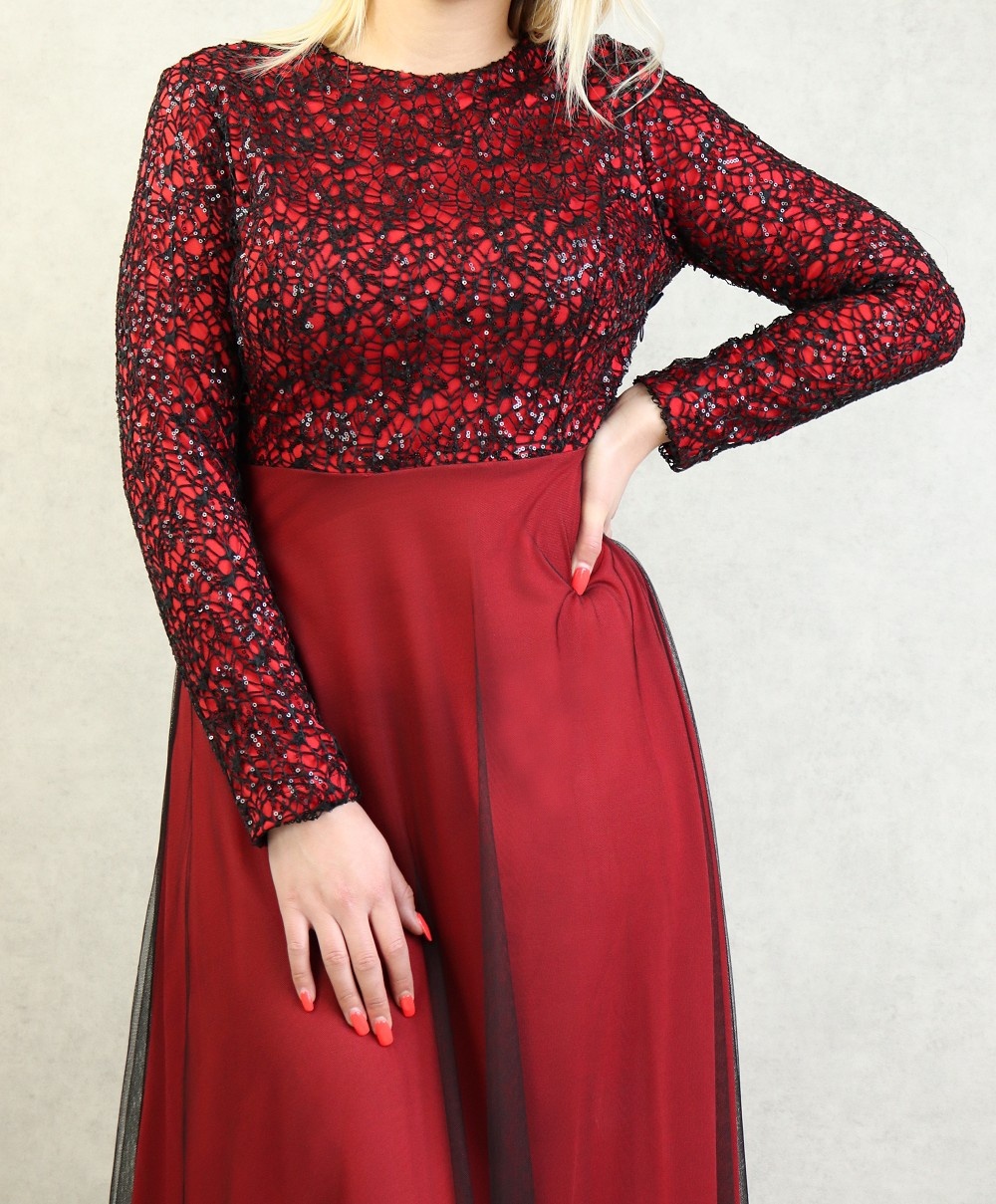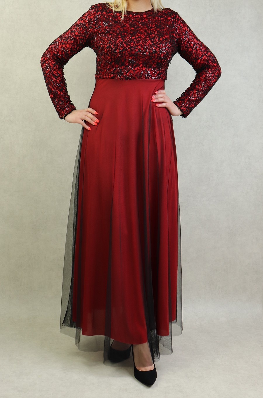 Robe de soirée tulle strass et broderies pour femme - Couleur rouge Vetement & Accessoire