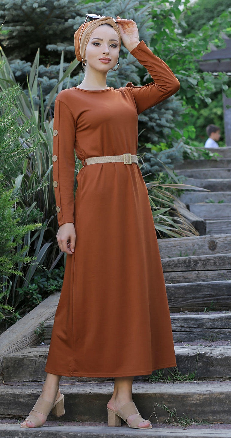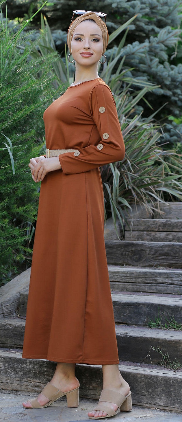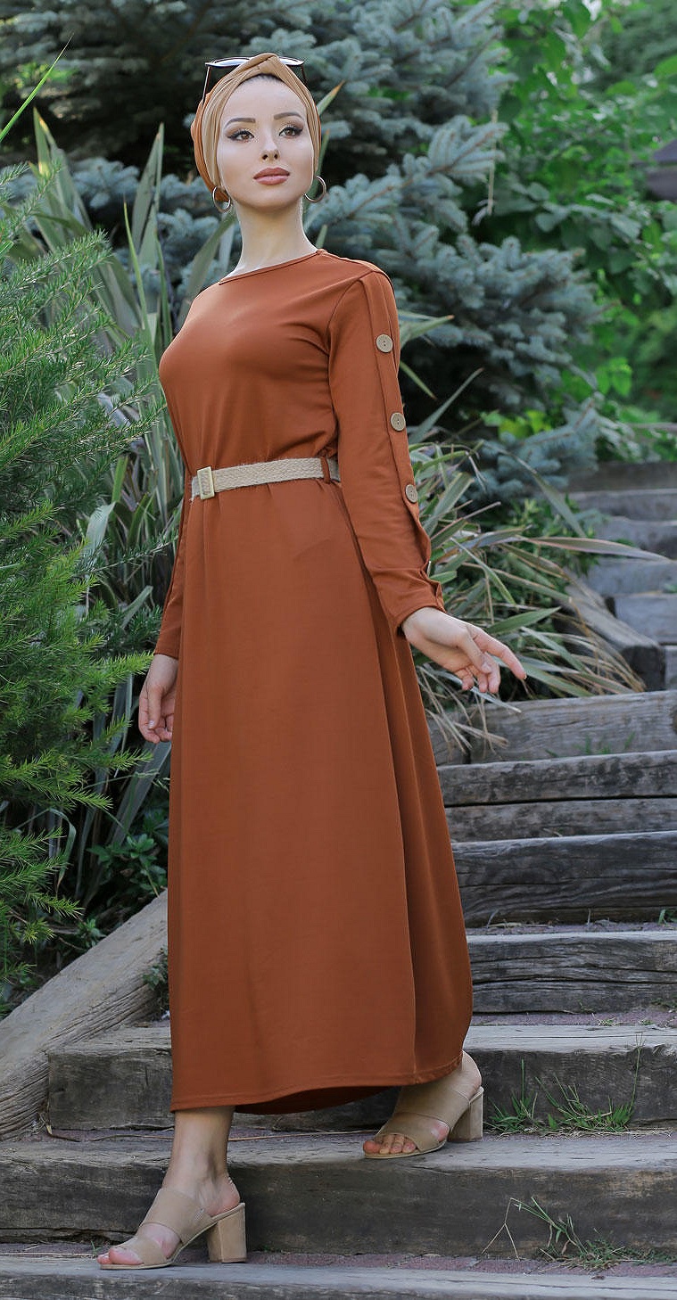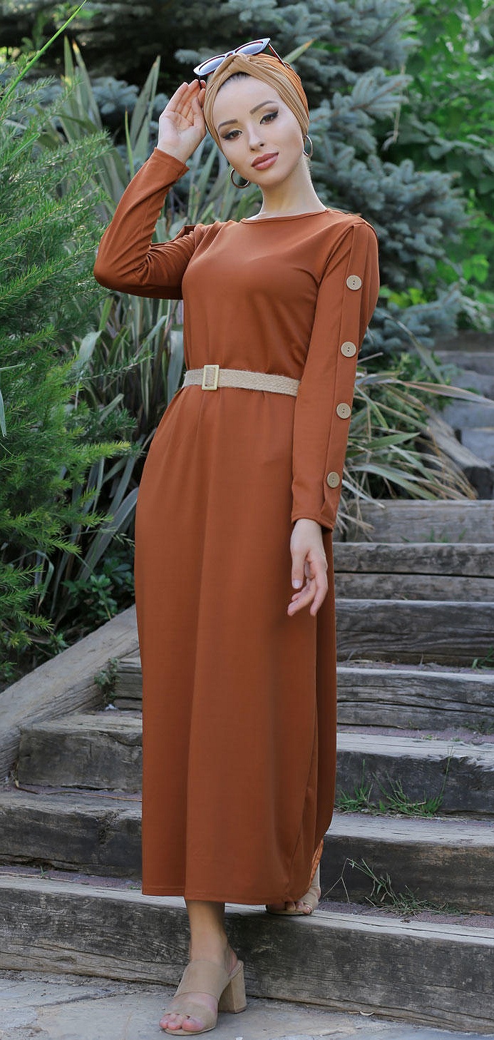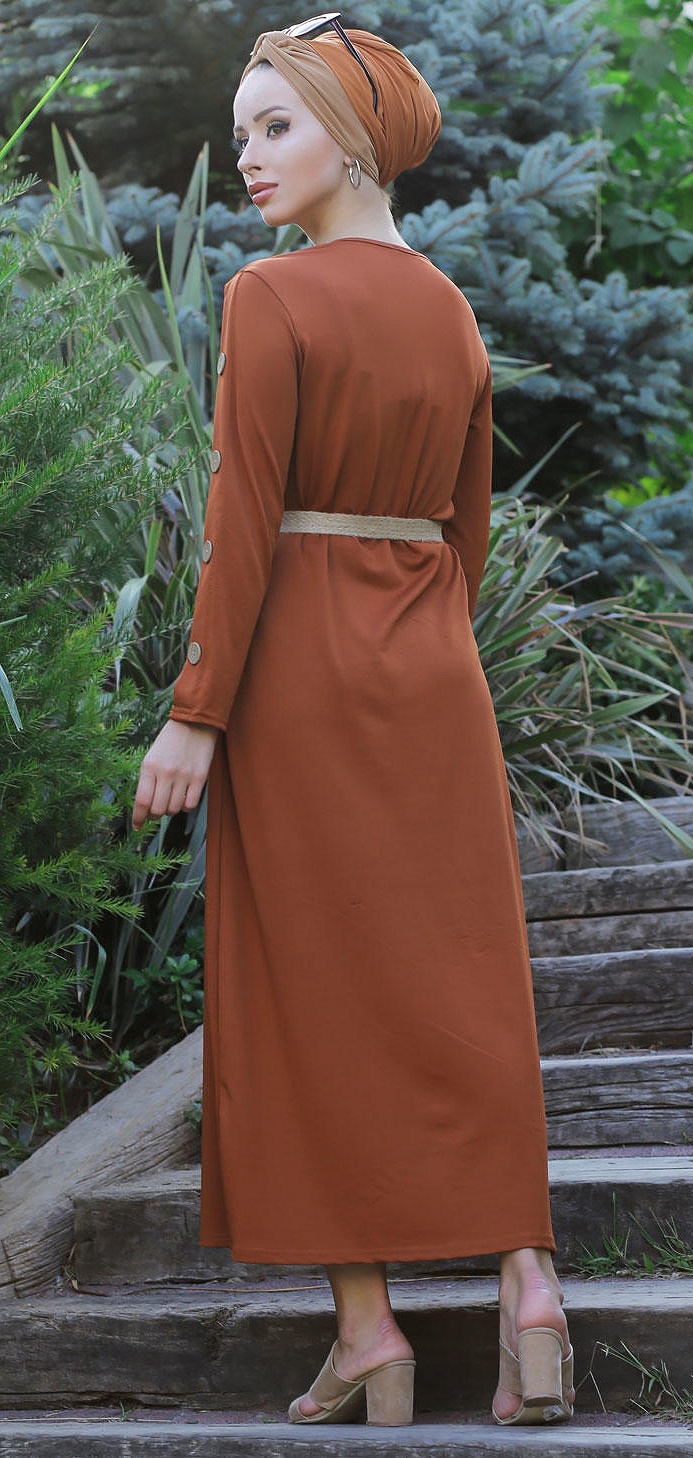Robe longue en crêpe (Robes pour femmes voilées - Nouveautés) - Couleur brique - REF. 35934 (24.90 €)