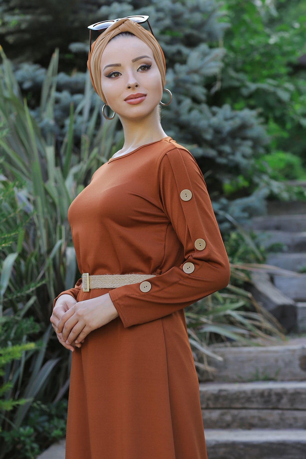 Robe de ville longue decoration boutons pour femme - Couleur rouille