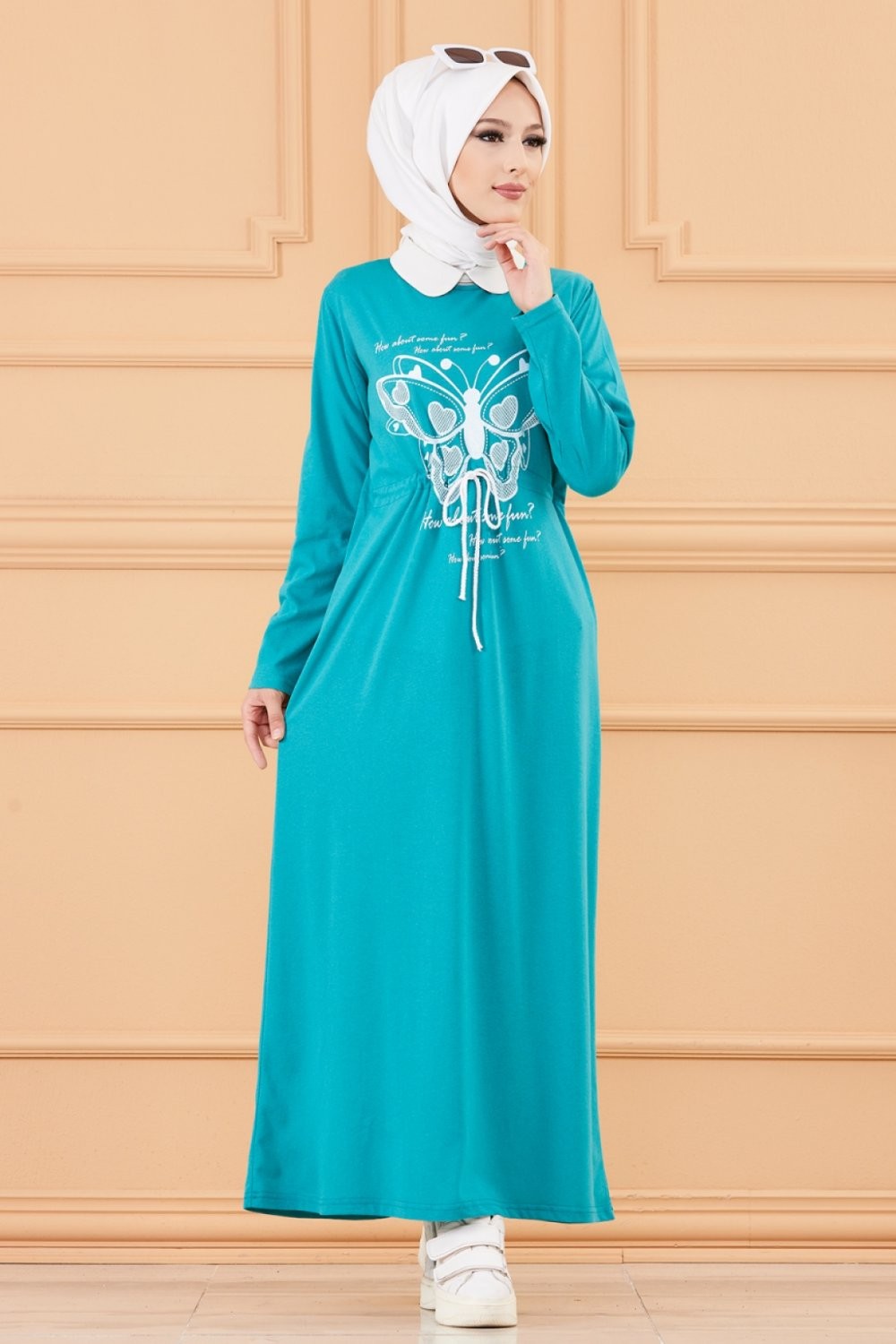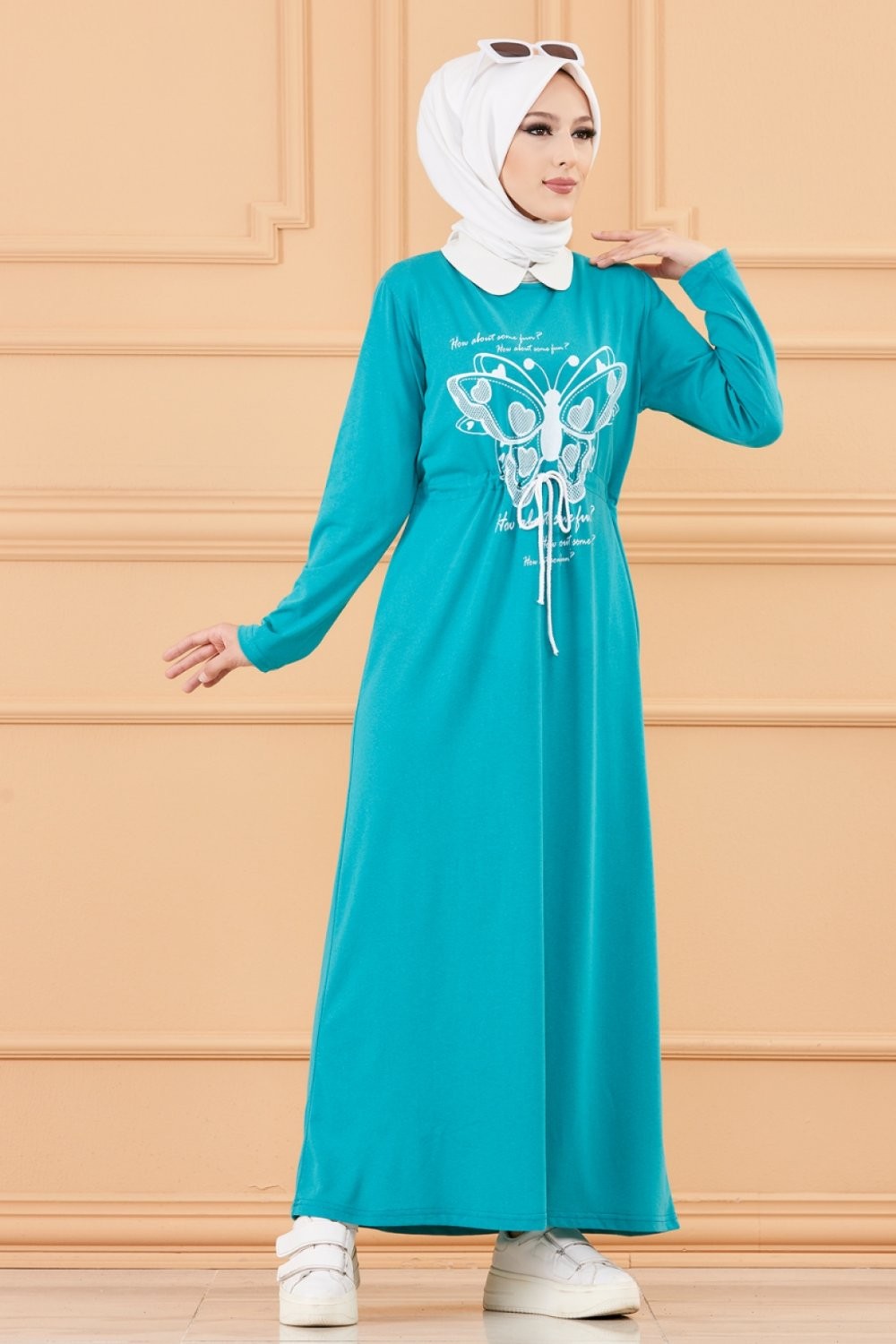Robe décontractée imprimée (Modest Fashion) - Couleur menthe Vetement & Accessoire