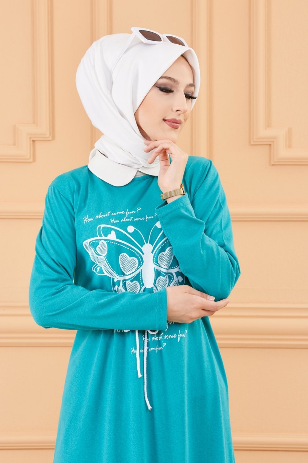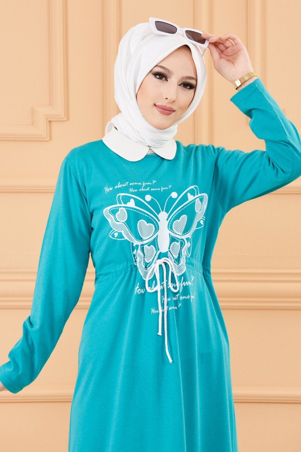 Robe decontractee imprimee (Modest Fashion) - Couleur menthe